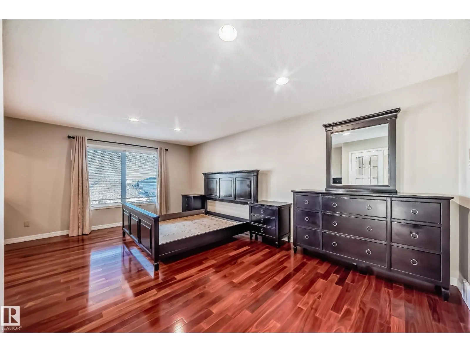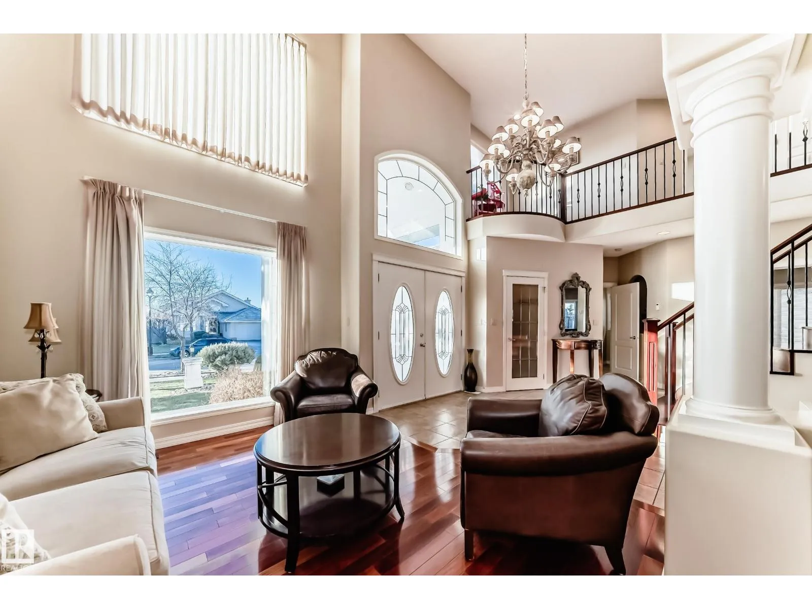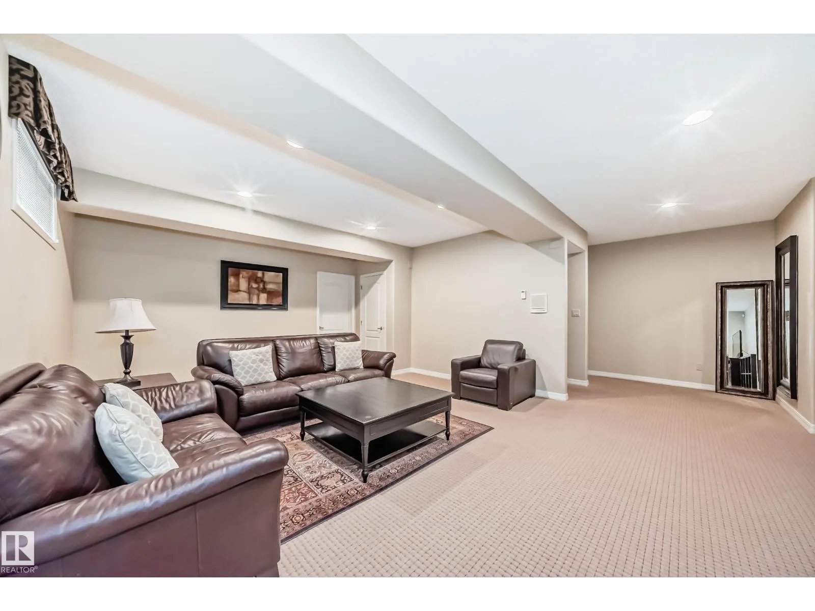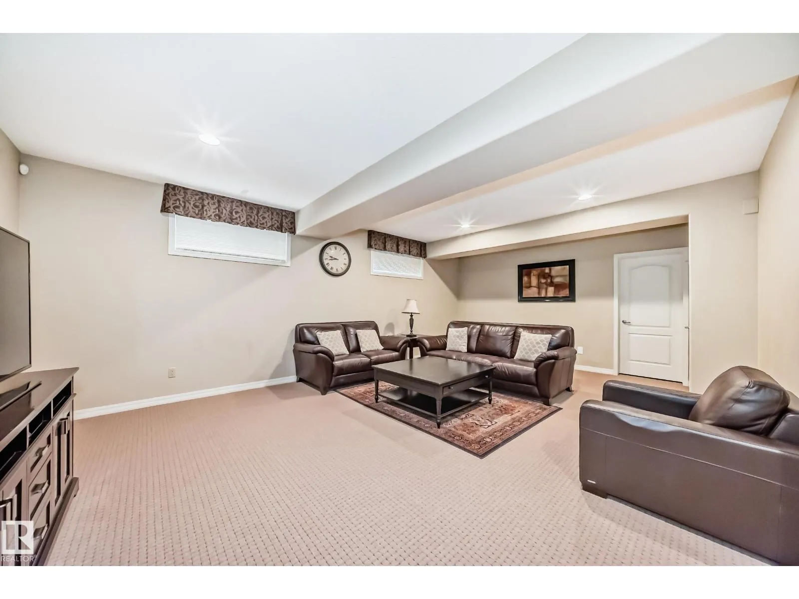 LUXURY EXECUTIVE LIVING in prestigious Donsdale Estates! This stunning 5-bed, 2-storey home offers in-floor heating throughout, dual A/C units and furnaces for exceptional temperature control, plus an irrigation systemâperfect for a large family. A grand double-door entrance opens to soaring cathedral ceilings and an elegant living room with massive windows, flowing into the formal dining room. The gourmet kitchen features high-end white cabinetry, quartz counters, pantry and island, with a bright breakfast nook overlooking the cozy family room with fireplace. The main floor also includes a den/office, laundry and bath. Upstairs, enjoy a gorgeous primary suite with spa-like 5-pc ensuite, plus two additional bedrooms and full bath. The finished basement adds a spacious family room, two bedrooms, full bath and ample storage. Beautifully landscaped yard with cedar roof, maintenance-free deck, glass railings, fencing and paved path. Steps to the pond, gazebo and scenic walking trailsâWelcome Home! (id:27476)