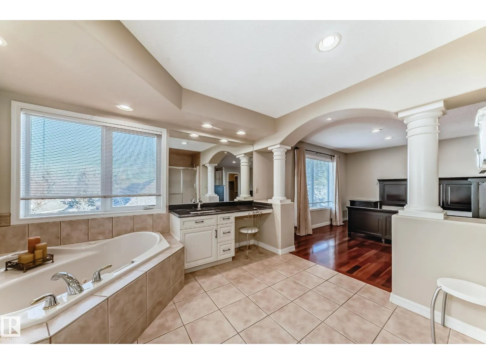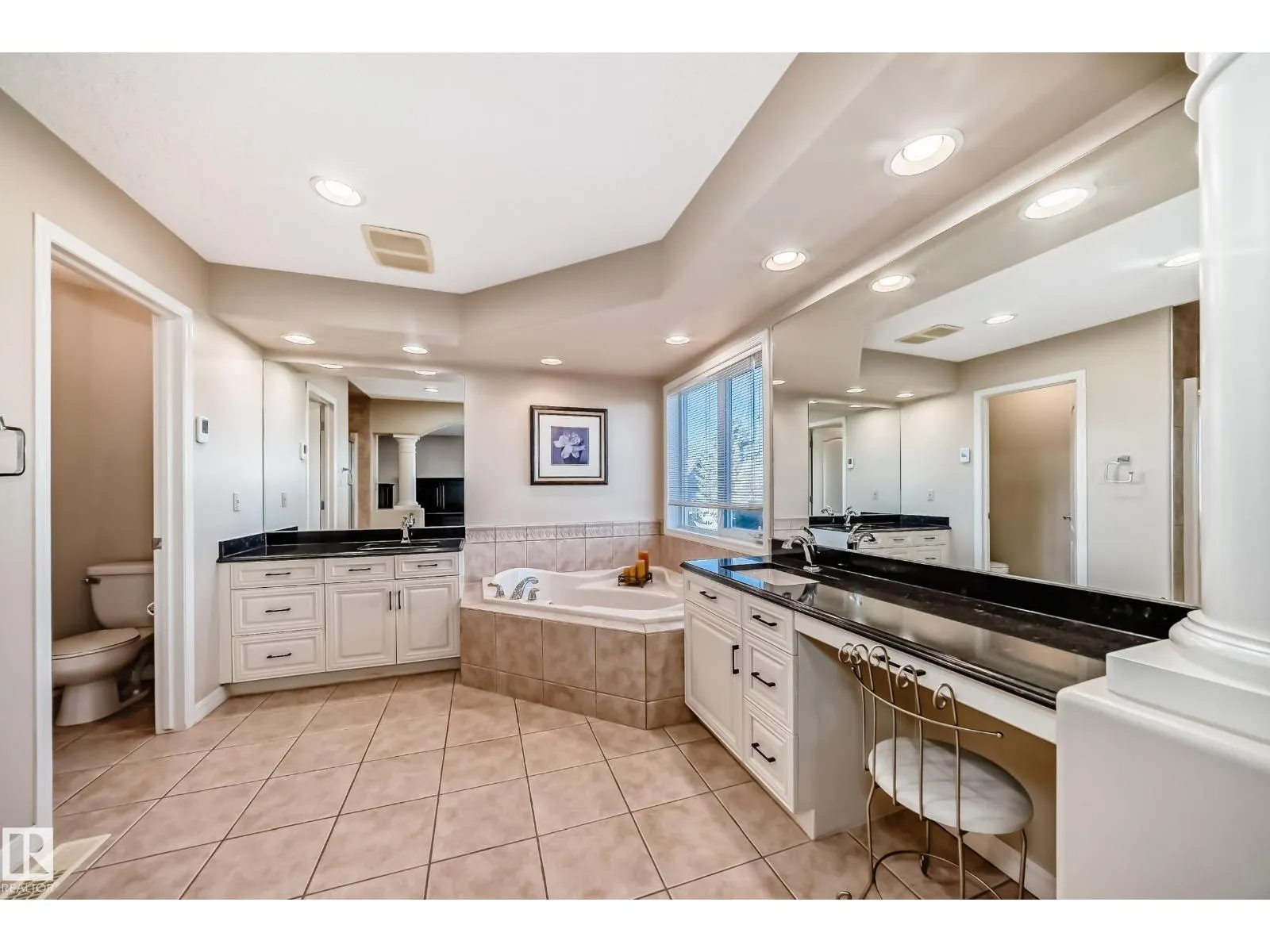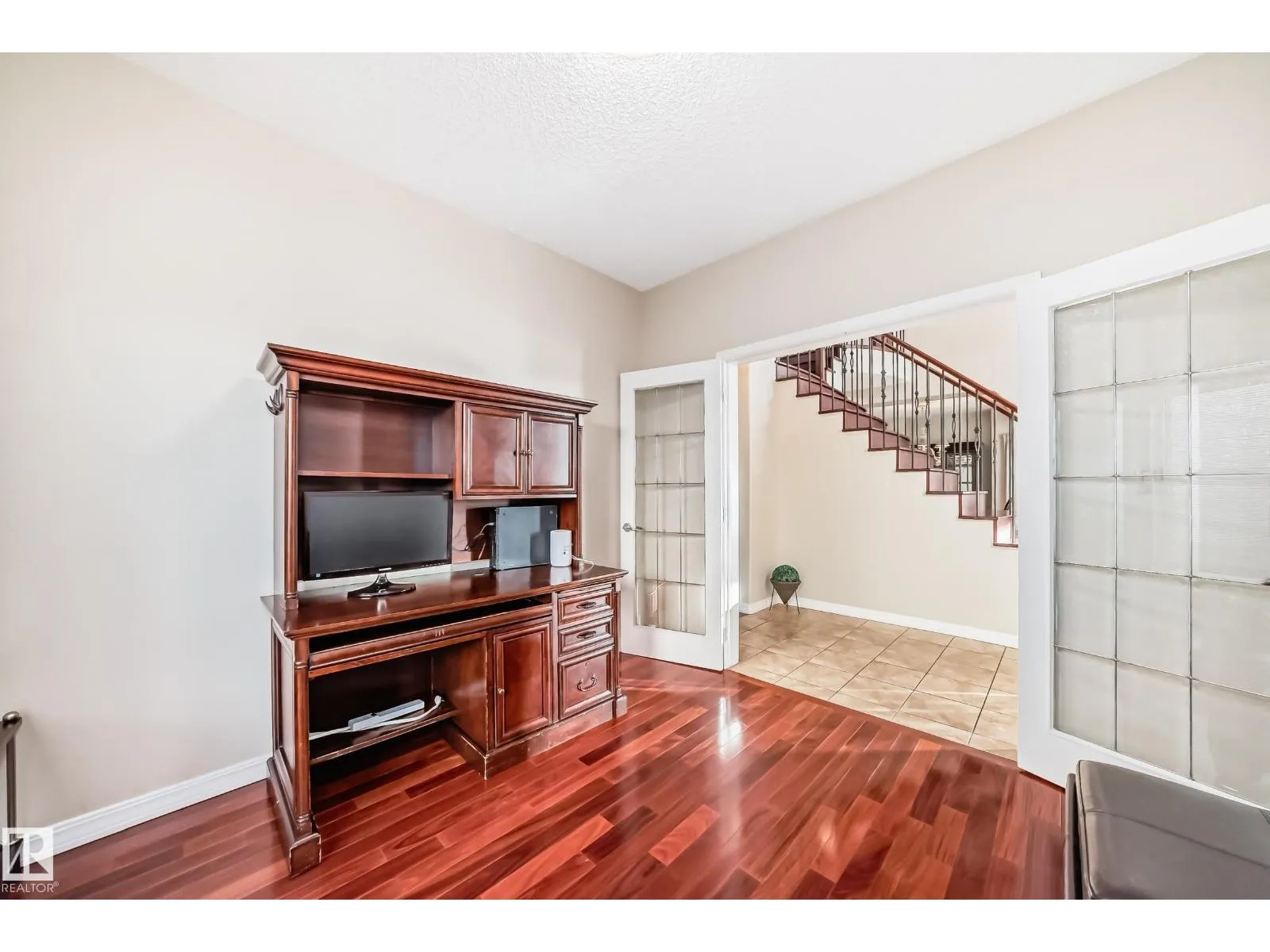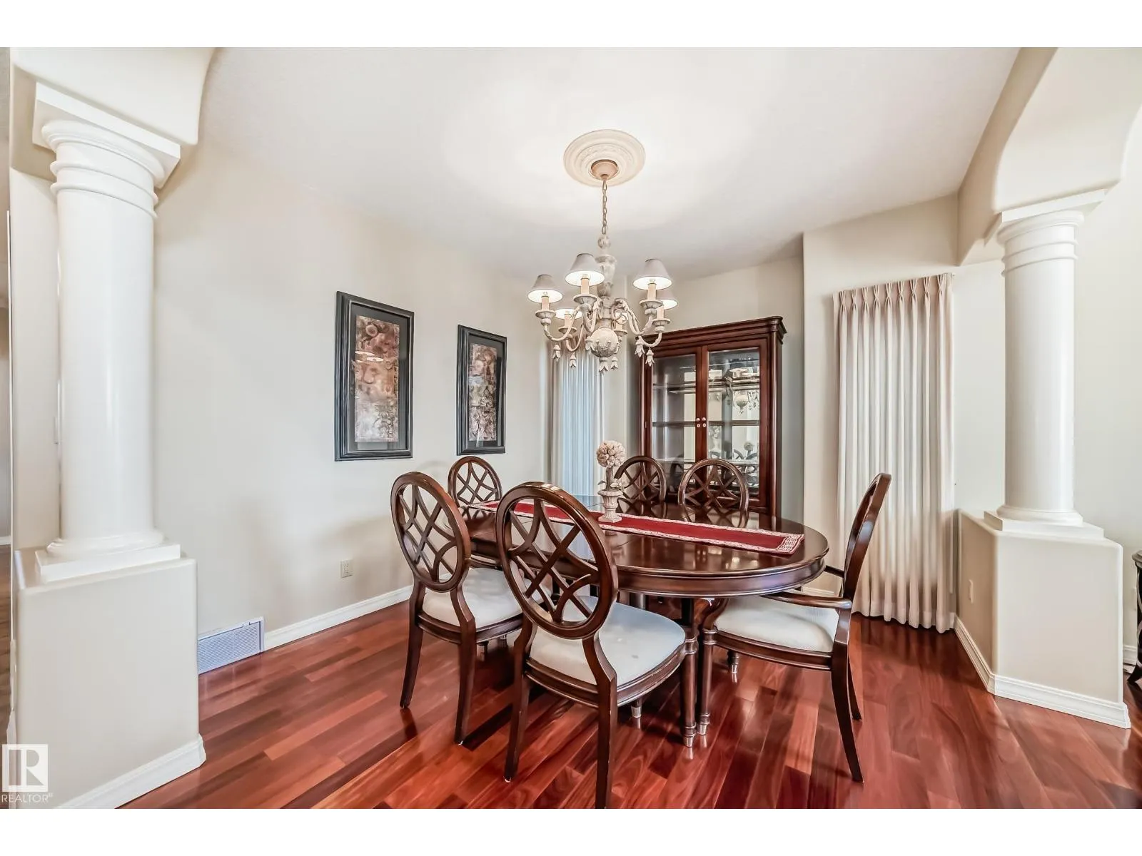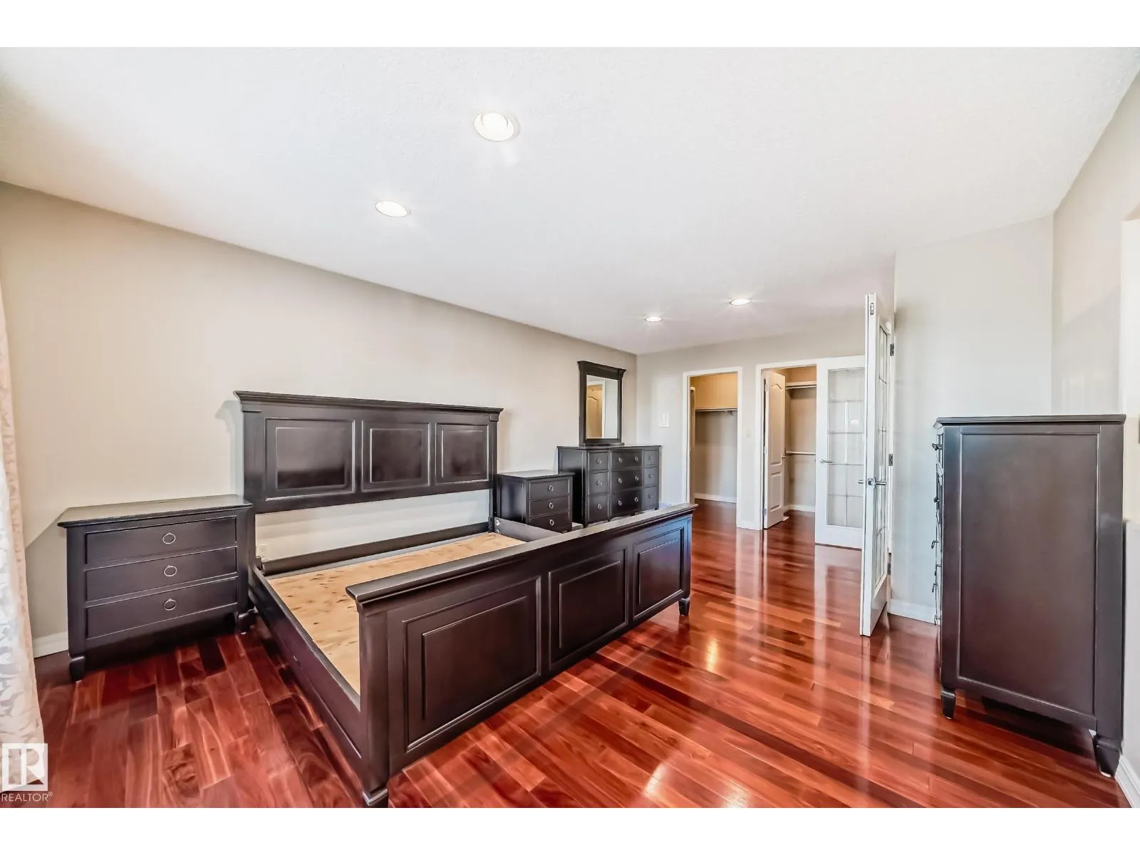 LUXURY EXECUTIVE LIVING in prestigious Donsdale Estates! This stunning 5-bed, 2-storey home offers in-floor heating throughout, dual A/C units and furnaces for exceptional temperature control, plus an irrigation systemâperfect for a large family. A grand double-door entrance opens to soaring cathedral ceilings and an elegant living room with massive windows, flowing into the formal dining room. The gourmet kitchen features high-end white cabinetry, quartz counters, pantry and island, with a bright breakfast nook overlooking the cozy family room with fireplace. The main floor also includes a den/office, laundry and bath. Upstairs, enjoy a gorgeous primary suite with spa-like 5-pc ensuite, plus two additional bedrooms and full bath. The finished basement adds a spacious family room, two bedrooms, full bath and ample storage. Beautifully landscaped yard with cedar roof, maintenance-free deck, glass railings, fencing and paved path. Steps to the pond, gazebo and scenic walking trailsâWelcome Home! (id:27476)