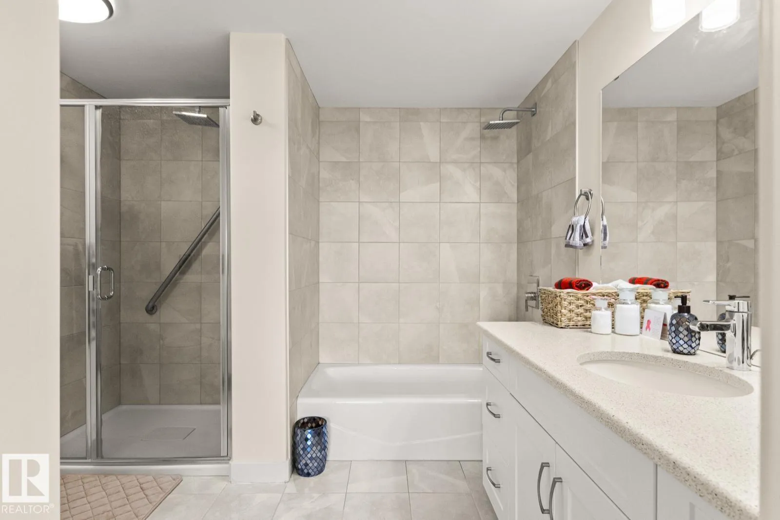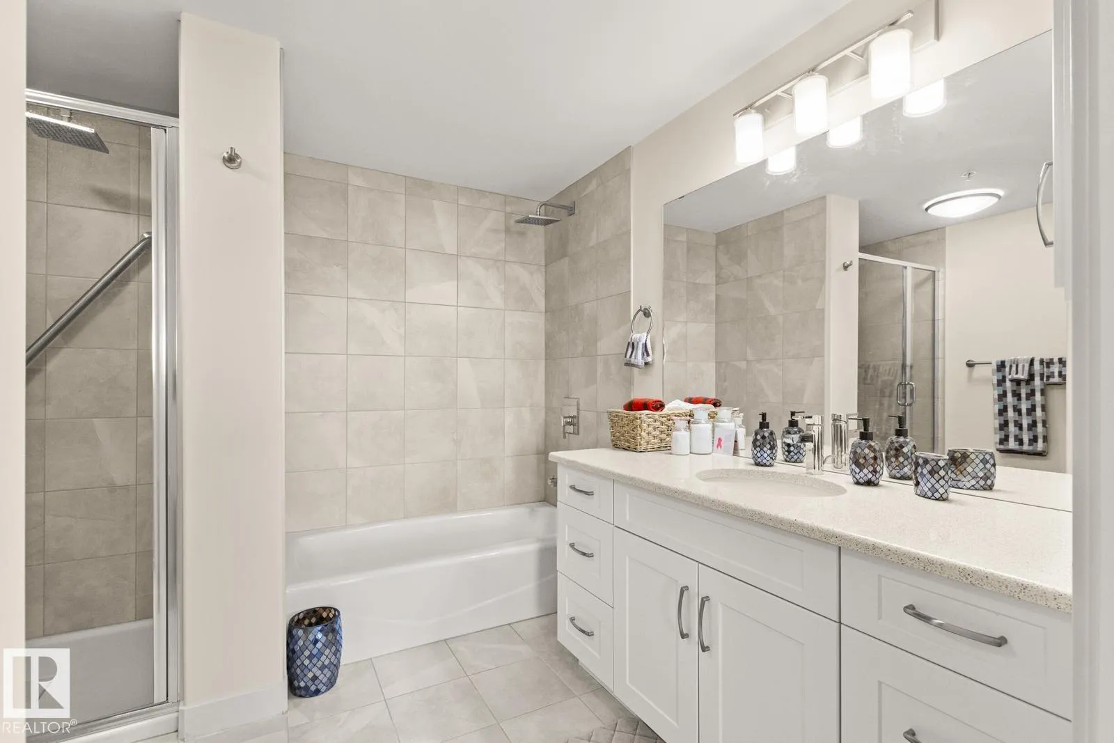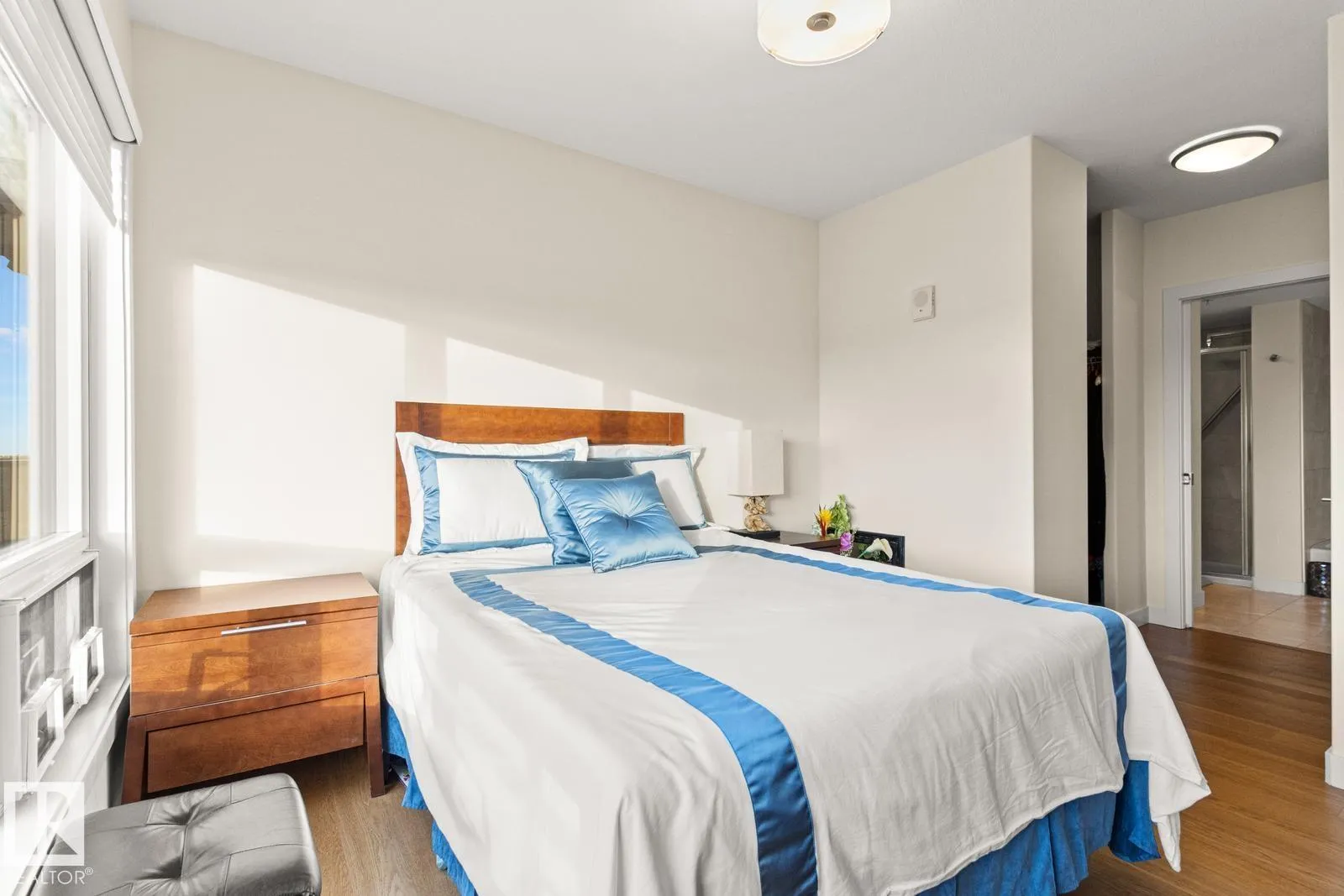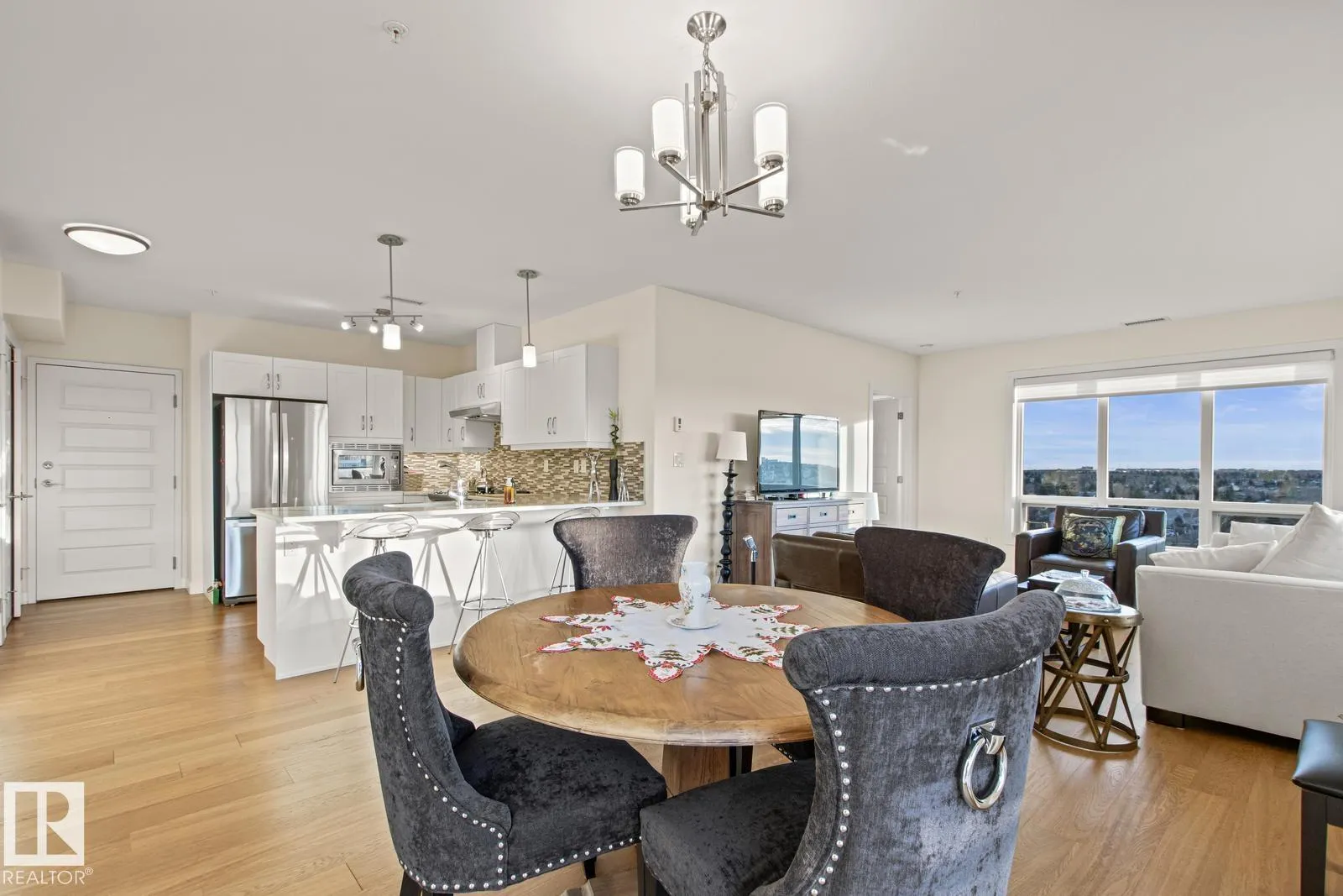 Amazing Opportunity in this ADULT Community! Incredible VIEWS from this SW corner unit - enjoy sunsets from the expansive windows in every room. Not only does this unit offer 2 bedrooms both w/ ensuite bathrooms. Open concept kitchen, dining & living spaces offers something for everyone. Kitchen boasts white cabinetry, QUARTZ counters, eat-up bar, undercabinet lighting & SS appliances. Primary Bedroom Suite offers generous walk-through closet & spacious ensuite w/ separate WALK-IN shower, low-rise tub, HEATED TILE FLOORS & lg. vanity w/ quartz counters. Engineered wood floors throughout for ease of cleaning, IN-SUITE LAUNDRY, A/C, gas BBQ hookup are a few more thoughtful features. Unit has only had 1 occupant & has been lightly lived in & meticulously maintained. Some appliances are still in brand new state. Included w/ this unit comes 1 titled UNDERGROUND parking stall, an additional outdoor stall just outside entrance PLUS a titled STORAGE unit. Bldg offers restaurant, hair salon & active social room. (id:27476)