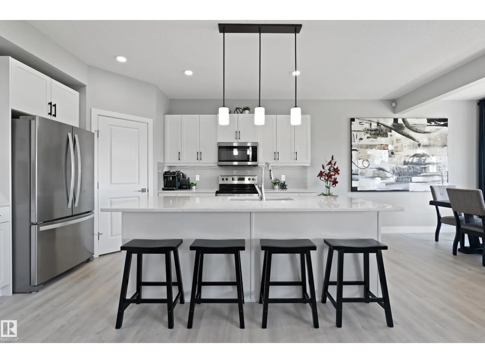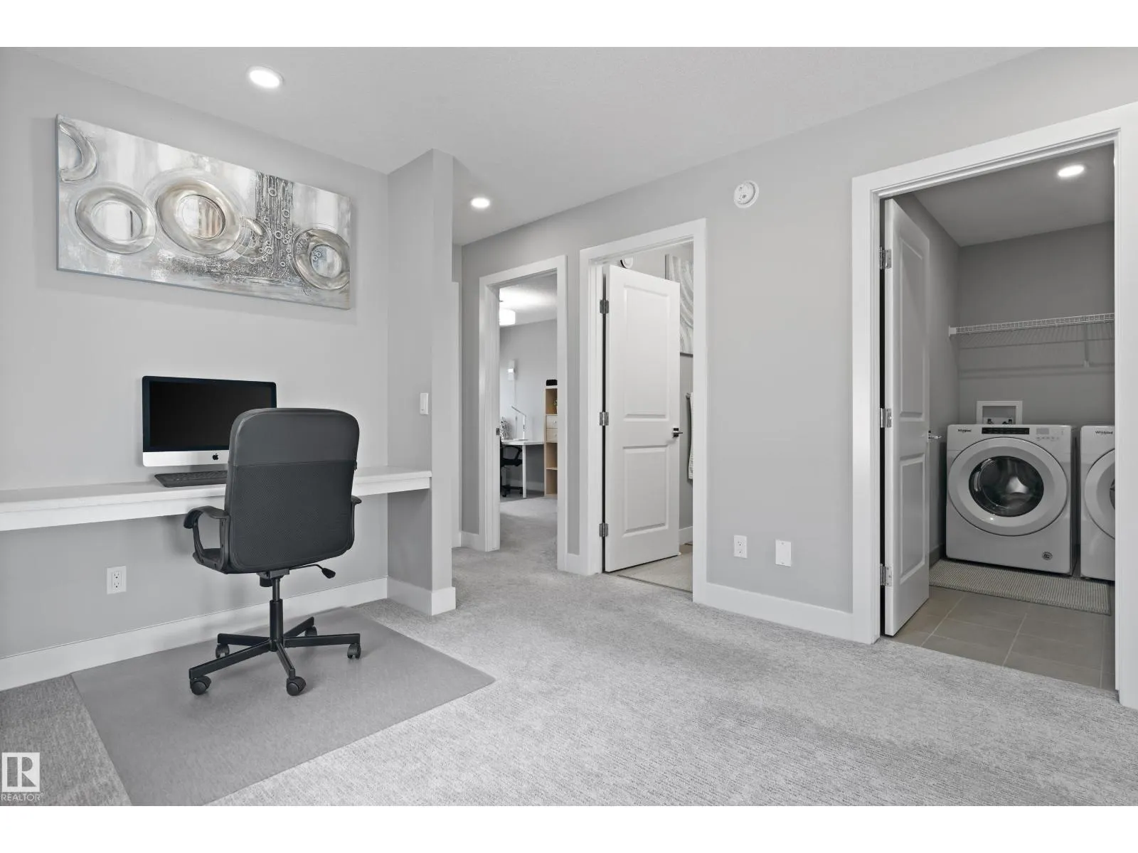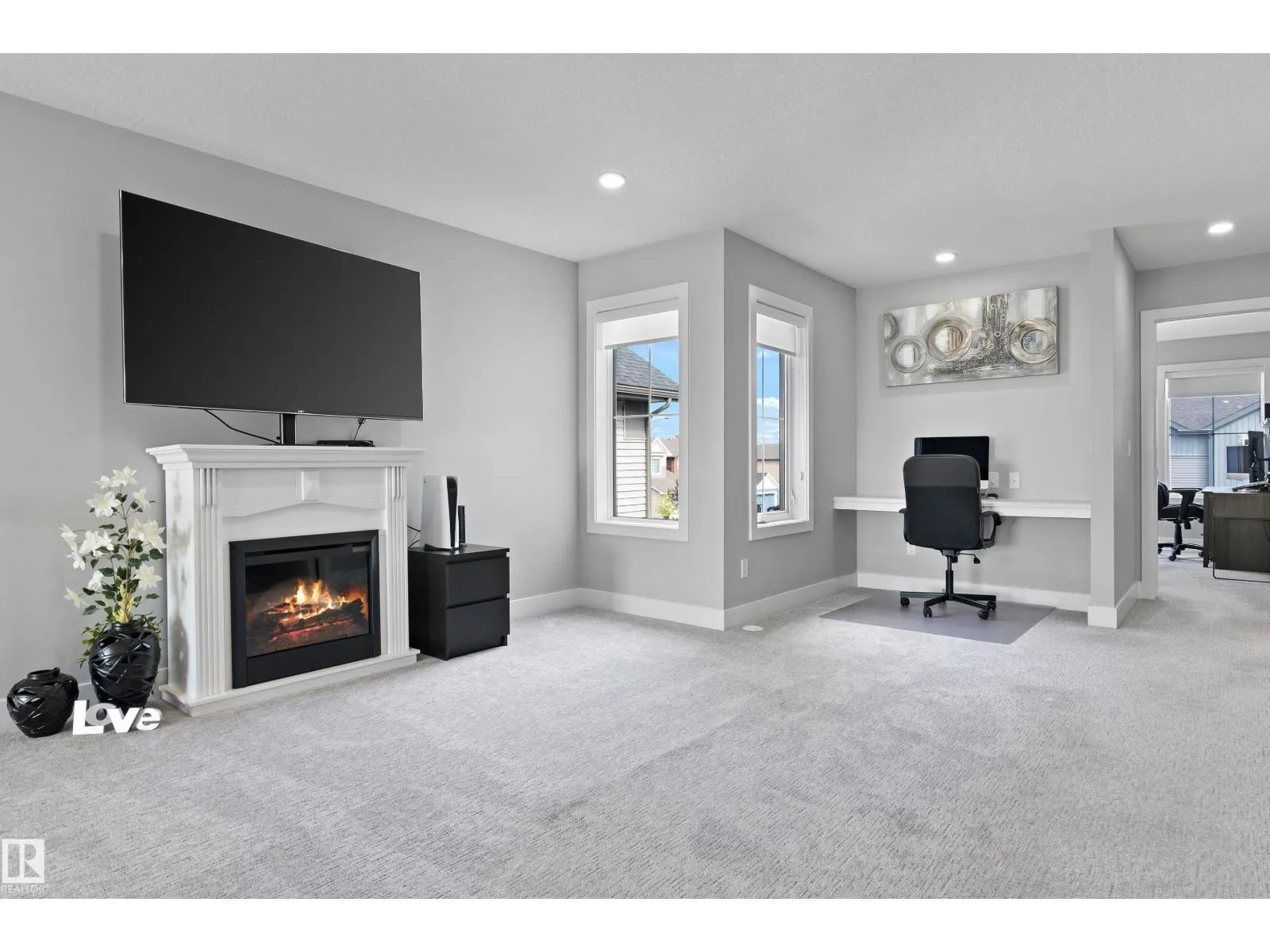Ready to move in! Amazing pond view modern and super clean home  in the heart of Desrochers community. This Landmark Home is thoughtfully designed to offer a blend of style, comfort, and practicality. Upon entrance you will find, spacious foyer, den,2PC bath and a mud room. Contemporary kitchen is complemented by beautiful countertops, large island, SS appliances, and a pantry. Dining area with access to balcony to savor the picturesque pond views. The open-to-above living room with large windows, fills the home with natural light and modern gas fireplace provides comfort. The stairwell leads you upstairs to a spacious bonus room with a study built in desk, laundry, 2 good size bedrooms and 4PC bath. The primary bedroom boasts a luxurious 5PC ensuite and walk-in closet. The WALKOUT finished basement offers 9 ceiling,4PC bath, den, gym, rec room. Second laundry in the basement. Security and Sun control glass tinting coating on windows & subfloor insulation panels. Central AC. (id:27476)