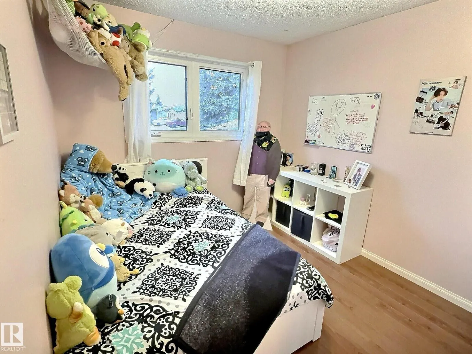 Located on a quiet cul-de-sac, this splendid family home offers over 2300 sq ft of tastefully designed space. Featuring new shingles and a new furnace, four well-appointed bedrooms, and three bathrooms, itâs ideal for a growing family. The open-concept main floor with hardwood flows into a custom kitchen with a spacious eating bar overlooking the living and dining areasâperfect for entertaining. A sliding door leads to a large pie-shaped yard, double detached garage, and composite deck package. Upstairs are two cozy bedrooms, a modern 3-piece bath, and a spacious primary suite with its own 3-piece ensuite. The lower level includes a welcoming family room, an additional bedroom, laundry, and another full bath. The finished basement offers a versatile rec or flex space plus storage. Located in Daly Grove close to schools, shopping, transit, and more! (id:27476)