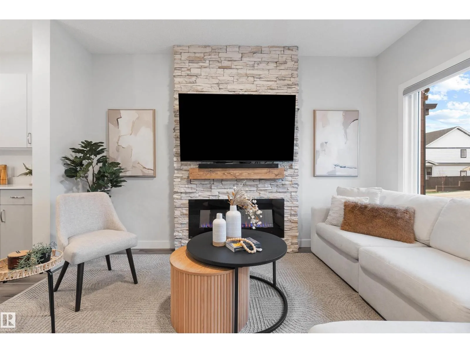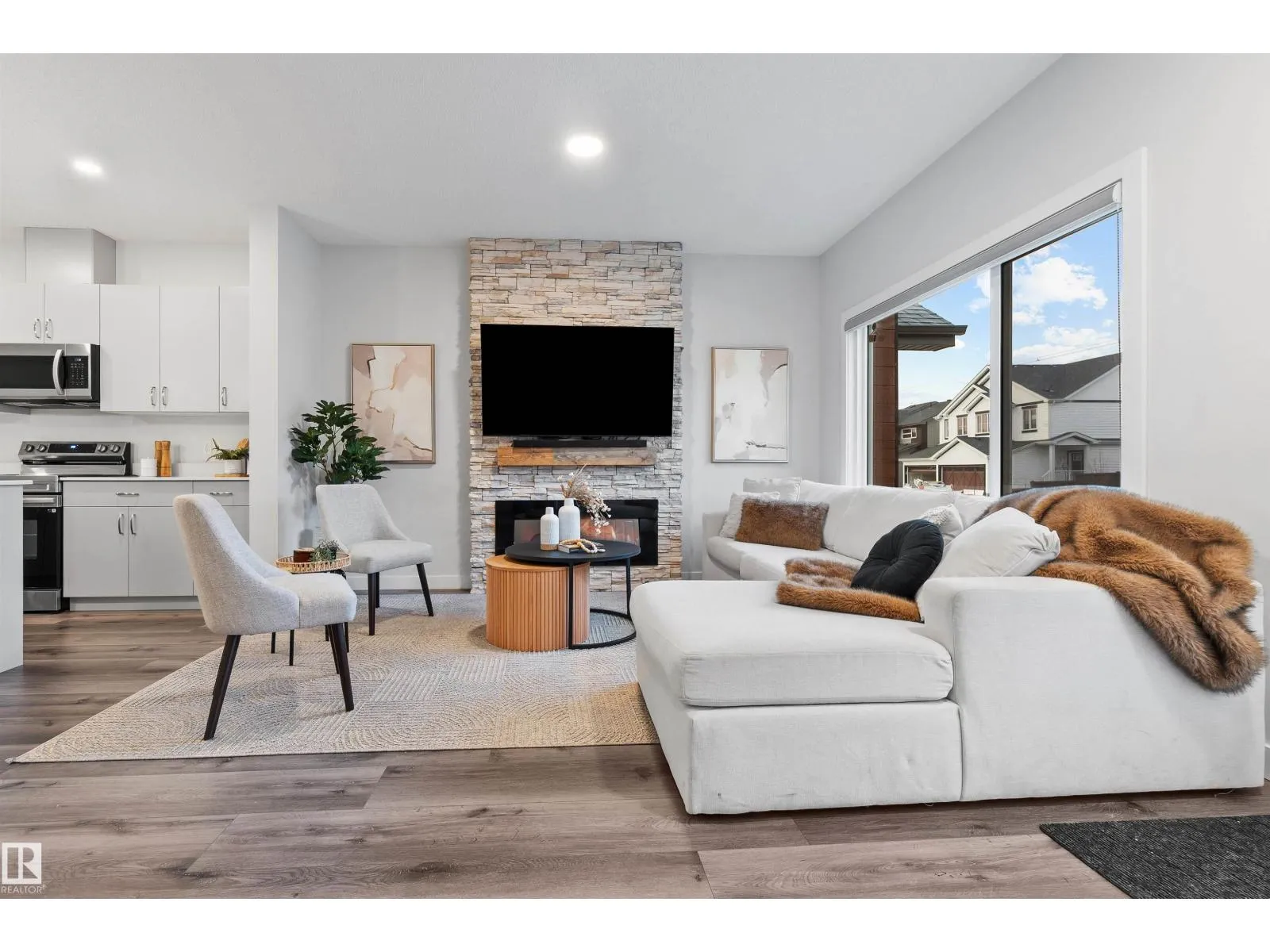 WOW! This is the ONE! Welcome to this stunning and VERY WELL-KEPT DETACHED HOME in THE UPLANDS. The MAIN FLOOR offers an OPEN-CONCEPT LAYOUT, 9 FT CEILINGS, a BRIGHT LIVING ROOM, and an electric FIREPLACE WITH FLOOR-TO-CEILING STONE FACING ACCENT WALL. The kitchen features STAINLESS STEEL APPLIANCES, a LARGE ISLAND WITH QUARTZ COUNTERTOPS, AMPLE CABINETRY, and a PANTRY, flowing into the dining area with south-facing massive window and a half Bath completes the main floor. Upstairs offers a BONUS ROOM, a primary bedroom with Ensuite, plus two additional Bedrooms and a full bathroom. The 9 FT BASEMENT with SEPARATE ENTRANCE provides potential for legal suite or extra living space. Outside features a DETACHED GARAGE, beautiful Landscaping and a partially fenced yard, perfect for summer evenings. The Uplands is one of the EDMONTONâS TOP-SELLING COMMUNITIES with parks, ponds, trails, and quick access to ANTHONY HENDAY, shopping, and amenities. DONâT MISS THIS AMAZING OPPORTUNITY! (id:27476)