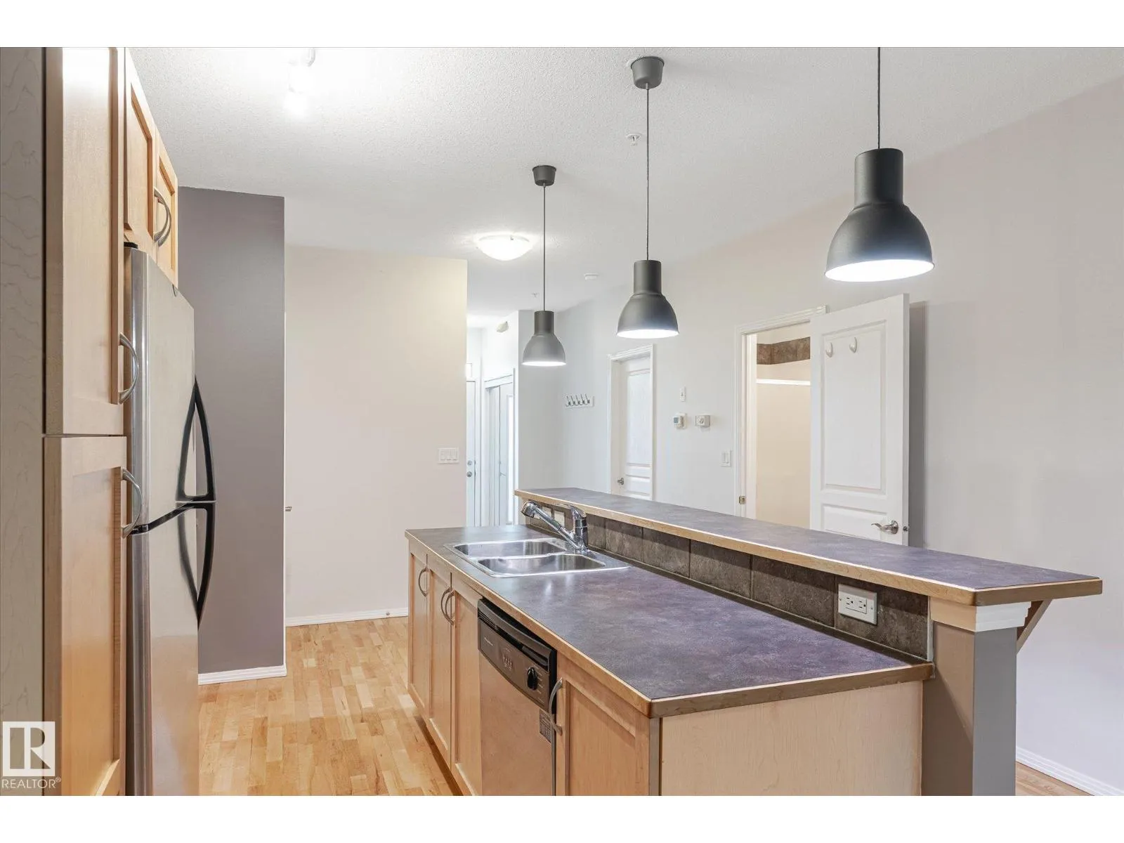 Looking for a top floor river valley unit? This contemporary condo is in a fantastic location, steps away from the Legislature, the river valley and the baseball park! As you walk to the suite's front door you will notice that your front entry and 2nd bedroom overlooks the river valley. Inside 9ft ceilings with floor to ceiling windows allows the sunlight in to bounce off of your hardwood flooring. A maple island kitchen with eating bar and tons of counters and cabinets is perfect for the chef in the family and it is also nicely equipped with stainless steel appliances. Patio doors lead to a balcony that faces west, A/C will keep you cool. The large master bedroom has a walk in closet and a full ensuite with tile tub surround and tile flooring. Main bathroom with tile flooring and shower, stackable washer and dryer and secure underground parking stall round out the features. There is ample visitor parking in the alley on the west side of the building. (id:27476)