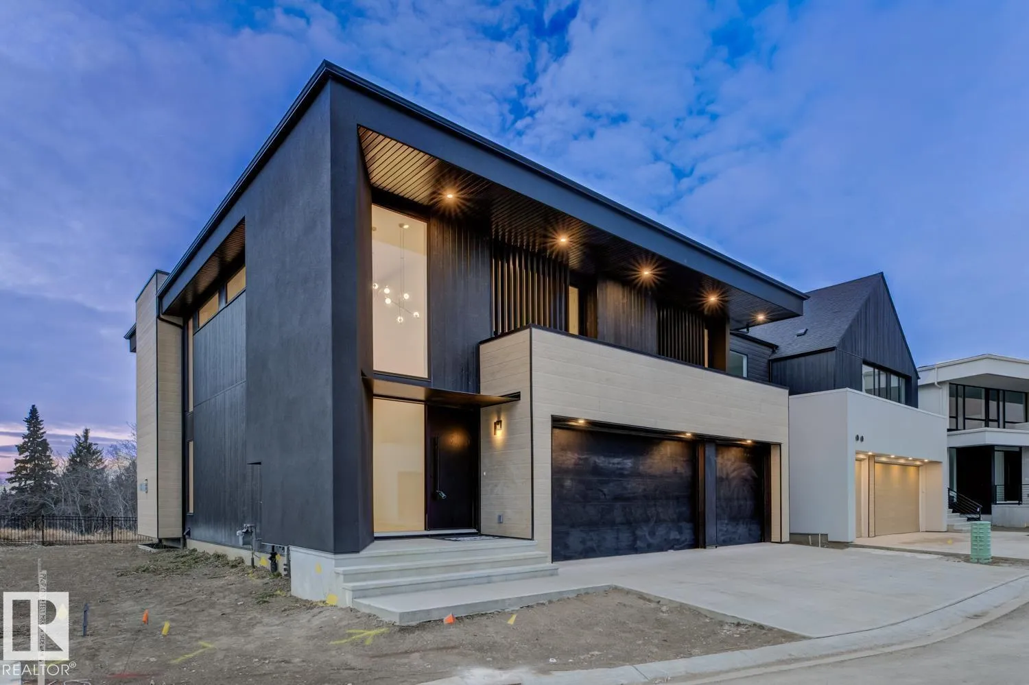 Something rare is taking shape along Whitemud Creek Ravine in SW Edmonton, The Cove, an intimate enclave of just 7 estate homes at the end of a secluded Chappelle lane, thoughtfully planned as a bareland condo community. Wrapped in trees & uninterrupted green space, w/ walking trails leading directly into the river valley, it feels quietly exclusive & retreat-like, yet remains minutes to amenities & roughly 15 minutes to the airport. A SUiL Management vision brought to life by Platinum Living Homes, Design Two Group & Brianna Hughes Interiors, this modern West Coastâinspired residence offers an O/S triple garage, nature-backed lot, open-to-above great room w/ iron staircase & fluted, quartz-trimmed F/P, a sleek kitchen w/ slab-front cabinets, quartz waterfall island & W/I pantry, & a flexible main-floor office/den/bedroom. Upstairs, a ravine-facing primary suite w/ spa ensuite & W/I closet anchors the home. Landscaping & snow removal are managed for a true lock-and-leave lifestyle in a ravine setting. (id:27476)