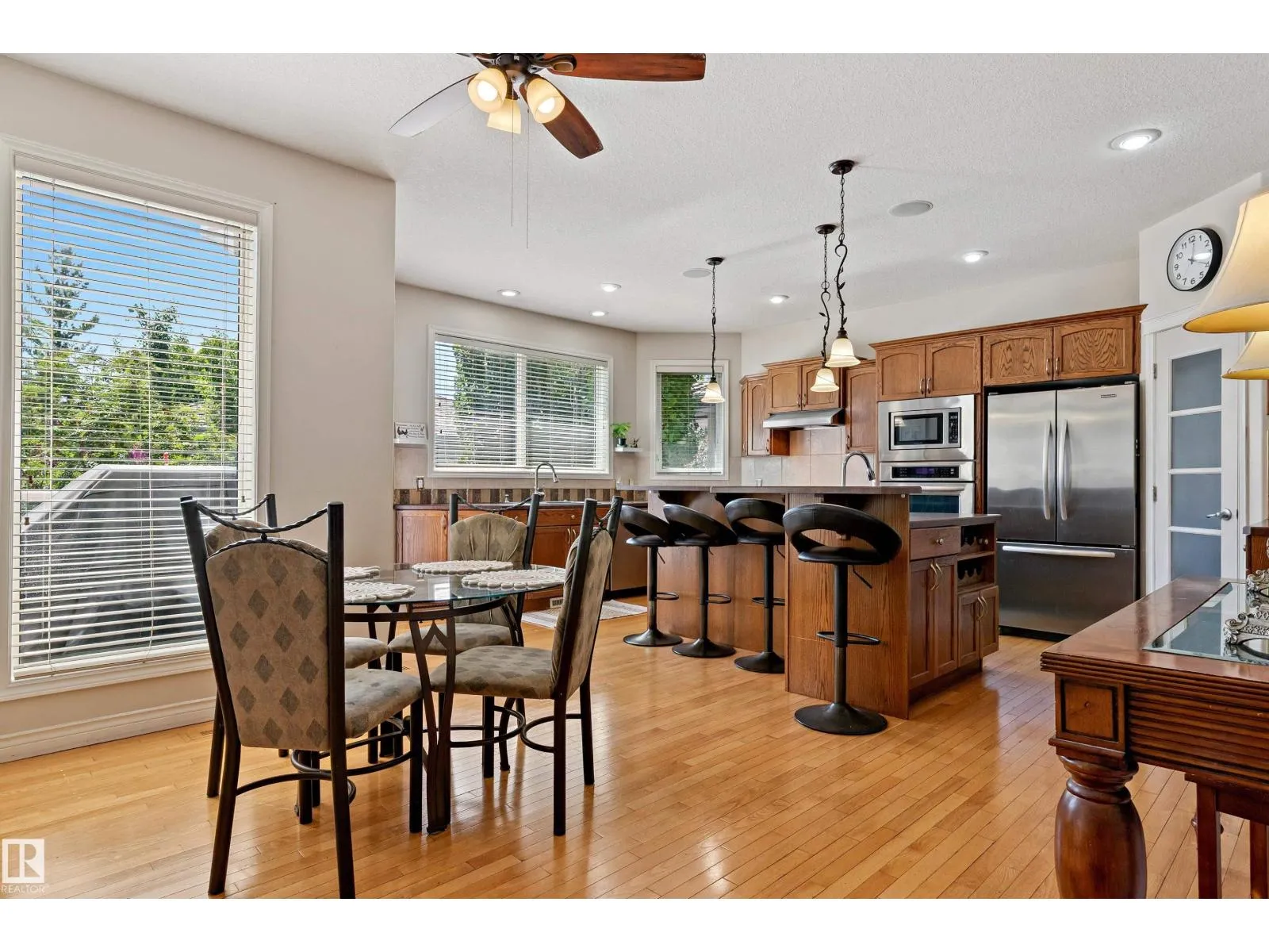 Fantastic location in the prestigious Properties of Donsdale! Just under 3,900 Square feet of living space with the walk out basement. Backing south onto greenspace leading to and with a view of a quaint pond. Custom-built home has 9ft ceilings, elegant split staircase, large kitchen with island and custom pantry, flex room for dining/office or bedroom. Walk out from the kitchen to a large south facing deck with natural gas BBQ & power awning. Walk out from lower level family room to the covered patio area. Upper floor bonus room has large windows & remote blind. The primary suite has 4-piece ensuite with soaker tub & His & Hers walk in closets. Large second bdrm has a 3-piece ensuite & walk-in closet, third bdrm is also ample size. The walkout basement has plenty of flex space options and a 3 piece bathroom, large fourth bedroom, a family or rec room that opens to the patio, the fire pit area and private back yard. Nice crescent location. (id:27476)