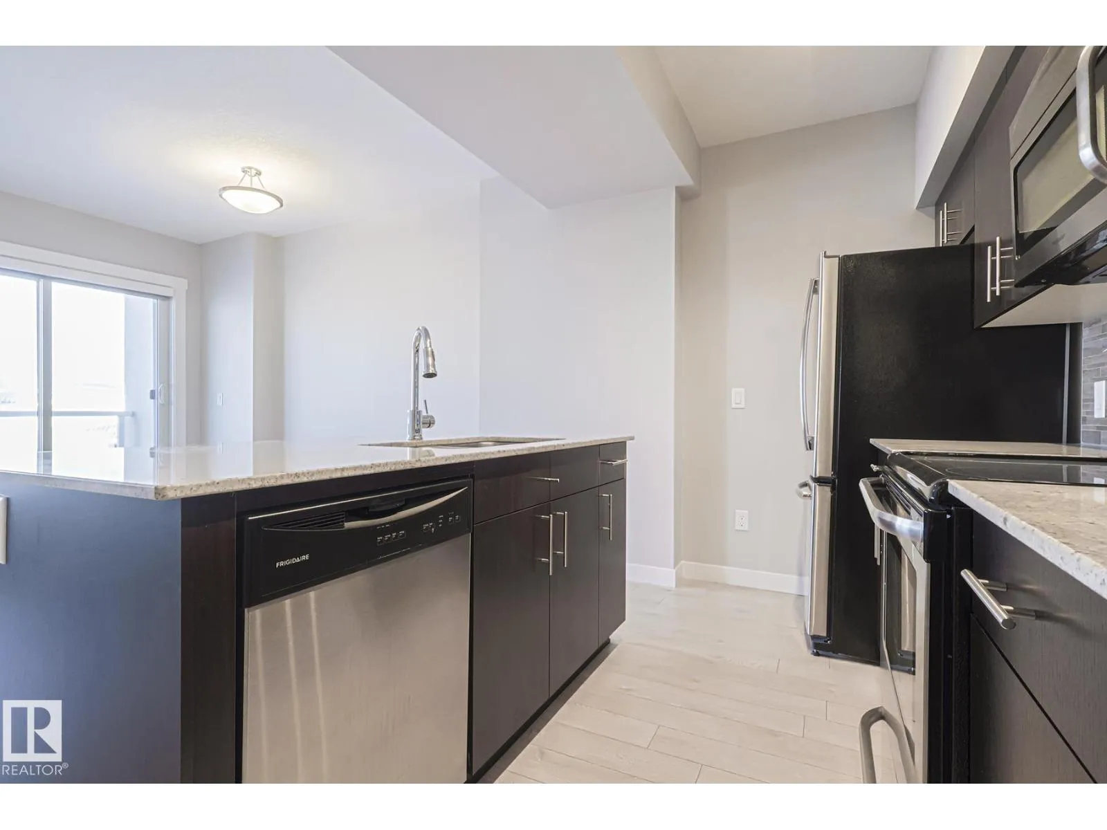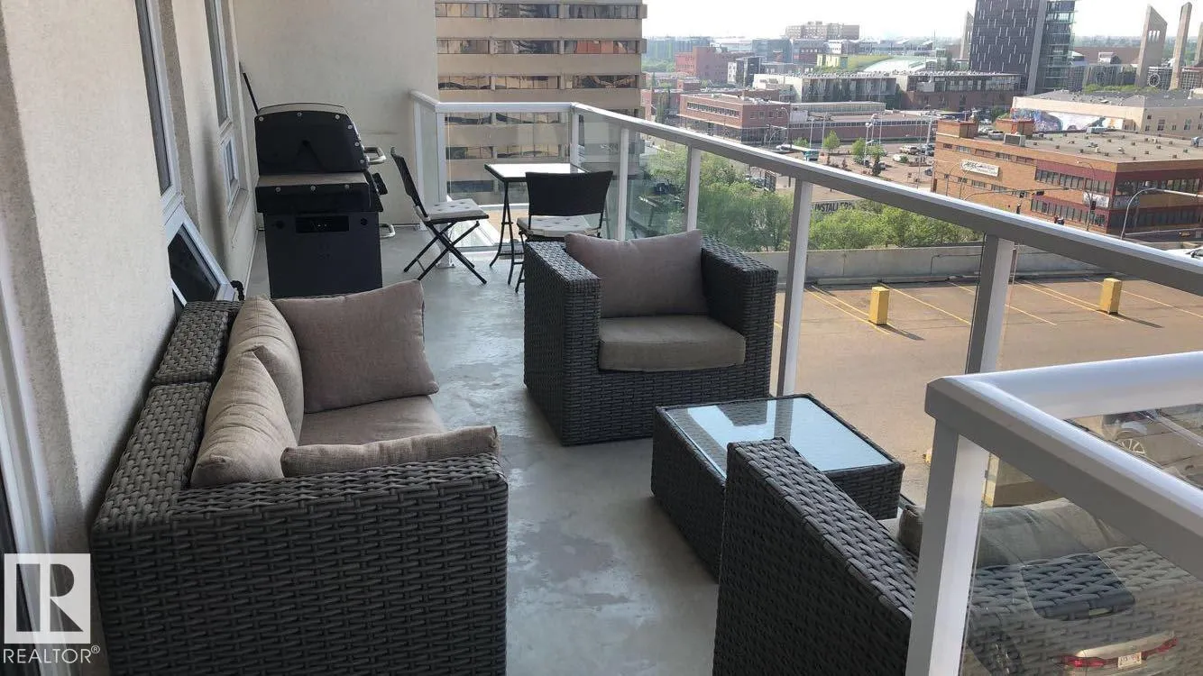 Discover upscale urban living in this bright and modern unit in FOX ONE with LOW CONDO FEES. With just steps to Rogers Arena, coffee shops, restaurants, nightlife and so much more. This immaculate 1 bedroom 1 bath condo offers an open concept living space, kitchen with quartz counter tops, stainless-steel appliances, in suite laundry, gas line on the patio and heated underground parking. The balcony boasts a beautiful view of the downtown skyline and Rogers Place with plenty of space for entertaining. This unit is in brand new condition. A must see! (id:27476)