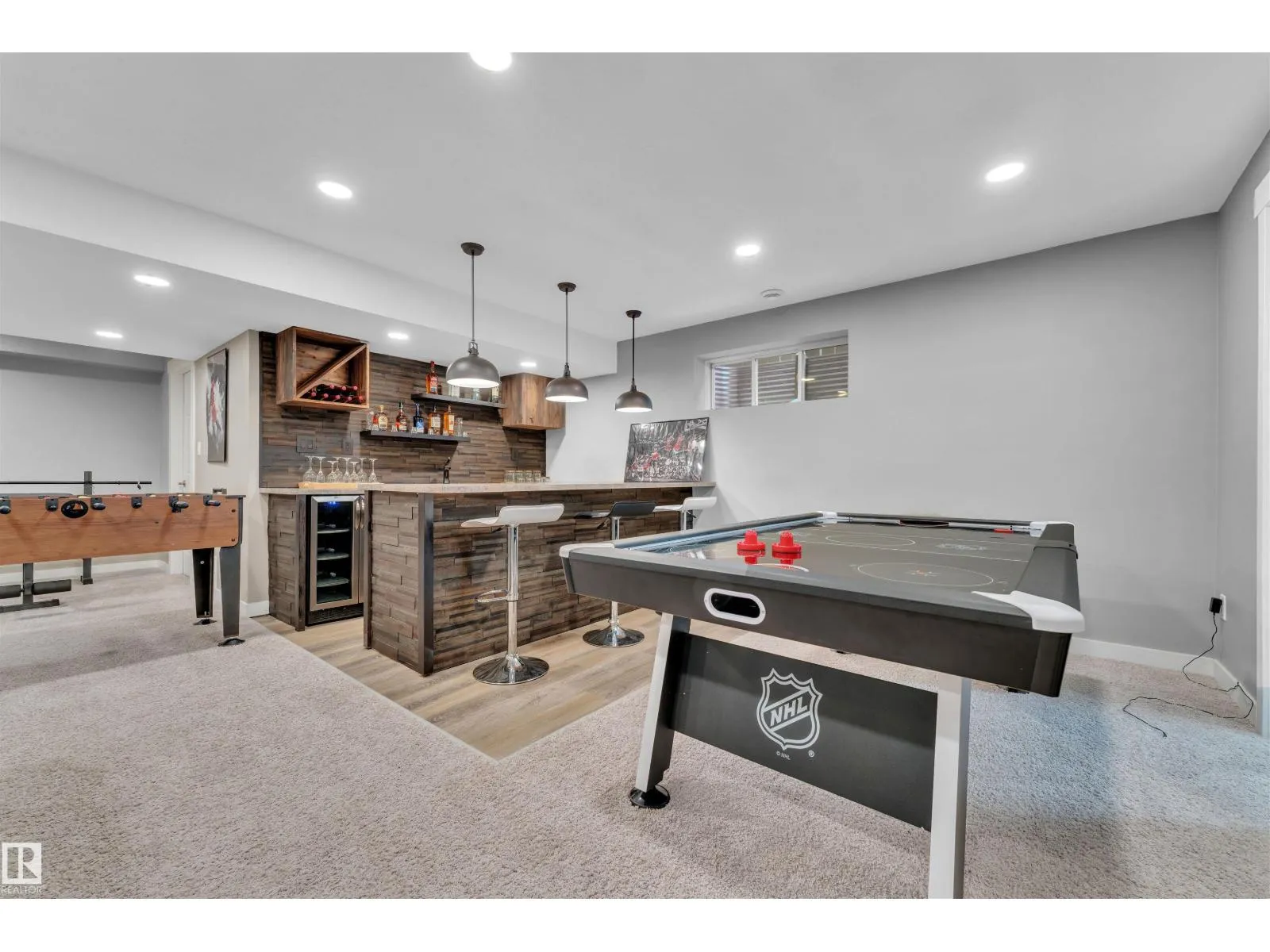 Discover this beautifully maintained 2609 SQ.FT (including Basement) home offering comfort, style, and modern living. Built in 2013 and equipped with Central A/C, the home is freshly painted, carpets steam cleaned, and the garage pressure washed. The bright open-concept main floor features a gourmet kitchen with granite countertops, pantry, breakfast nook, and spacious living/dining areas leading to a large deck. A 2-pc bath and laundry with sink complete the level. Upstairs offers 3 large bedrooms, 2 full baths, and a bonus room. The fully finished basement includes a stylish wine bar, rec room, and half bath. Located on a quiet cul-de-sac, just a 5-min walk to Superstore and amenities, and close to a pond and trails. Brand-new furniture may be negotiated with the seller depending on the offer. A double attached garage adds convenience. (id:27476)