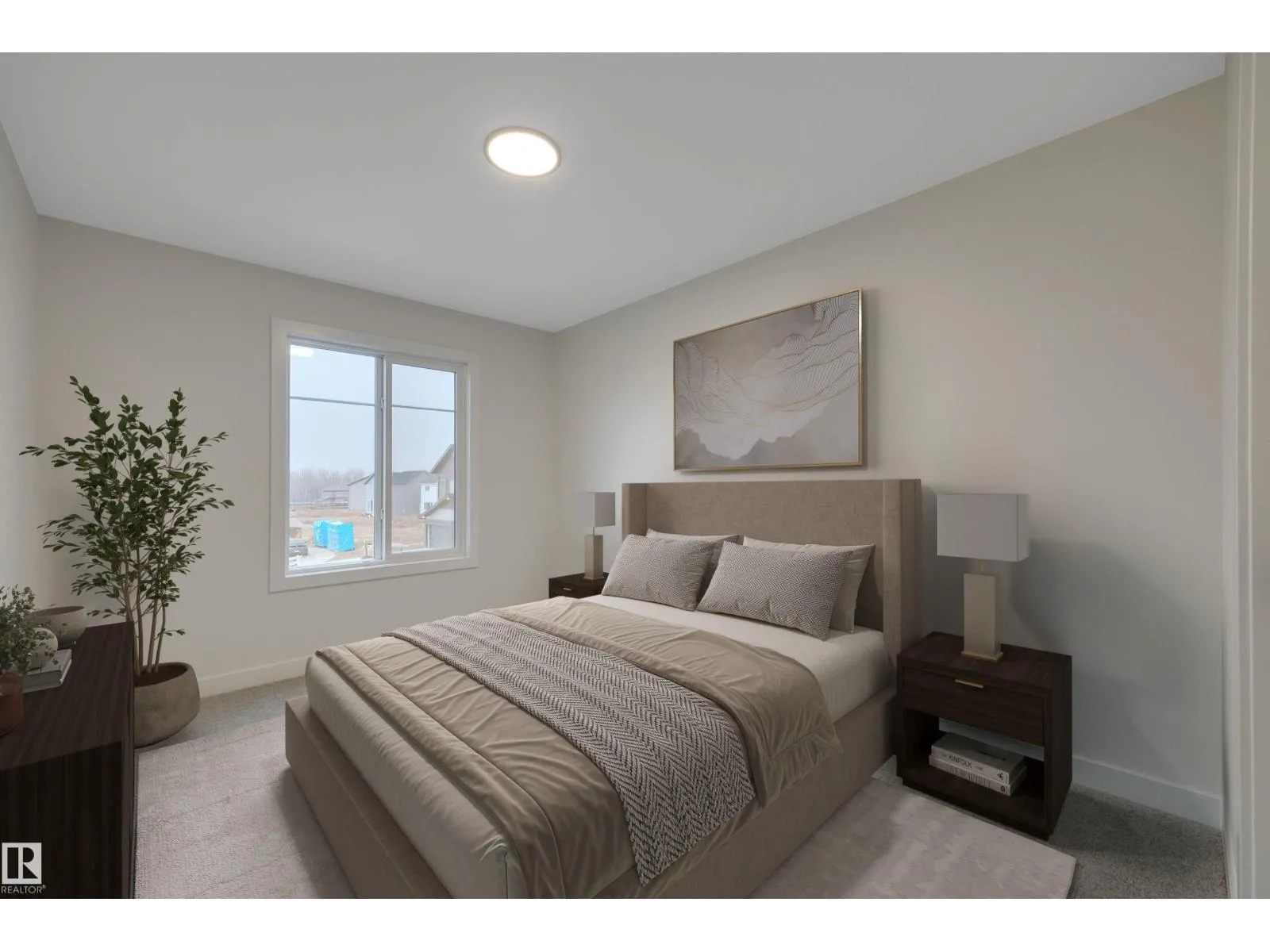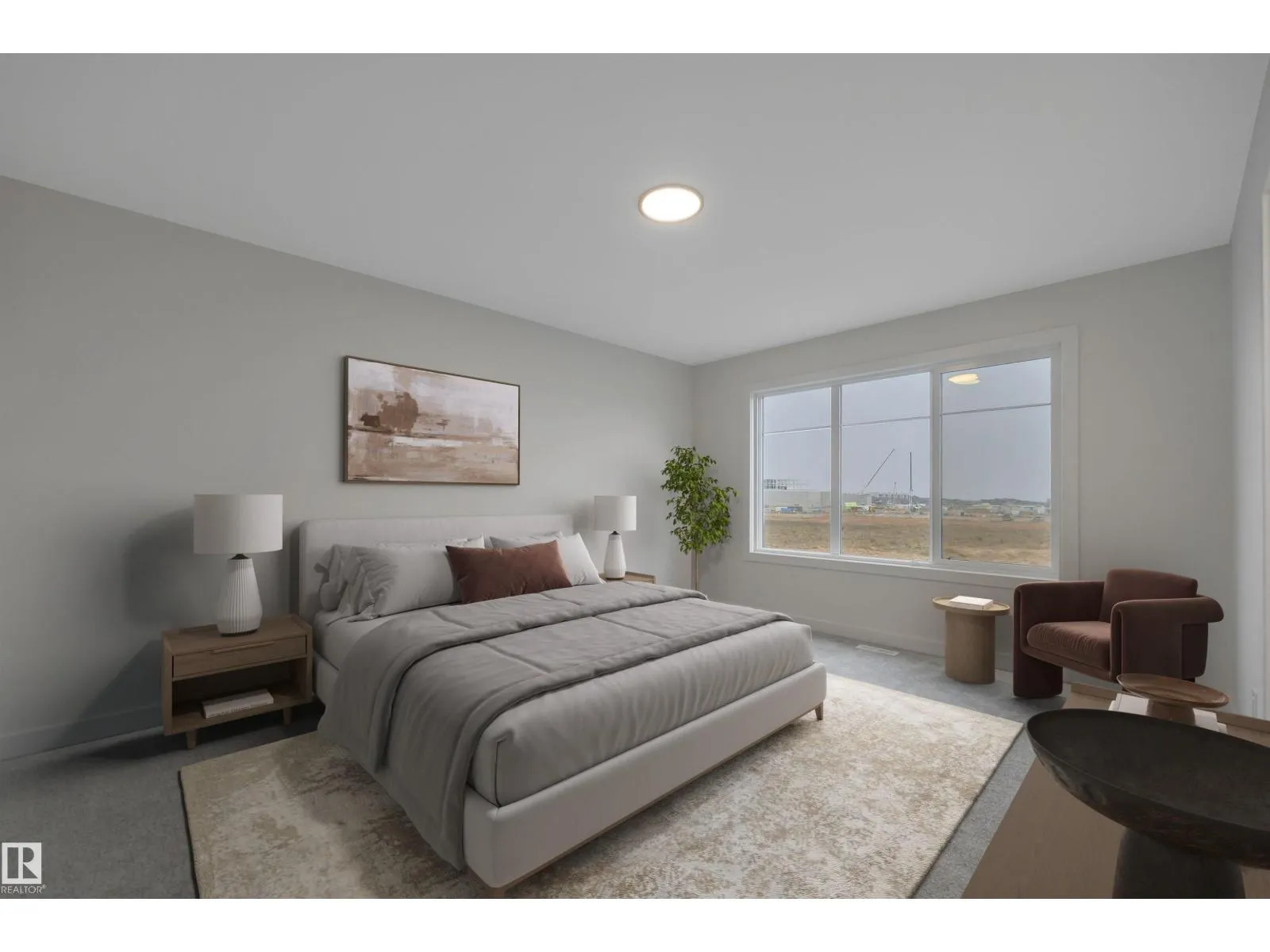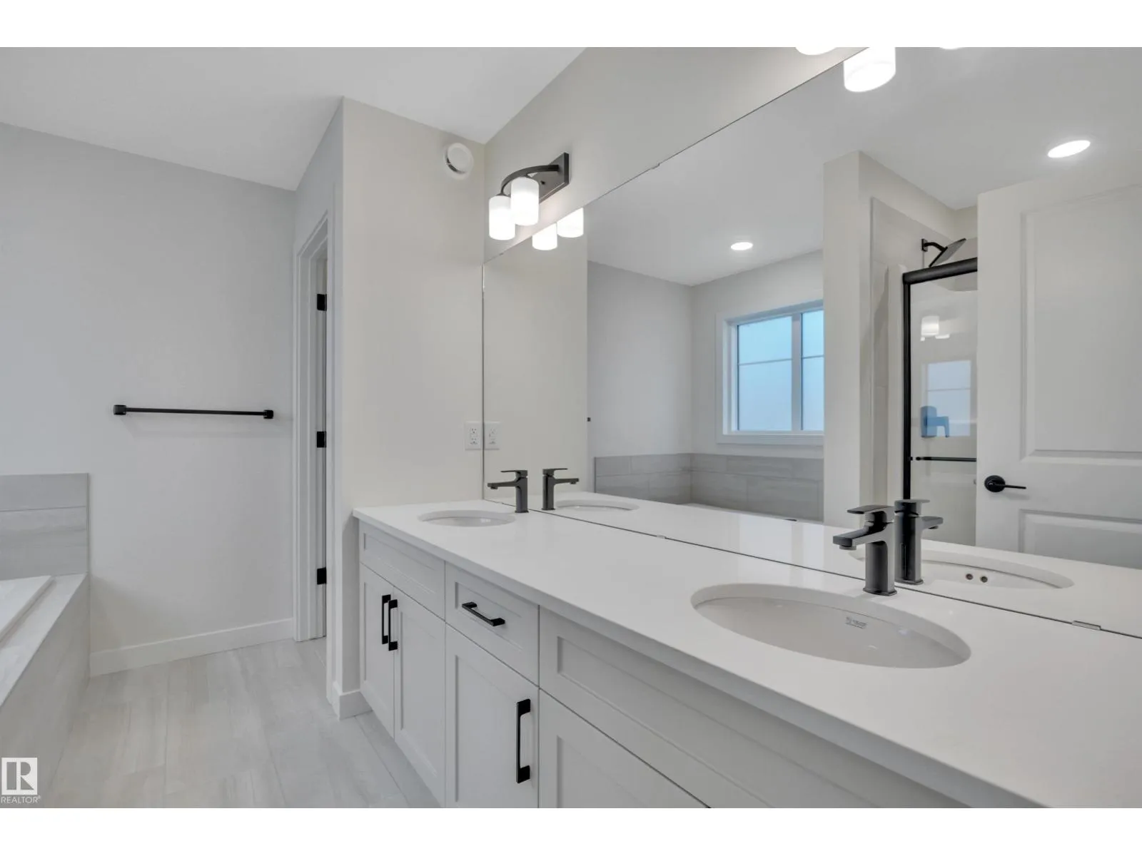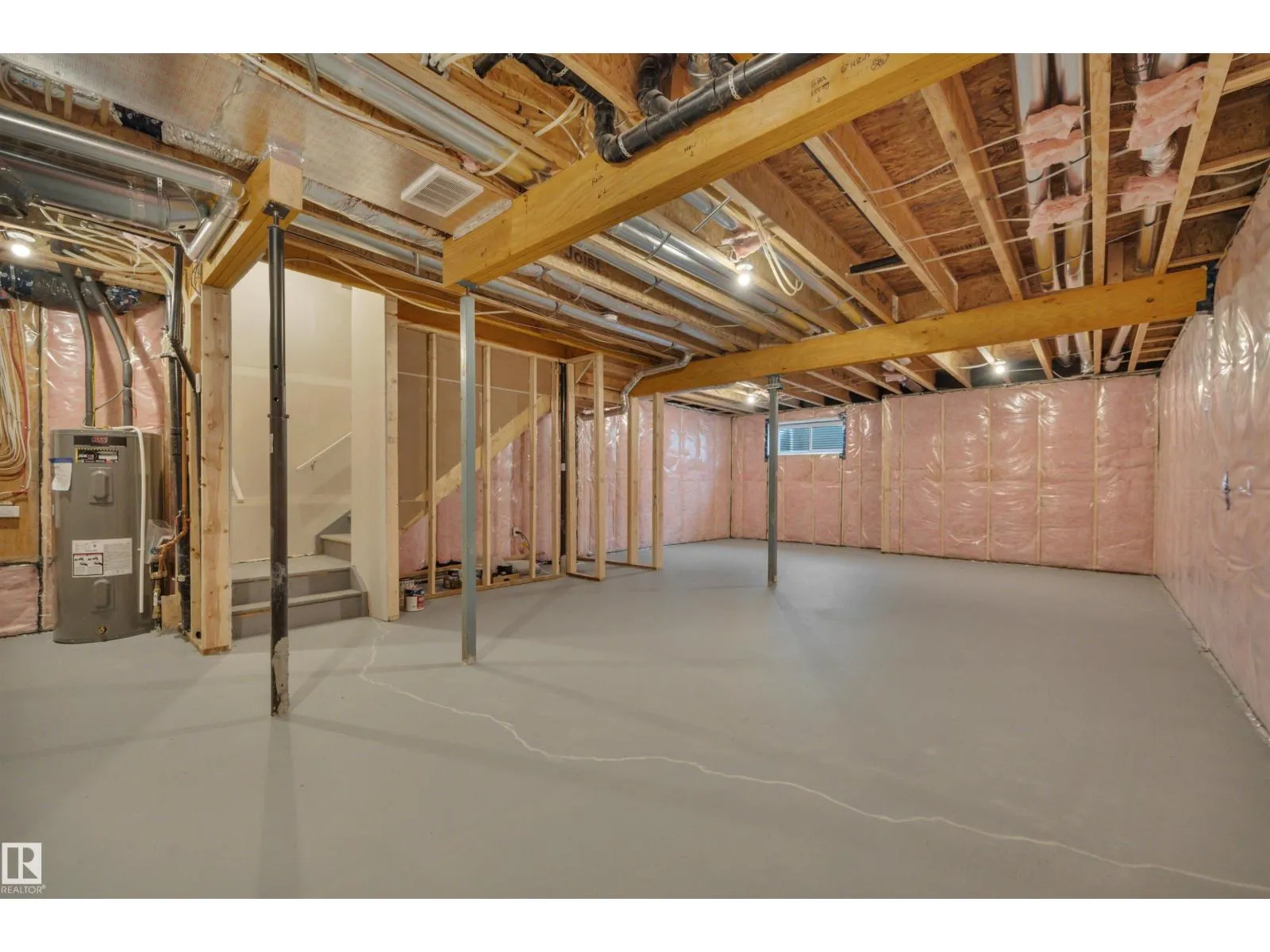 Evan model, exceptional residence crafted by San Rufo Homes, showcasing great quality. This home features a contemporary open layout with 9' ceilings main/basement, side entry, adorned with quartz counters, premium vinyl plank flooring & designer lighting throughout. Main floor welcomes you with large & airy foyer, leading to a chef-inspired kitchen equipped with high-end cabinets, spacious eat-up island, & walkthrough pantry that connects to the garage. The dining space, complete with patio doors, seamlessly flows into the chic living rm with stylish fireplace, along with 2-piece bath & handy mudroom. Ascend to the upper level, where vaulted ceilings create an expansive atmosphere, housing a fantastic bonus rm, family bathroom, & 3 bedrooms, including a primary suite with an expansive walk-in closet & ensuite featuring dual sinks, tub, & glass shower. Upstairs also has handy laundry. Home has 200AMP electrical for future EV/Central AC demands. Backing Lewis Farms Rec Center gives privacy & quick access! (id:27476)