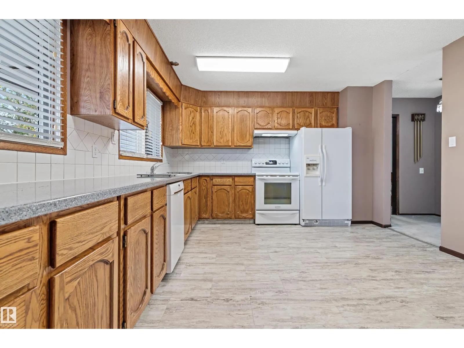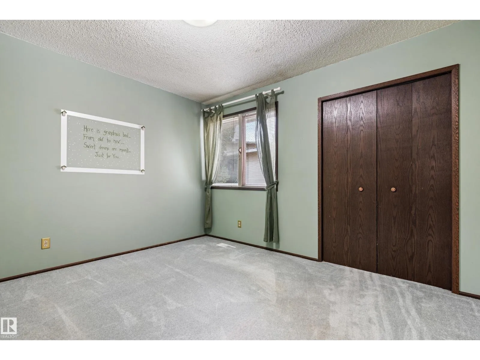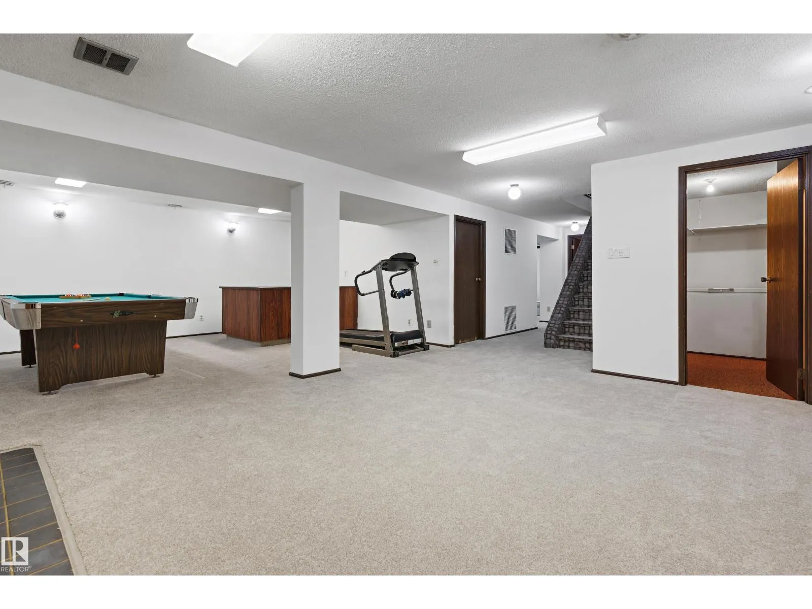 SEVEN bedrooms (4 up & 3 down) and 3 full bathrooms!! This 1539 sqft bungalow is very spacious, can accommodate 2 families and has loads of storage. Located on a large pie lot in a quiet crescent, this home also backs onto a park, has an underground sprinkler system, and has a double attached garage with long driveway that can park many vehicles.. The kitchen has corian counters, the hot water tank was replaced in 2019, and the shingles in 2014. The basement has newer carpet and is fully developed with the aforementioned 3 bedrooms, full bathroom, large storage rooms, and a large family room with pellet insert fireplace and pool table (is included). Close to MANY schools from K-12, walk to the bus, and near to Londonderry Mall, Manning Town Center and the LRT. (id:27476)