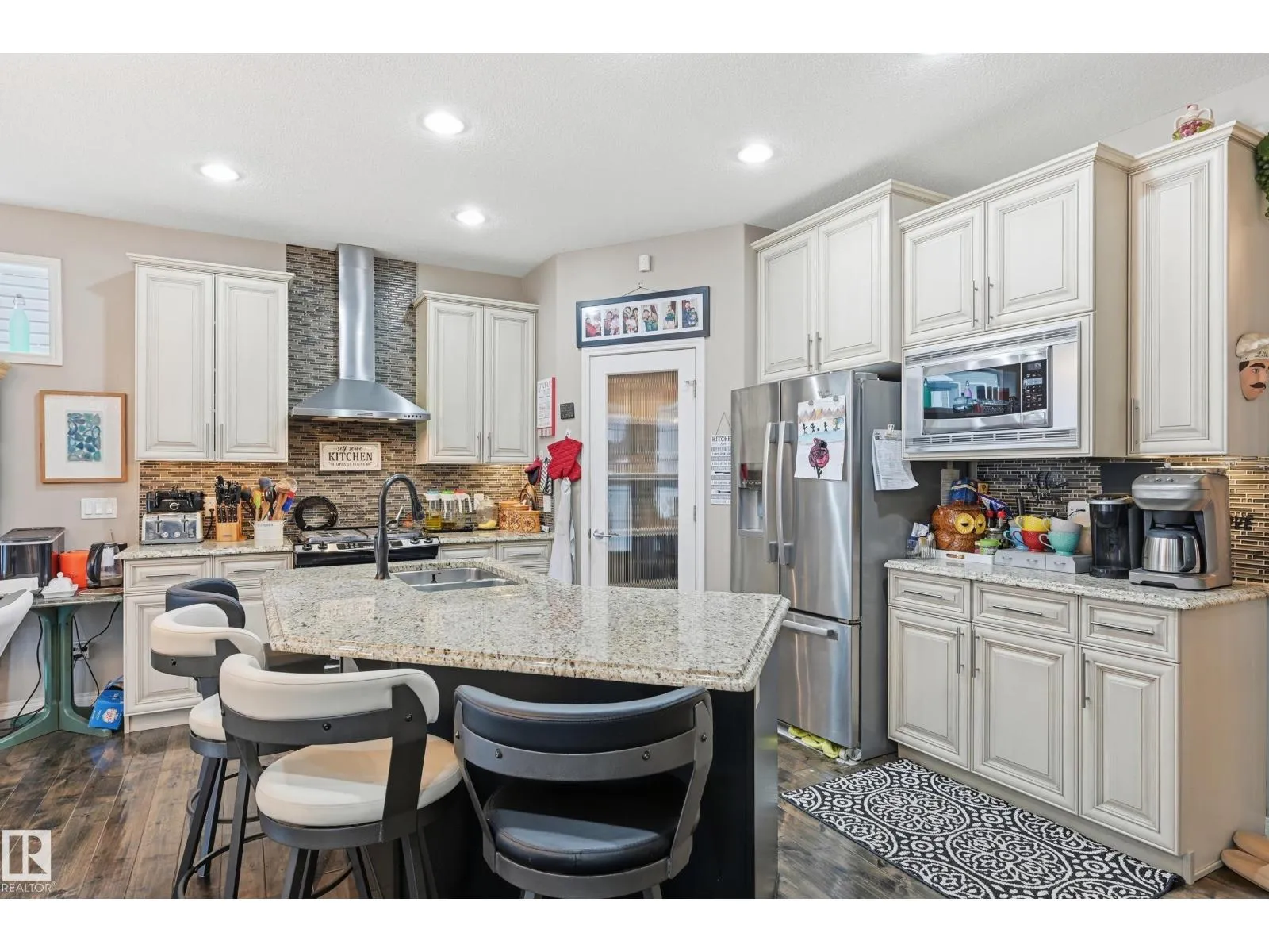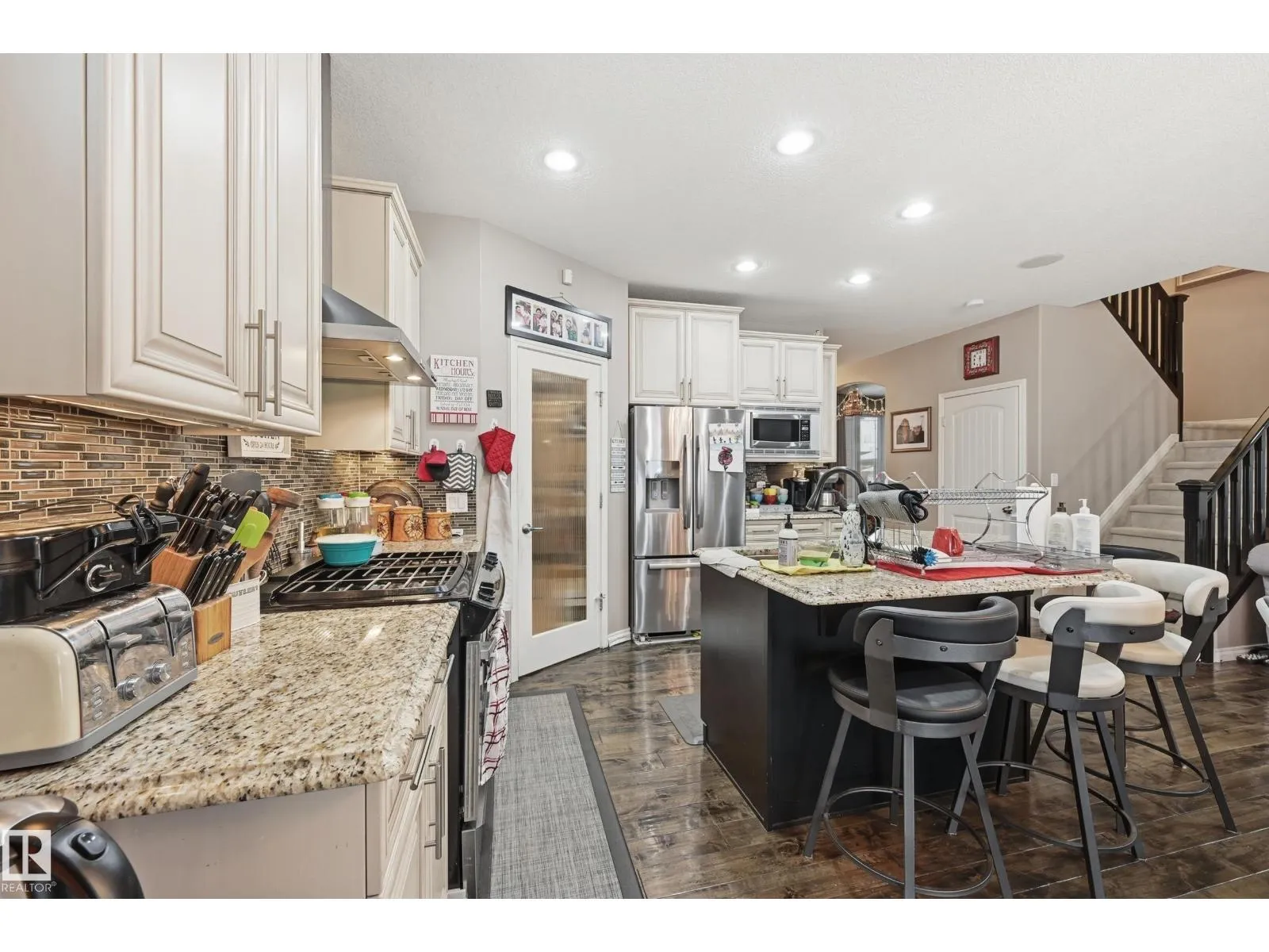 Custom built Executive 2 STOREY offers elegance, magnificent living spaces. This sprawling home is perfect for a multigenerational family, featuring 2800 of living space, 4 bed, 3.5 full baths. Entering the home you will appreciate the large foyer with a den/office at the front with large south facing window. Moving into the main space beautiful hand scrapped hardwood floors flow throughout. The kitchen is a chefs dream boasting stainless steel appliances, granite counters, walk-through pantry and a gas stove, a half bath and spacious back entrance finish off the space. Upstairs boasts 3 bedrooms & 2 full bathrooms with a gorgeous Master Suite with a massive walk-in closet and 5 piece spa like ensuite with deep soaker tub and large shower. The Basement is fully finished with an IN-LAW suite, perfect for extended family with kitchen, large bedroom, and full bathroom. The large backyard is great for family BBQ's, with a covered patio, and gazebo. Located in the sought out area of Rapperswill. (id:27476)