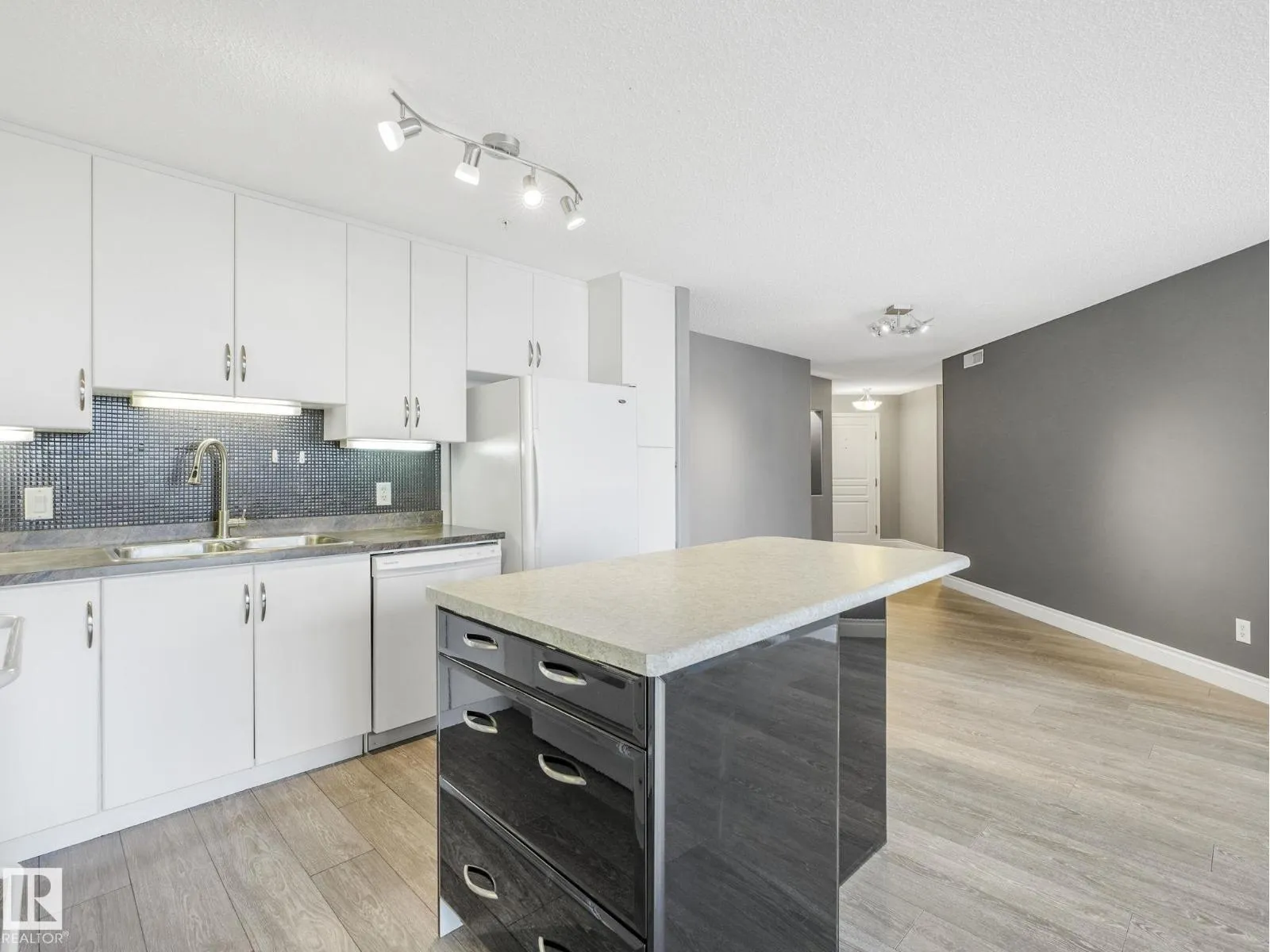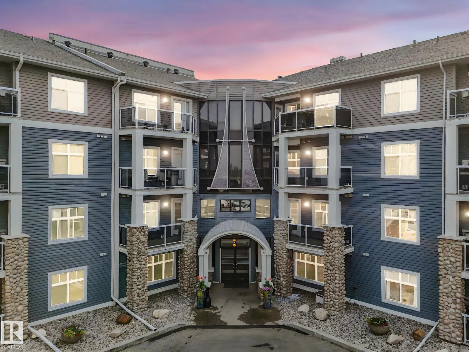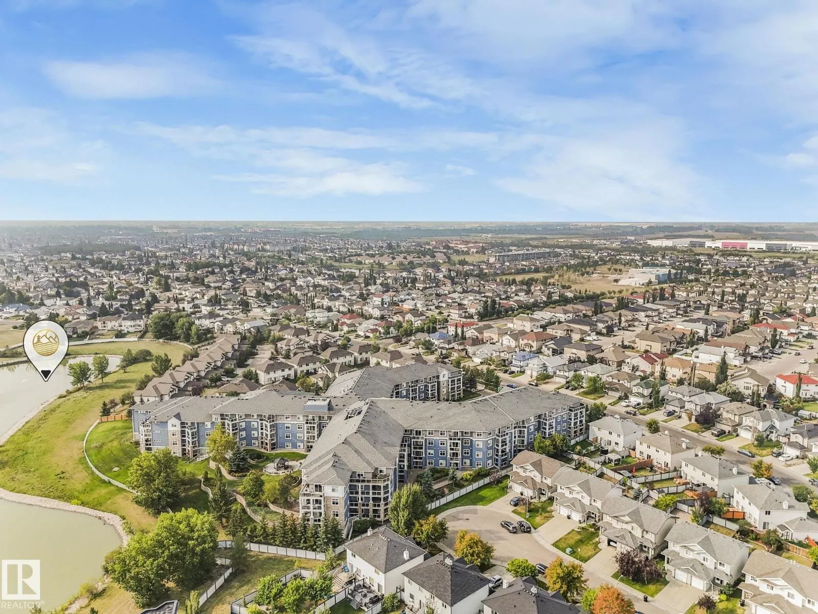 Do you enjoy lots of natural light? The Living room and Kitchen area are blessed with a wall of floor to ceiling windows. A wonderful, spacious floor plan, one of the largest units in the bldg. 2 bedrooms PLUS A DEN. Modern open concept is perfect for personal convenience and for entertaining. The kitchen has been upgraded with a large center island,designer back splash, pot drawers and a garborator. Enjoy the convenience of an in suite laundry room and generous storage. You will love the comfortable master bedroom with adjoining 4 piece bath. Check out the complexes amenities with underground parking, 4th floor outdoor patio, an exercise room, social and games room plus exterior walkways to the lake. You also have a caged storage area with your titled parking stall. Lots of new shopping, restaurants and conveniences are along 127th street which is only minutes away plus a quick access to the Anthony Henday makes the location premier! (id:27476)