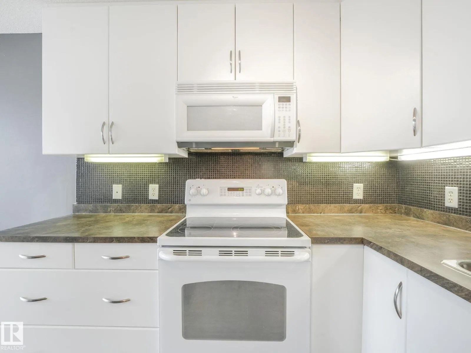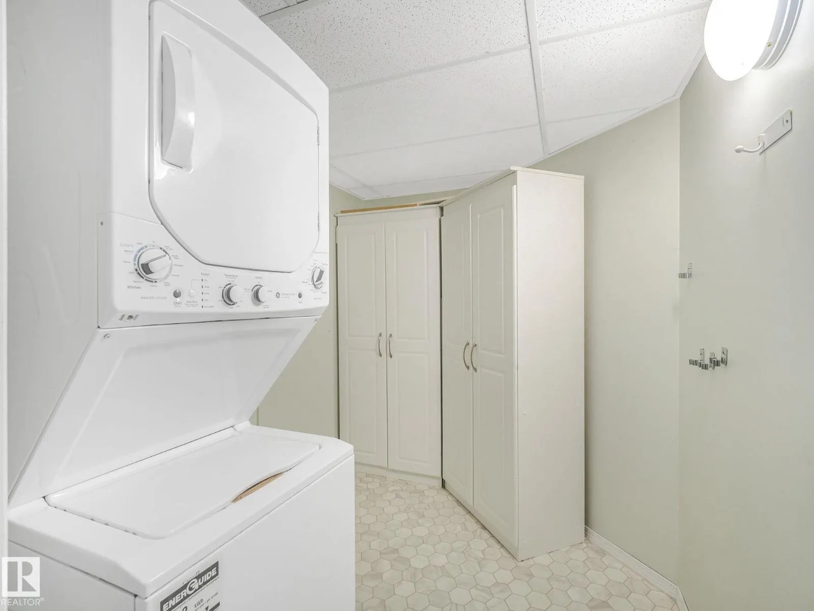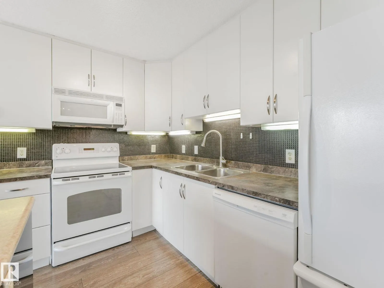 Do you enjoy lots of natural light? The Living room and Kitchen area are blessed with a wall of floor to ceiling windows. A wonderful, spacious floor plan, one of the largest units in the bldg. 2 bedrooms PLUS A DEN. Modern open concept is perfect for personal convenience and for entertaining. The kitchen has been upgraded with a large center island,designer back splash, pot drawers and a garborator. Enjoy the convenience of an in suite laundry room and generous storage. You will love the comfortable master bedroom with adjoining 4 piece bath. Check out the complexes amenities with underground parking, 4th floor outdoor patio, an exercise room, social and games room plus exterior walkways to the lake. You also have a caged storage area with your titled parking stall. Lots of new shopping, restaurants and conveniences are along 127th street which is only minutes away plus a quick access to the Anthony Henday makes the location premier! (id:27476)
