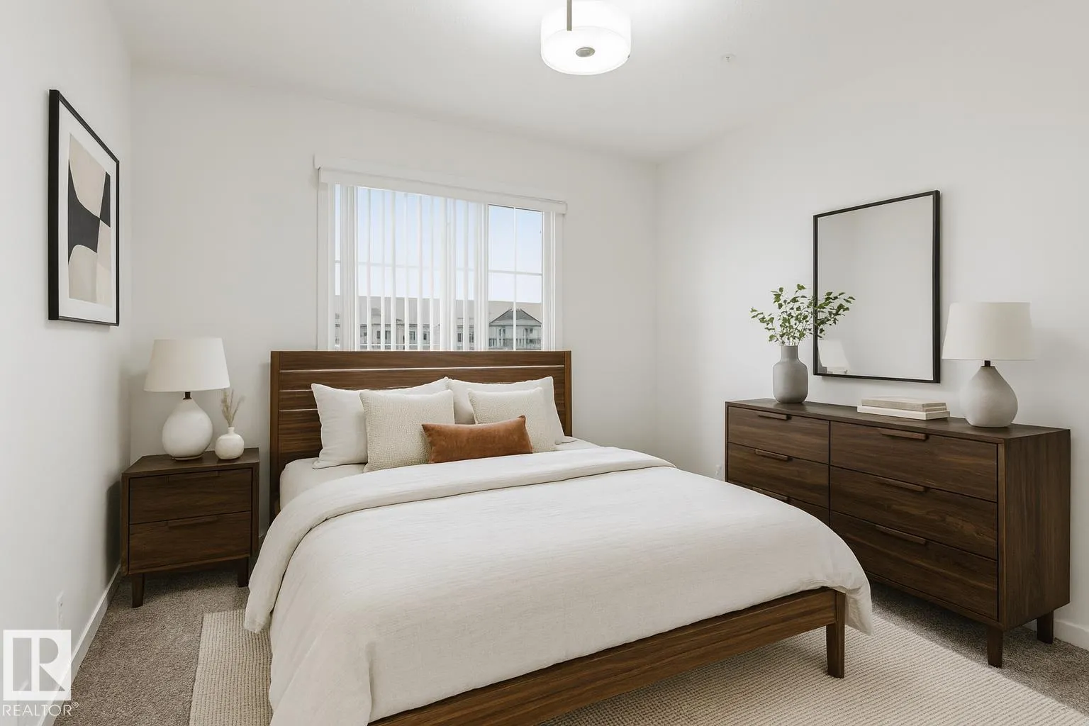Well maintained and spacious 2 bed, 2 bath condo with 2 PARKING STALLS, ALL UTILITIES INCL IN CONDO FEE & AIR CONDITIONING! Perfect for first time home buyers or investors! Located in Village at Walker Lake and features 9' ceilings, quality finishings, sleek black kitchen appliances, and a large eating bar. Generously sized West-facing patio to enjoy the evening sun after a long day! The large living area and primary bedroom with attached 3 pc bathroom provides maximum comfort. Well sized second bedroom is perfect for a home office space. Comes with TWO TITLED PARKING SPACES - one underground heated parking stall and one outdoor stall. Visitor parking available. Conveniently located close to schools, public transportation, grocery stores, shopping & dining at South Edmonton Common, walking trails & ponds. Easy access to major commuter routes including Ellerslie Rd and Anthony Henday for effortless city wide commuting. (id:27476)