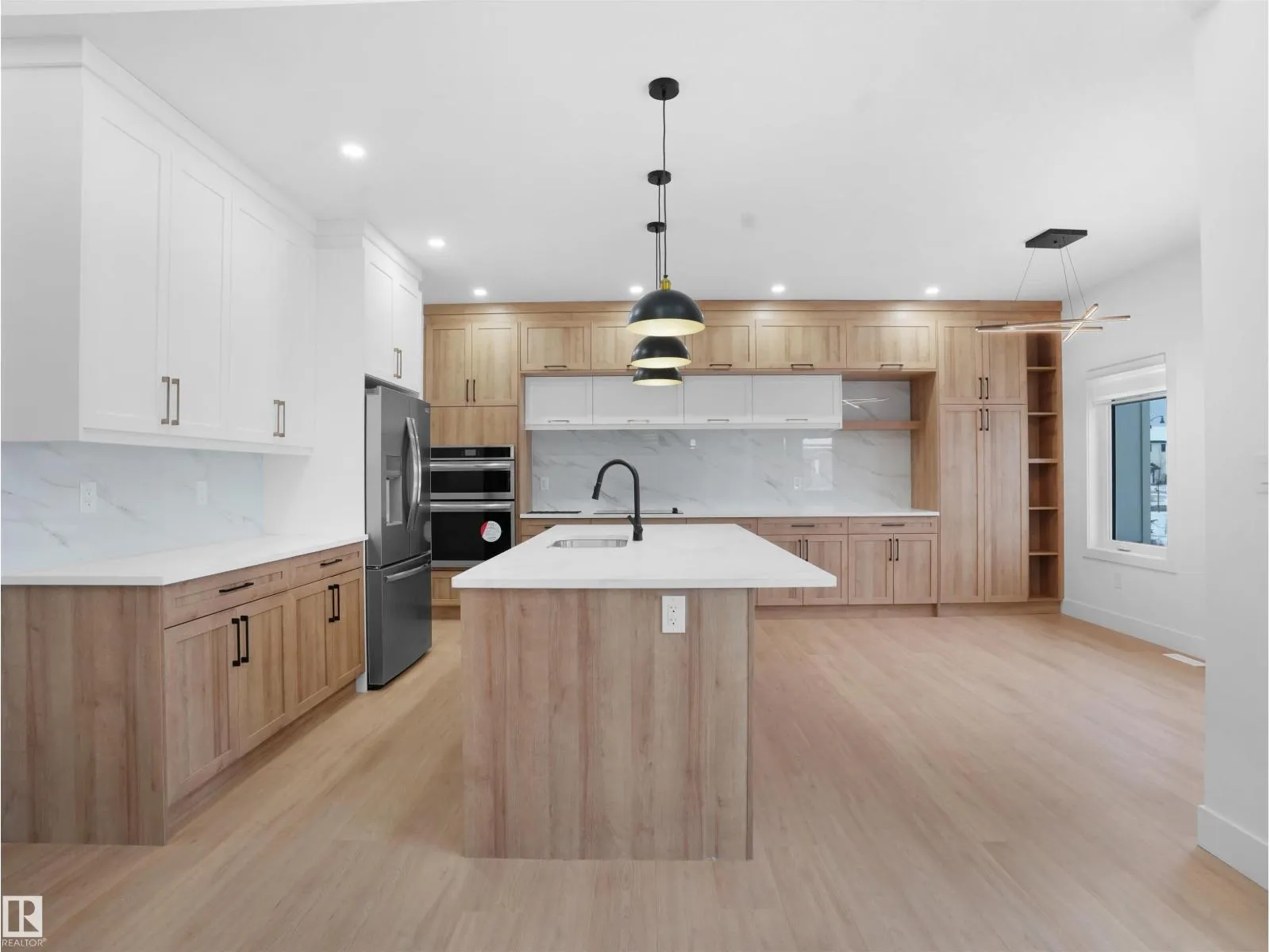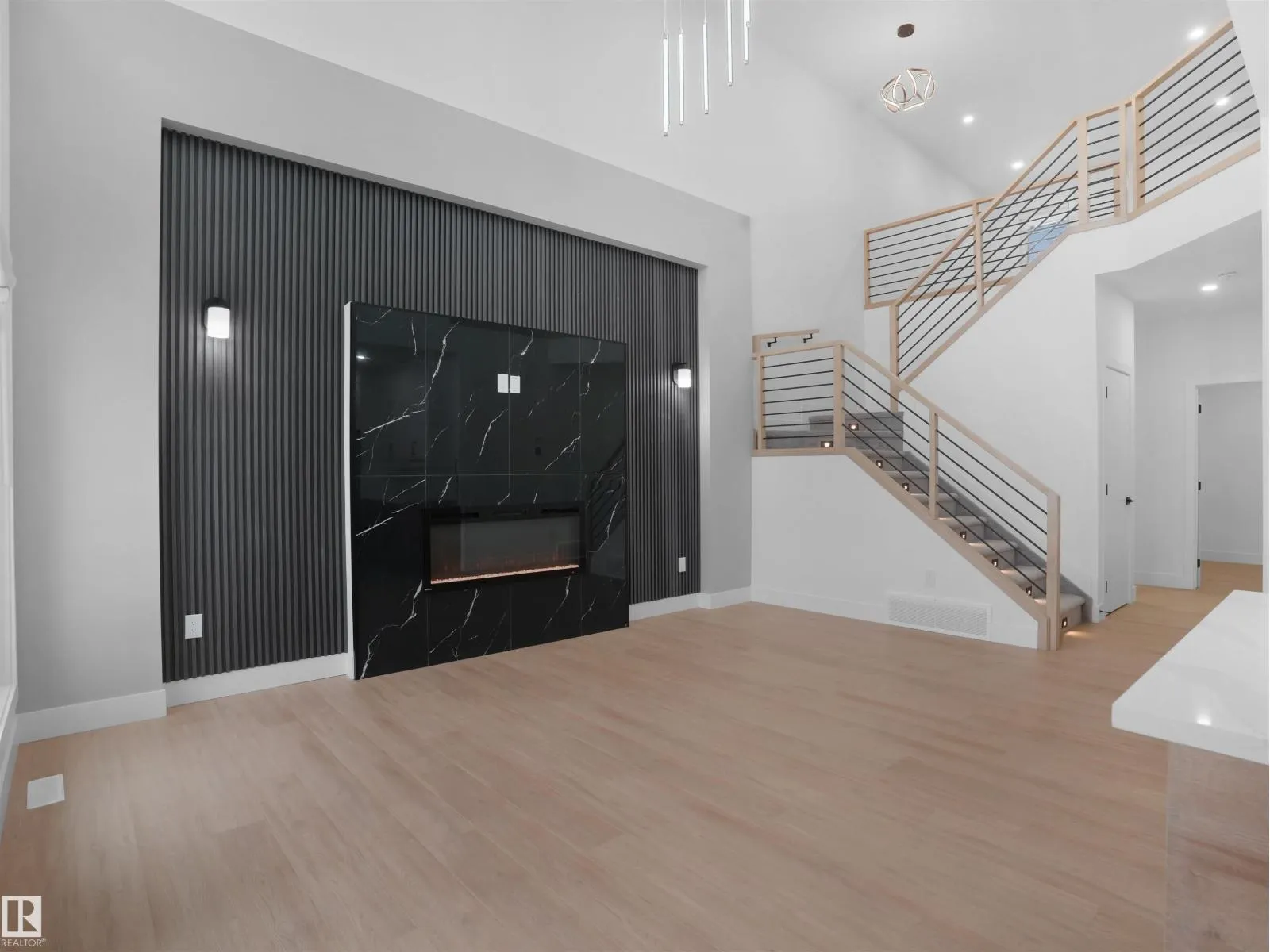 Welcome home to this brand new luxury custom home designed and built by Finesse Homes and backing the lake in Griesbach. This home offers over 2450 + sq ft that includes 4 bedrooms, main floor den, 3 full bathrooms, 9 ft ceiling, double oversized attached garage. The main level features the beautiful open concept family room with open to below and large windows that's wide open to the kitchen and nook. The main floor also has a spice kitchen and walk through pantry. To finish the main floor it comes with a den and full bath. The upper level has a large center bonus room a large primary bedroom with a 5 piece spa like ensuite, an additional 3 large bedrooms , a 4 piece bath and a laundry room. This home also comes with a full walkout basement perfect for future development. Incredible attention to detail & only the finest quality materials used. (id:27476)