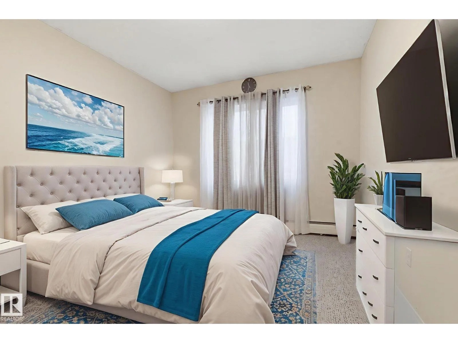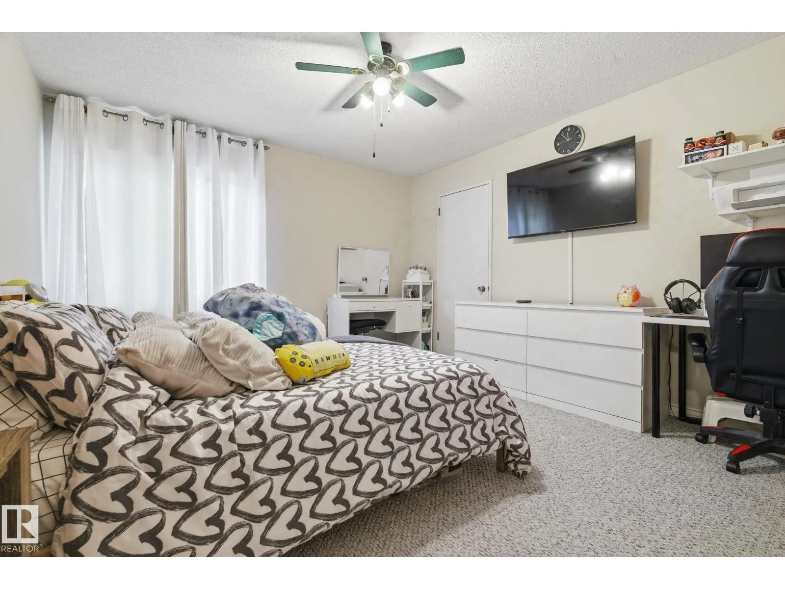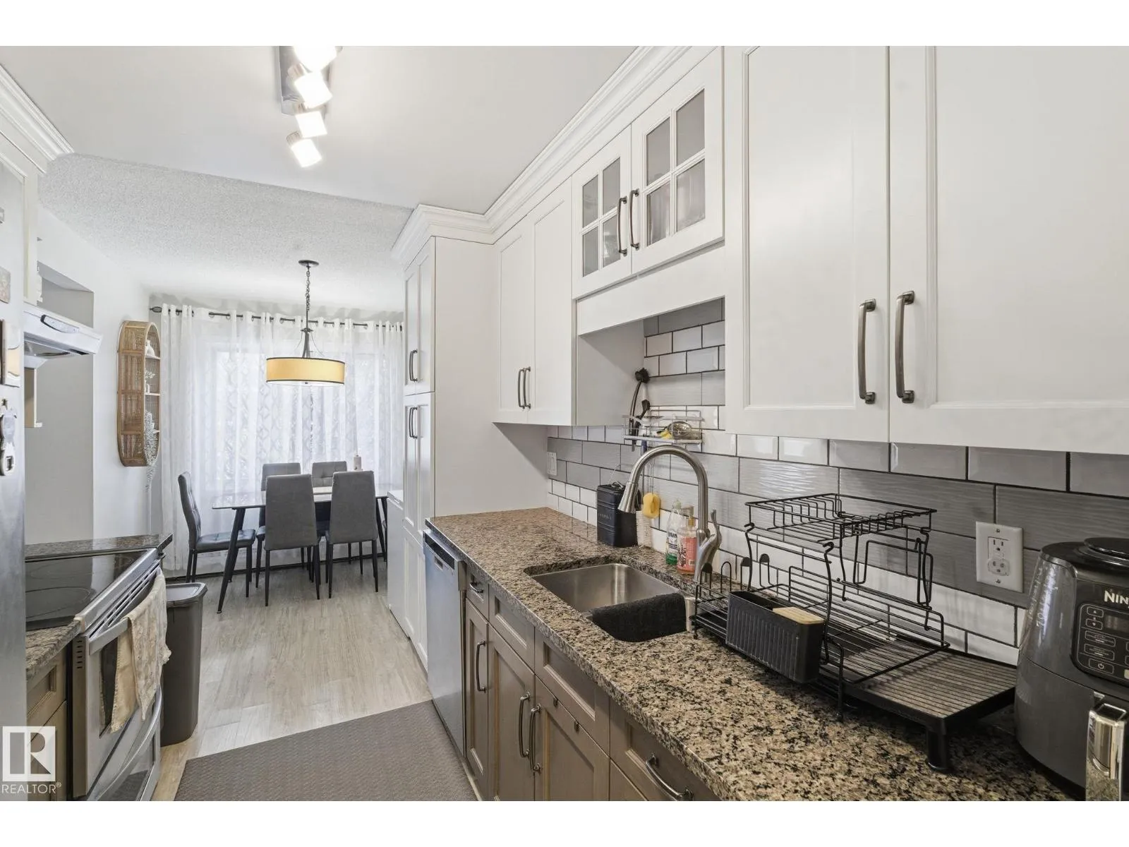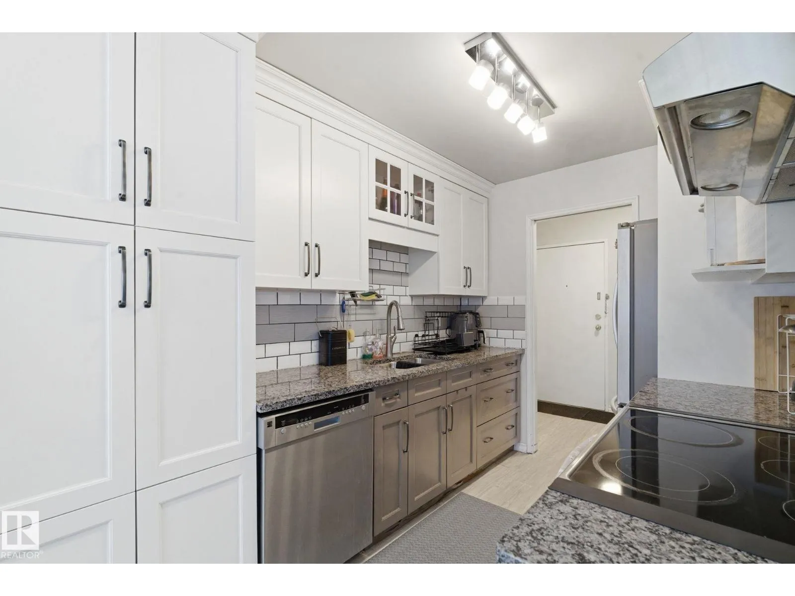 Welcome to this spacious and well-kept 2-bedroom 1-bath condo in a convenient location near Southgate Mall, shopping and grocery amenities just across the street and major transit. The bright kitchen features quartz countertops, tile backsplash, ceiling height cabinets, a pantry with pull-out drawers, and stainless steel appliances, including a dual oven, bottom freezer fridge, microwave, hood fan and in-suite laundry. Laminate flooring runs through most of the unit, with carpet in the living room for added comfort. The updated four-piece bathroom is well-maintained. The primary bedroom includes a walk-in closet, and the second bedroom works well for guests or a home office. Enjoy a balcony overlooking the courtyard plus an extra-large storage room on the same floor. A fitness room in a nearby building is included in the condo fees. (id:27476)