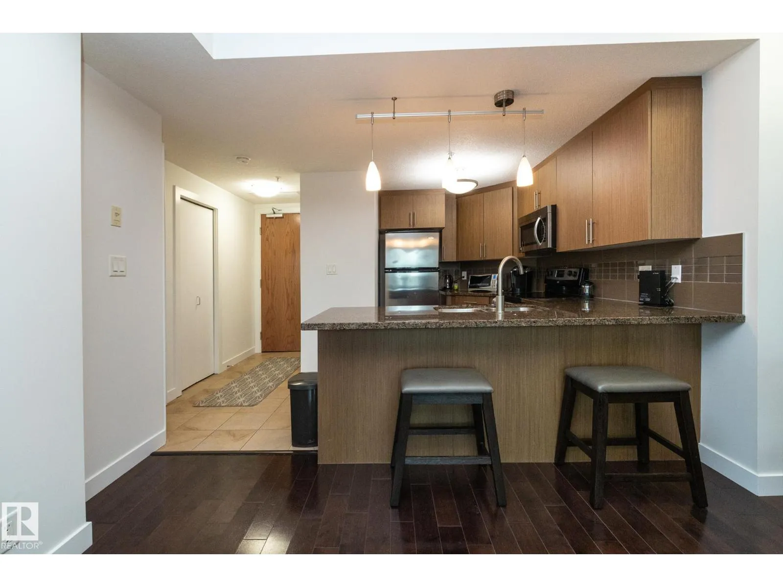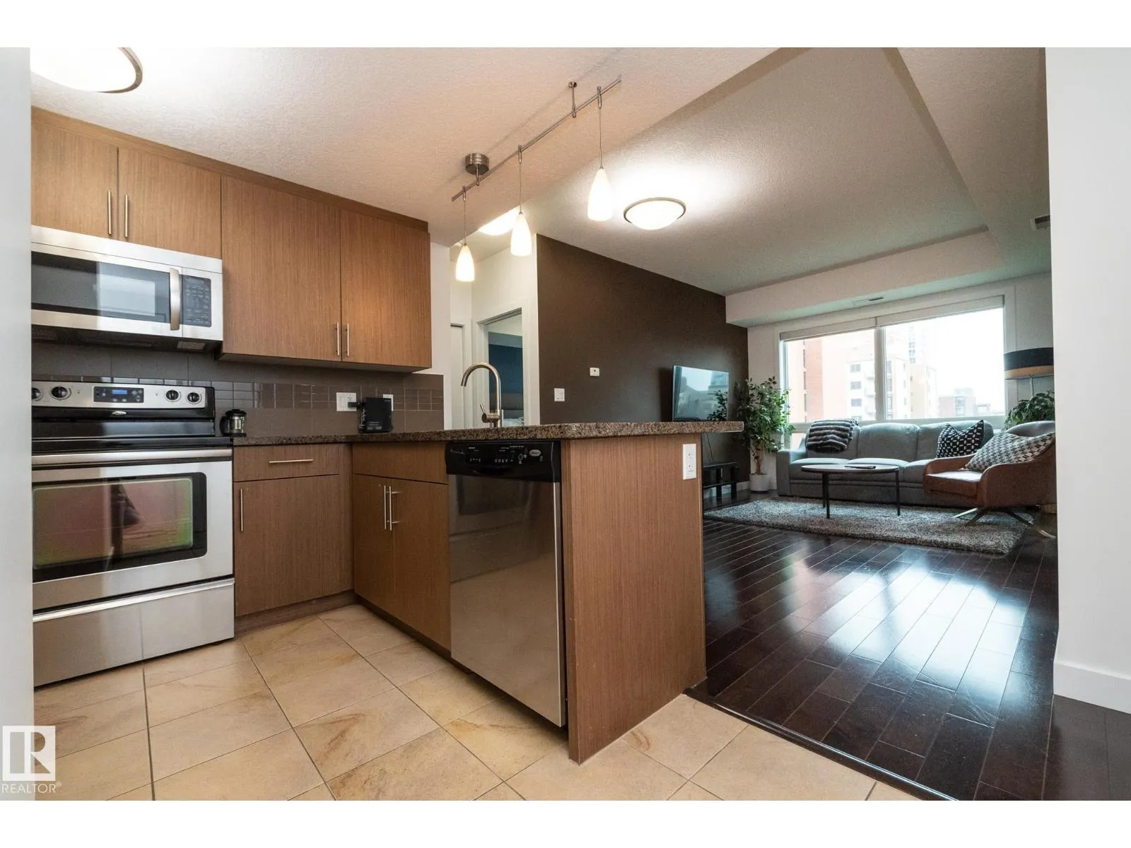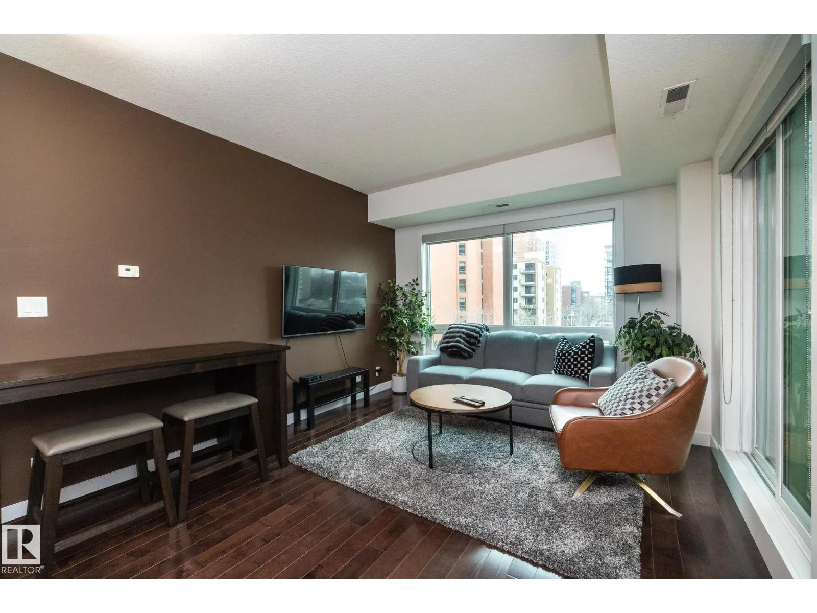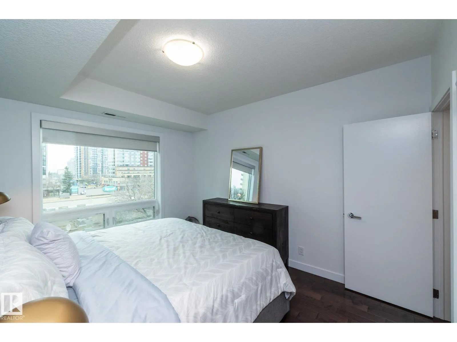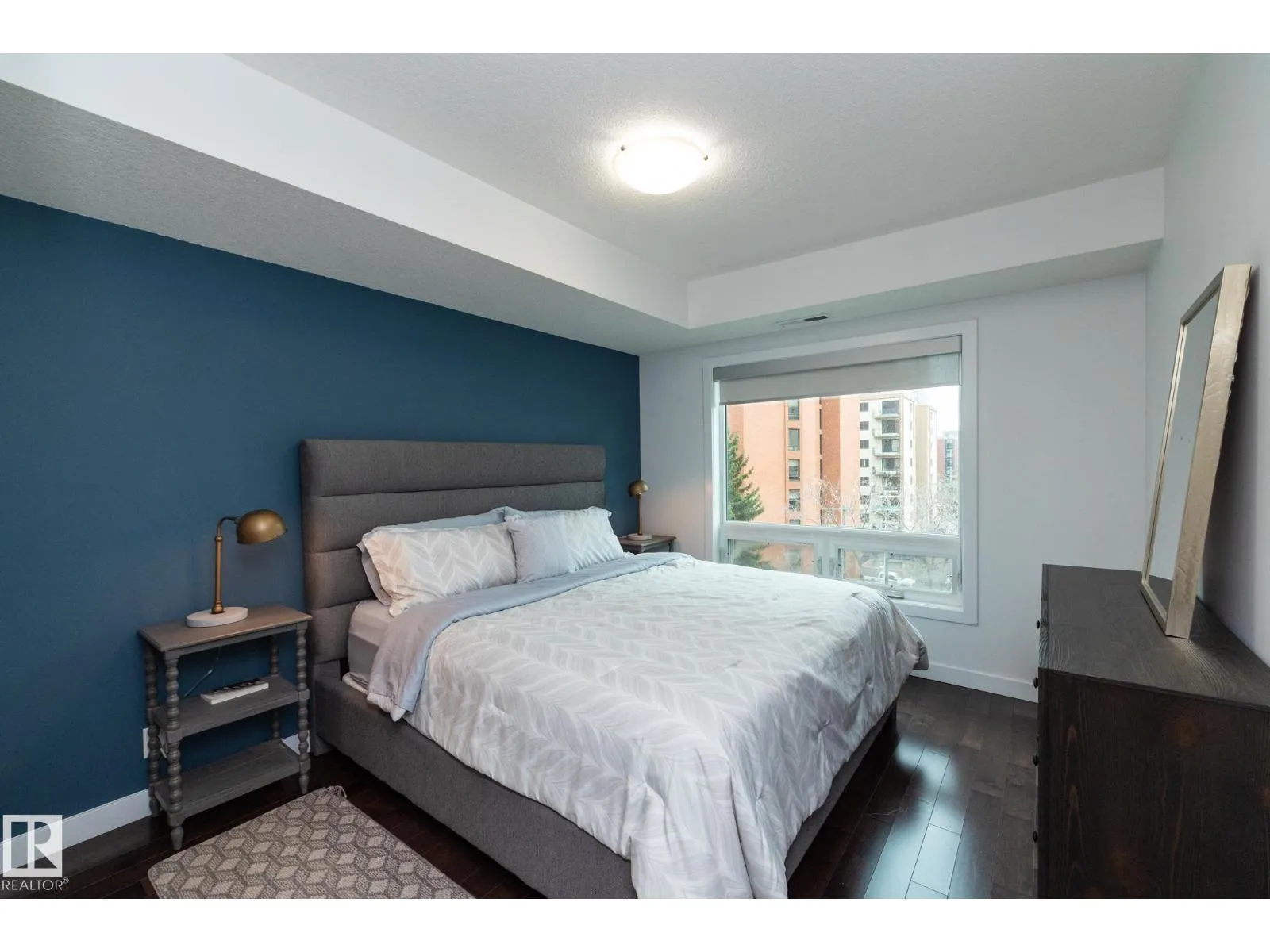 OWN UNIT 505 IN THE SERENITY TODAY! This meticulously kept 2 bedroom and 1 bathroom unit offers 9ft ceilings, floor to ceiling windows, dark cabinetry, eat-at counter area, quartz countertops, engineered wood & tile flooring throughout, stainless steel appliances. Two good size bedrooms and 4 piece bath. The balcony offers amazing downtown views. Also with this unit is in-suite laundry, one heated underground parking and visitor parking. This secure, quiet building is well-maintained with an excellent condo board & experienced management. Close by shopping, and restaurants with River Valley access, public transit and much more! (id:27476)