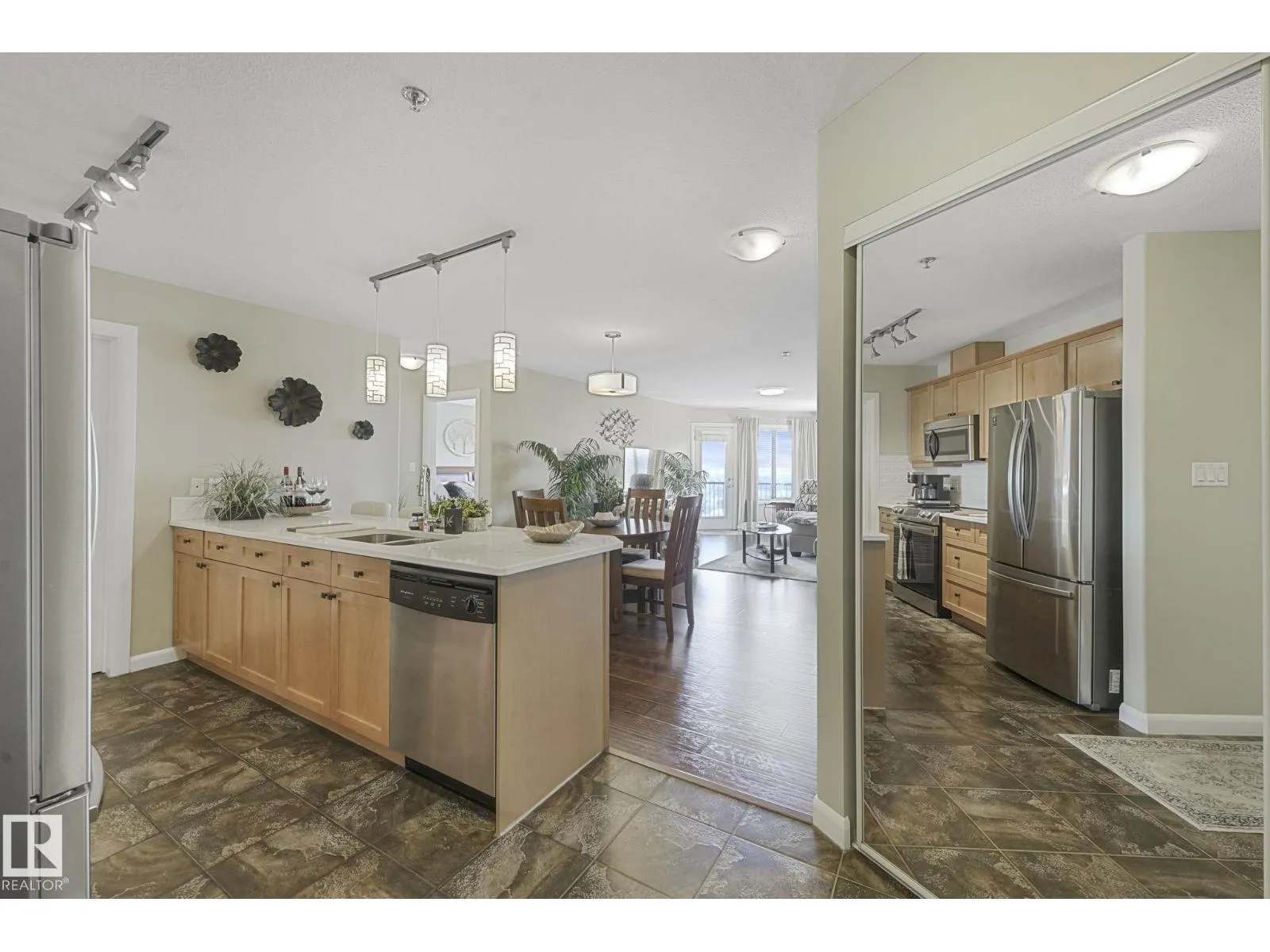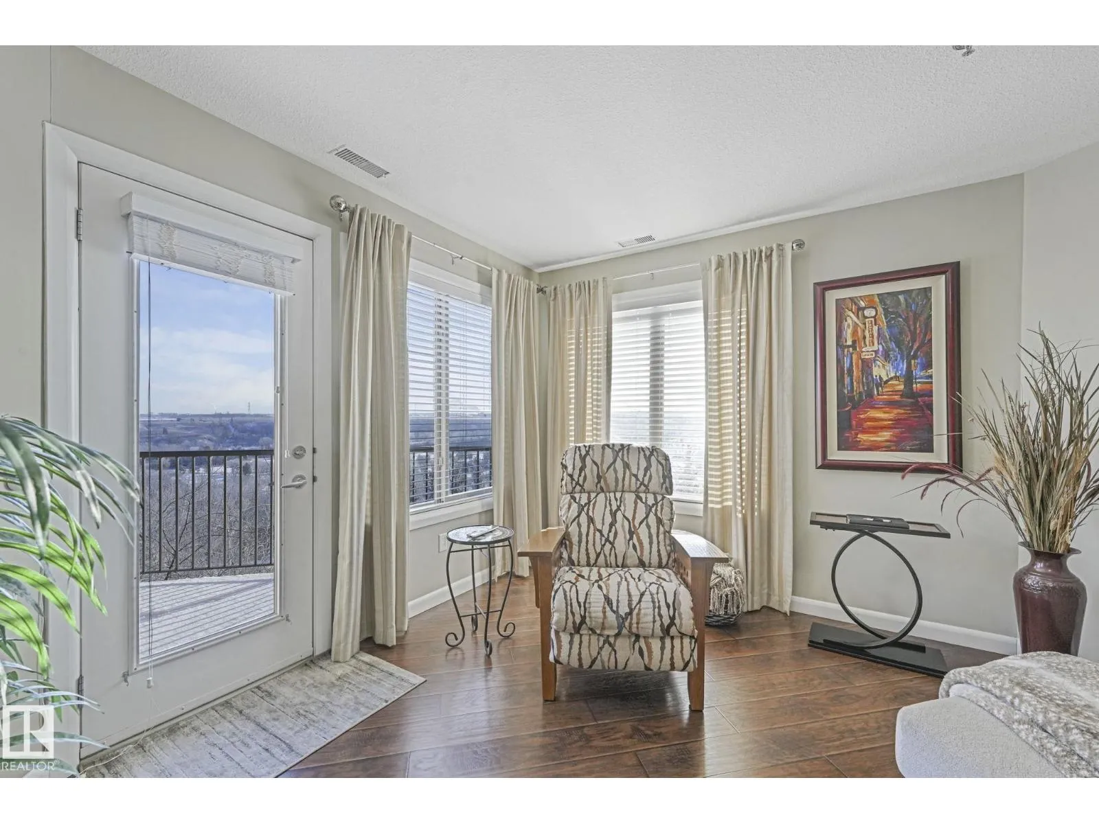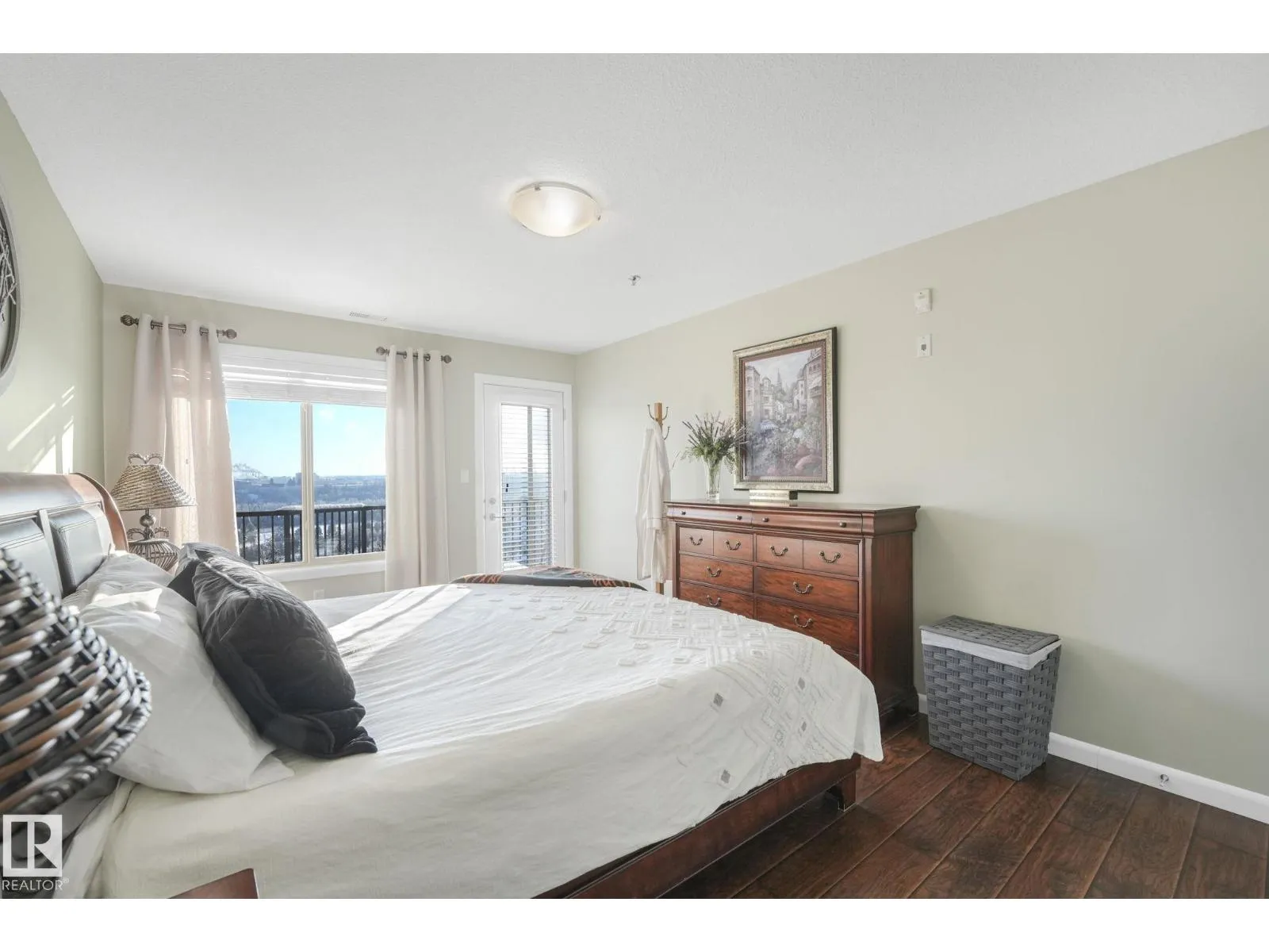 Executive top-floor penthouse condo bright, open living space with spectacular river valley views from all rooms. This 2-bed, 2 full bath unit delivers outstanding river valley views from a large deck with a natural gas hookup. The layout feels wide and inviting with an open kitchen, dining and living area. Big windows fill the space with natural light. Both bedrooms are oversized, and the primary suite feels especially roomy. You get in-suite laundry, stainless steel appliances, air conditioning and a separate storage locker. The heated underground parkade includes a titled stall locker room and a car wash. The complex is 18 plus and offers a social room with a pool table, plus an exercise room. The location sits right on the ravine, close to shopping, schools, transit and easy access to walking paths. A standout unit in a quiet, well-kept building. Upgraded quartz countertops throughout. Spectacular place to live! (id:27476)