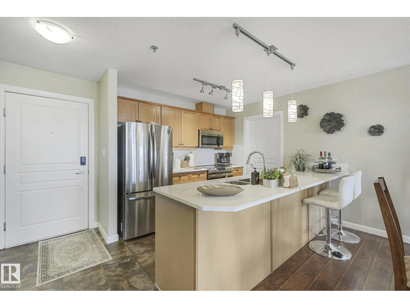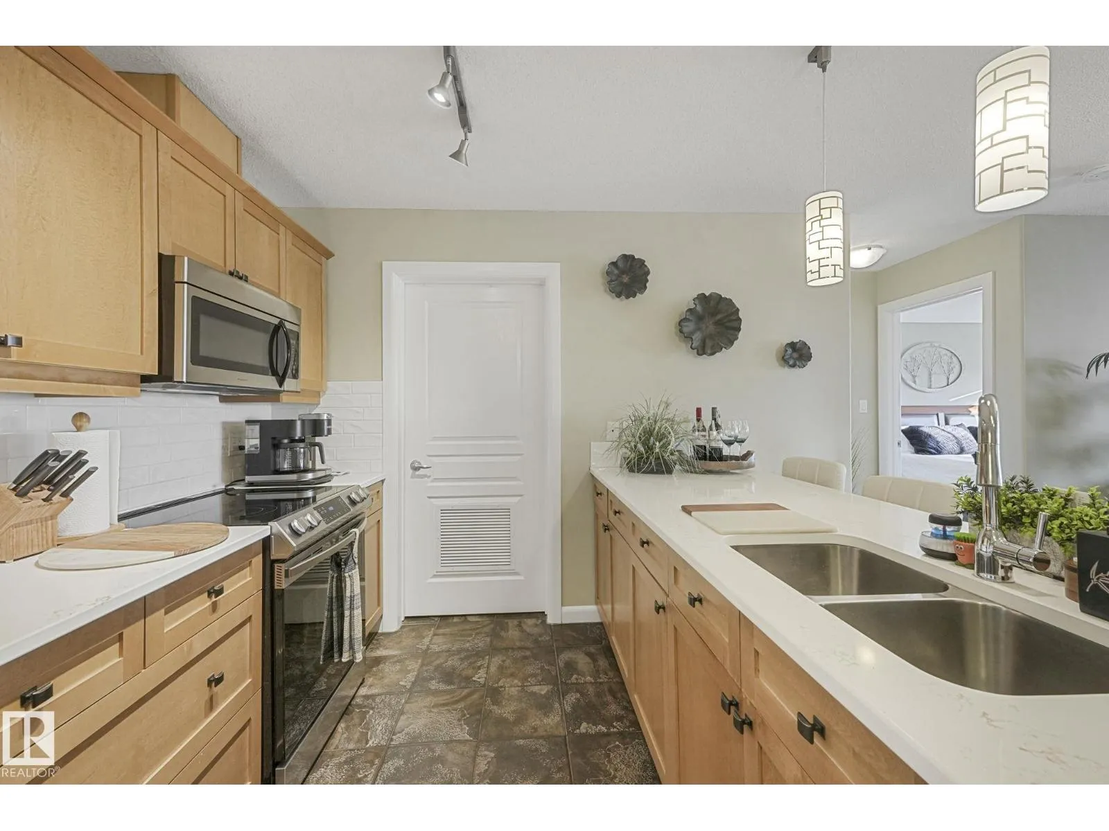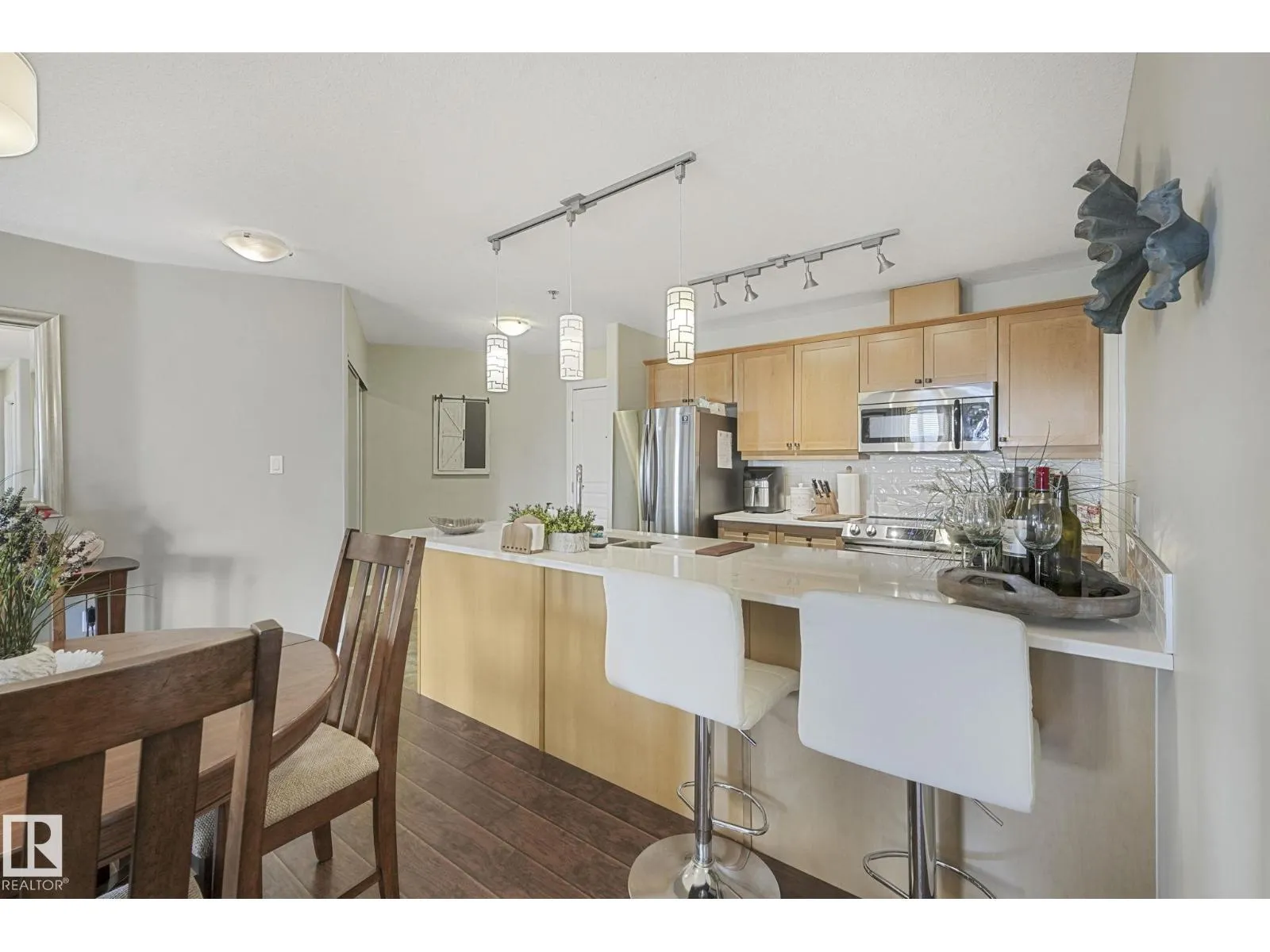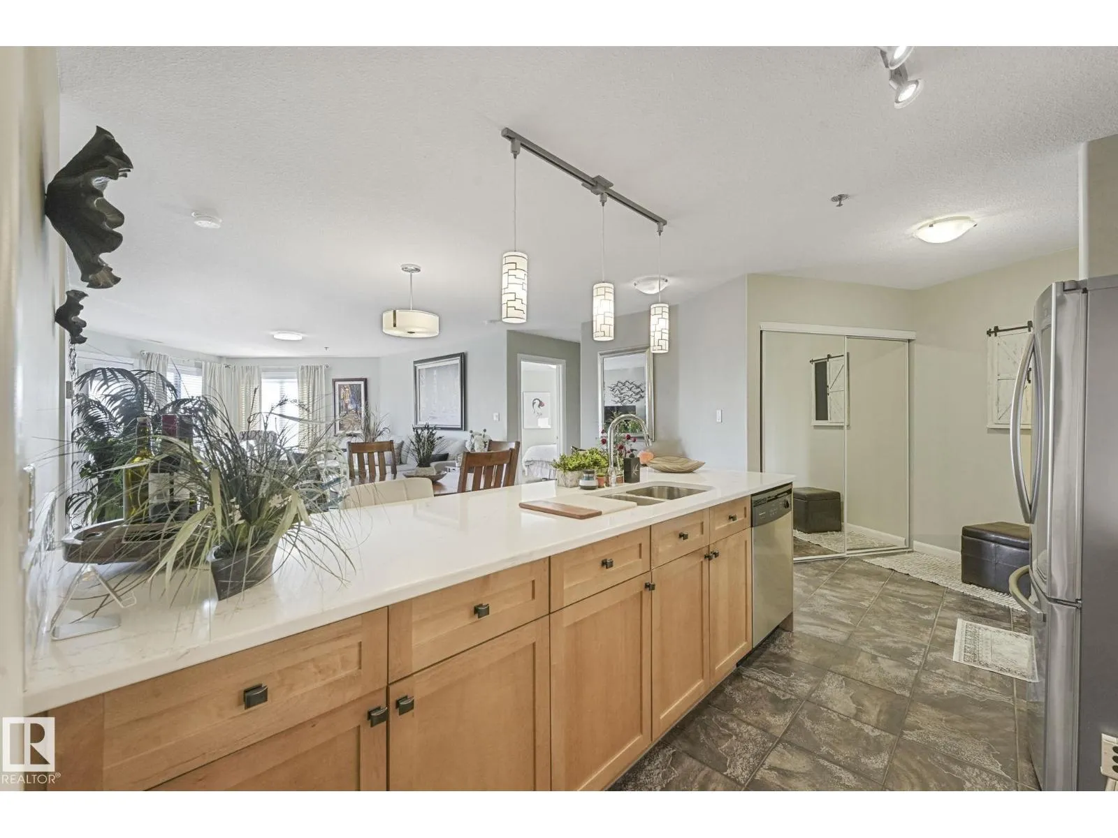 Executive top-floor penthouse condo bright, open living space with spectacular river valley views from all rooms. This 2-bed, 2 full bath unit delivers outstanding river valley views from a large deck with a natural gas hookup. The layout feels wide and inviting with an open kitchen, dining and living area. Big windows fill the space with natural light. Both bedrooms are oversized, and the primary suite feels especially roomy. You get in-suite laundry, stainless steel appliances, air conditioning and a separate storage locker. The heated underground parkade includes a titled stall locker room and a car wash. The complex is 18 plus and offers a social room with a pool table, plus an exercise room. The location sits right on the ravine, close to shopping, schools, transit and easy access to walking paths. A standout unit in a quiet, well-kept building. Upgraded quartz countertops throughout. Spectacular place to live! (id:27476)