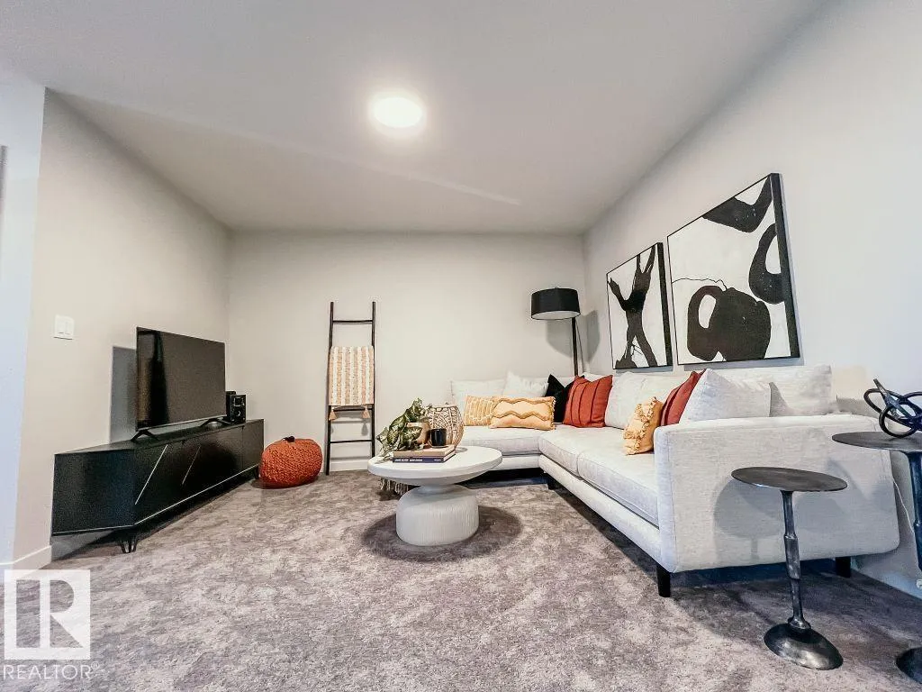 Welcome to the Entertain Impression 20 by Cantiro Homes! Step into the stunning 1832 sq ft front drive single family home featuring 3 beds and 2.5 baths, designed with entertaining in mind. The Entertain Impression floorplan offers an oversized kitchen island, a spacious dining area perfect for hosting, and an upstairs recreation room for family fun or casual gatherings. Boasting a modern Shade interior style with chic black and white accents, this home exudes contemporary elegance. The West Coast Fusion Plus exterior impresses with a side entry, electric fireplace, and 9' foundation, complemented by glass railings. Every detail has been thoughtfully designed for homeowners who love to entertain and make a lasting impression. Photos are representative. (id:27476)