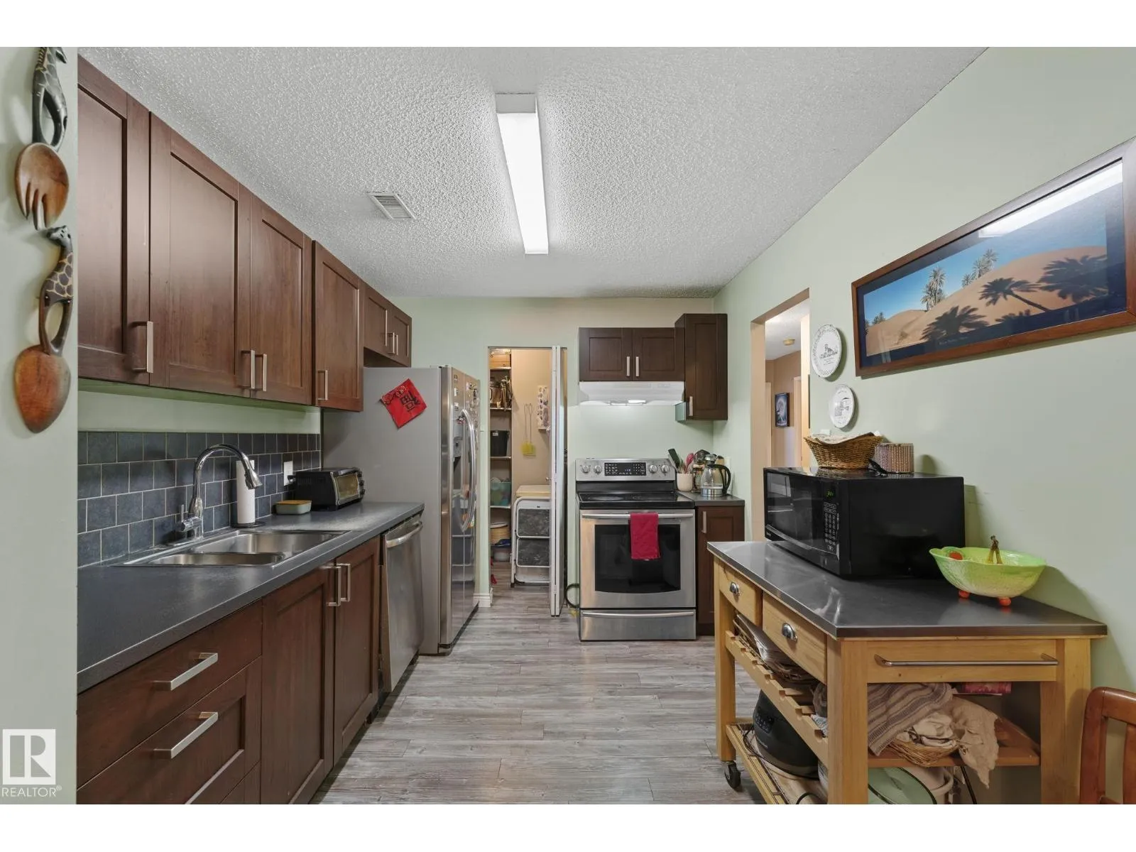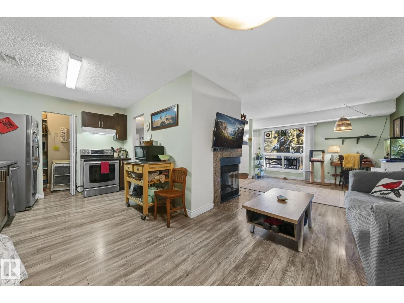 A rare find for first-time buyers, families, or savvy investors, with a tenant open to staying. This move-in ready three-bedroom upper end unit in Quail Ridge offers one of the best locations in South Edmonton, just steps from the picturesque Whitemud Creek Ravine. Enjoy new flooring throughout, a bright living room with a two-sided wood-burning fireplace, and a kitchen with updated cabinets, tile backsplash, stainless steel appliances (2013), and a walk-in pantry. The spacious primary bedroom includes a walk-in closet with direct access to the updated four-piece bath. Additional highlights include a 10' x 6' balcony storage room, low condo fees, and a new furnace (2025), and a huge exterior update to the complex in 2016, including roof, stairs, windows, and doors. An energized parking stall and ample visitor parking add convenience. Close to schools, playgrounds, the LRT, shopping, restaurants, the YMCA, and scenic walking trails, an ideal place to call home or a smart investment. (id:27476)