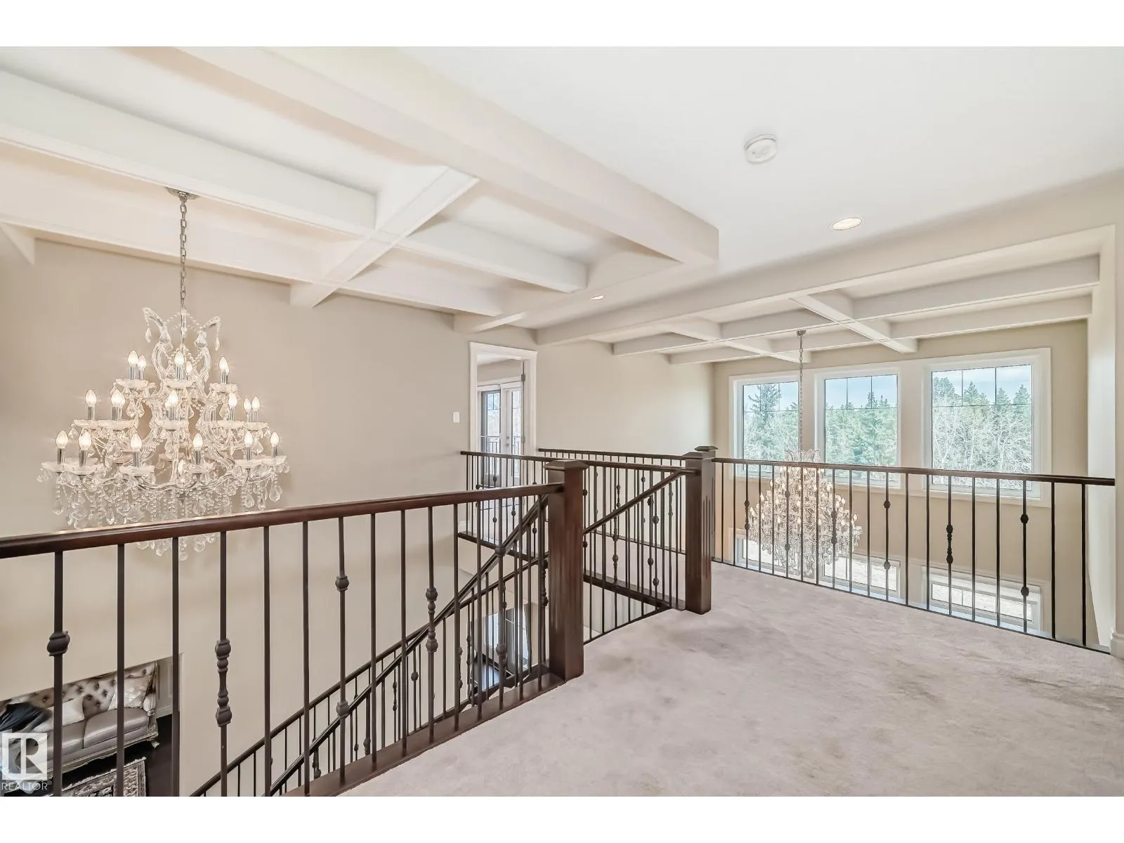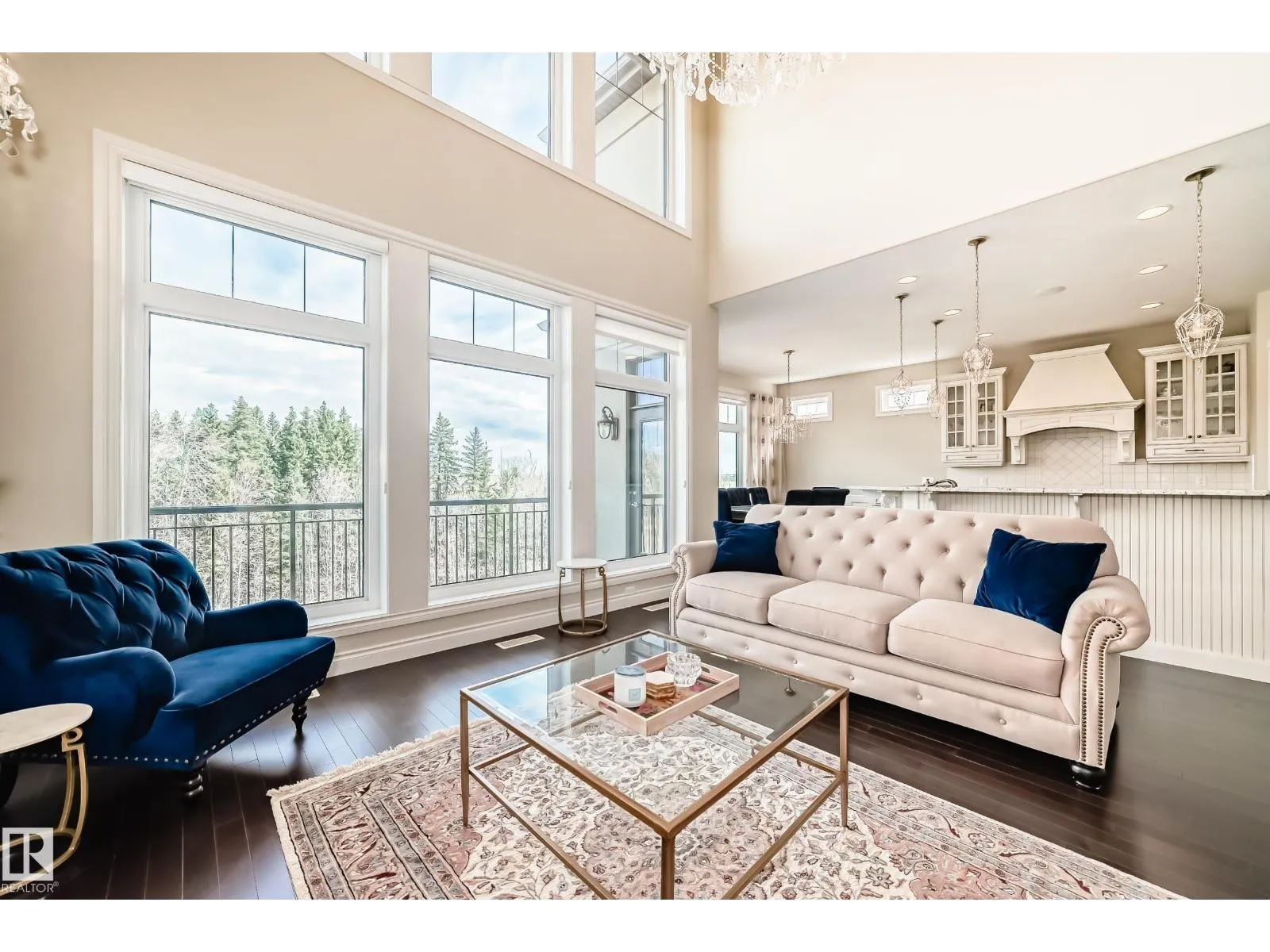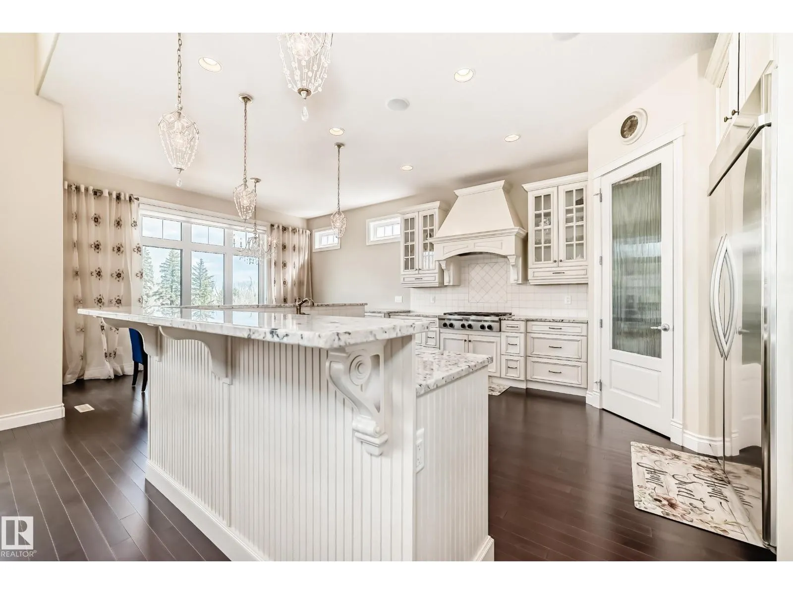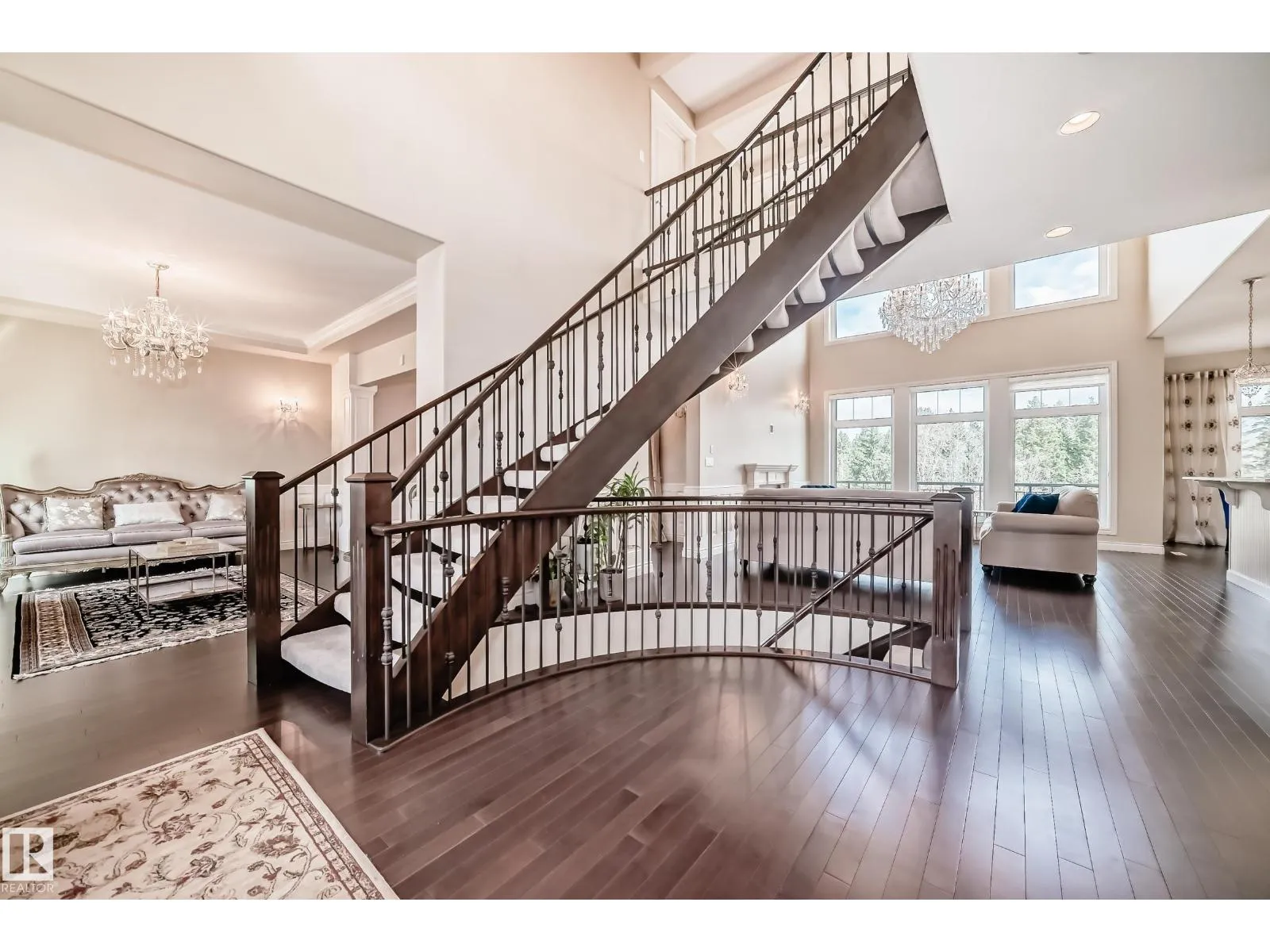 Experience refined luxury in this one-of-a-kind estate on a private walkout ravine lot in Jaguar Ridge, custom-built by Carriage Homes. This elegant residence offers 3 living areas, 3 dining areas, 4 bedrooms, 5 bathrooms, and an oversized heated triple garage. A grand entrance with 19-ft ceilings, a curved staircase, natural light, and hardwood flooring leads to a greeting room, formal dining, and an open-to-above great room. The chefâs kitchen connects to a full dining area with access to the covered deck and a dual-sided fireplace overlooking nature. The main floor includes a bedroom with a 3-pc ensuite. Upstairs features a bonus room, a spacious primary suite with private balcony, 5-pc spa ensuite, and dressing room, plus two additional bedrooms with ensuites. The walkout basement, with three entrances, 9-ft ceilings, rough-ins, and a planned two-sided fireplace, is ready for development. Stunning chandeliers and detailed wainscoting elevate this homeâs timeless elegance. Made for classy living! (id:27476)