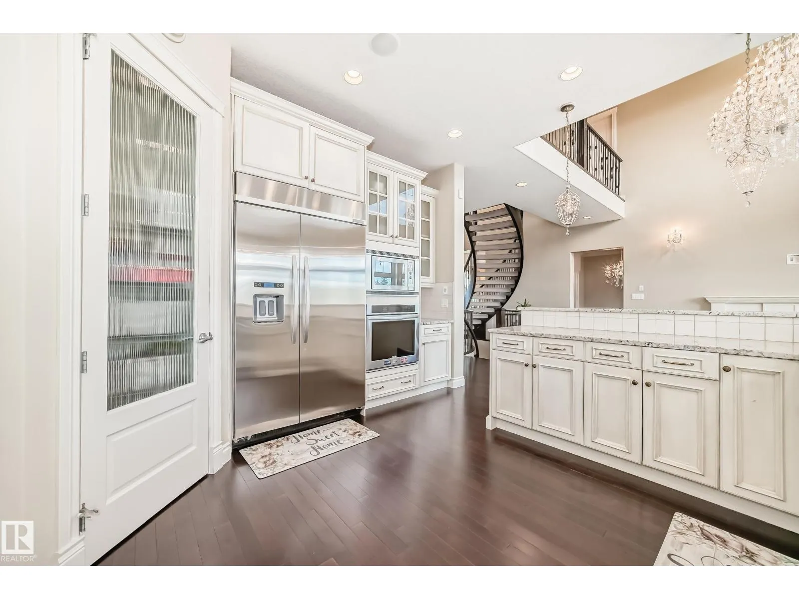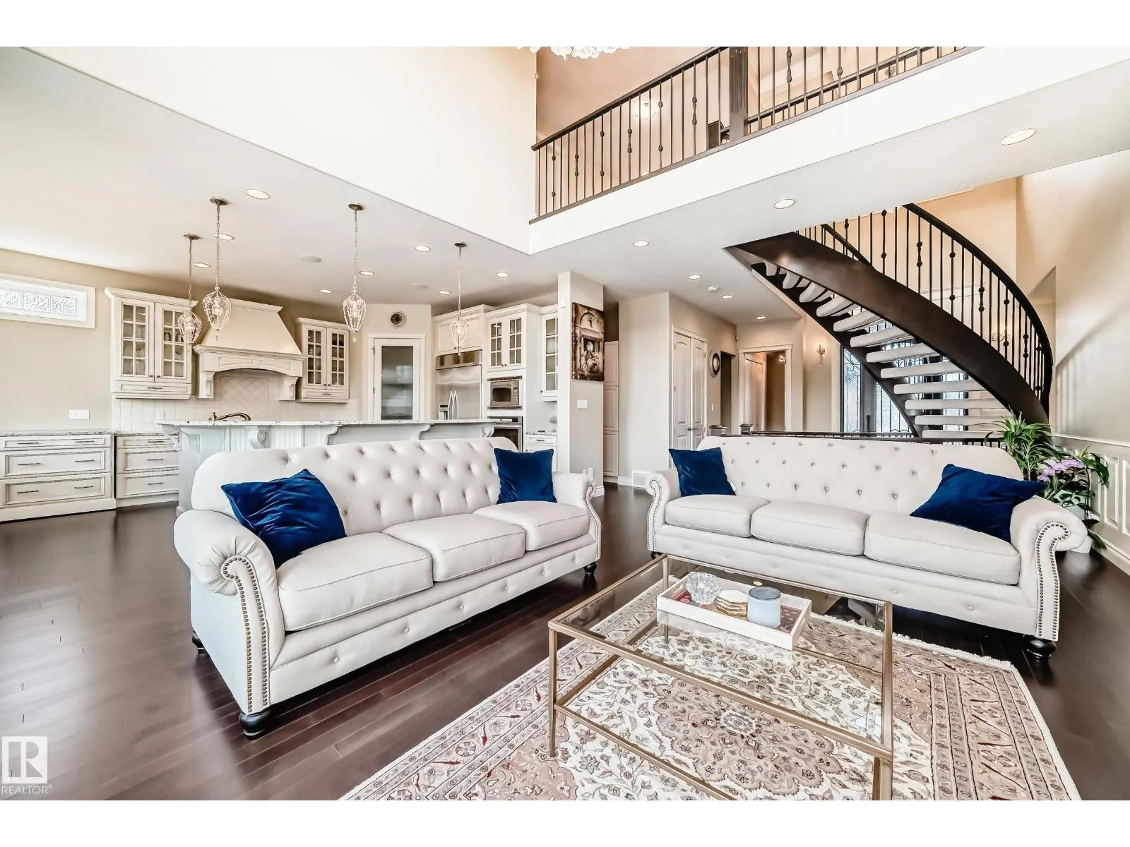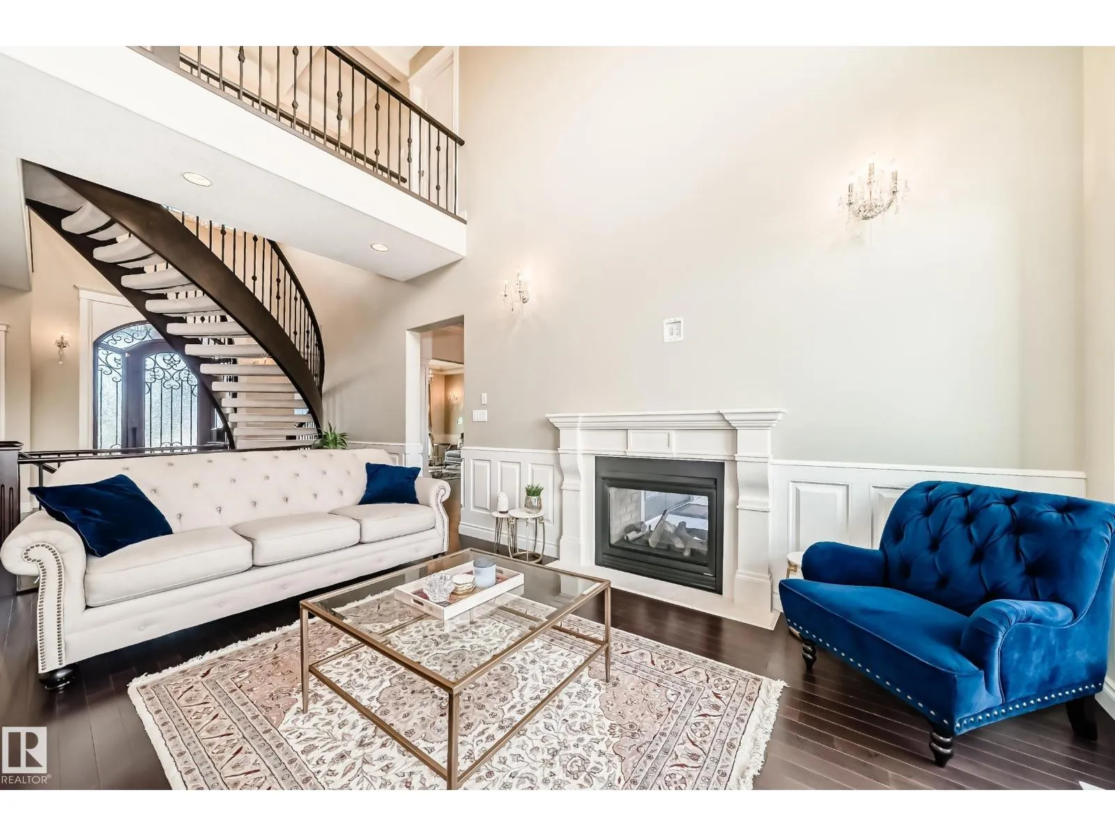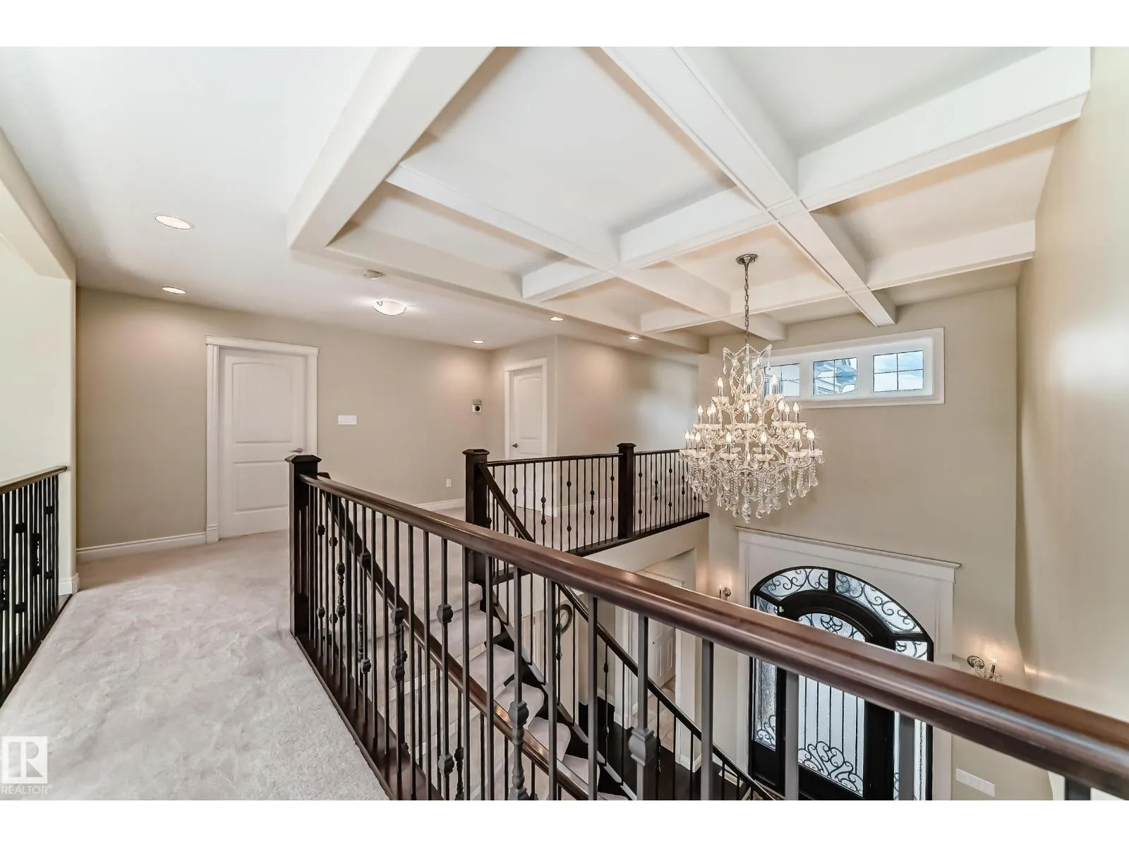 Experience refined luxury in this one-of-a-kind estate on a private walkout ravine lot in Jaguar Ridge, custom-built by Carriage Homes. This elegant residence offers 3 living areas, 3 dining areas, 4 bedrooms, 5 bathrooms, and an oversized heated triple garage. A grand entrance with 19-ft ceilings, a curved staircase, natural light, and hardwood flooring leads to a greeting room, formal dining, and an open-to-above great room. The chefâs kitchen connects to a full dining area with access to the covered deck and a dual-sided fireplace overlooking nature. The main floor includes a bedroom with a 3-pc ensuite. Upstairs features a bonus room, a spacious primary suite with private balcony, 5-pc spa ensuite, and dressing room, plus two additional bedrooms with ensuites. The walkout basement, with three entrances, 9-ft ceilings, rough-ins, and a planned two-sided fireplace, is ready for development. Stunning chandeliers and detailed wainscoting elevate this homeâs timeless elegance. Made for classy living! (id:27476)