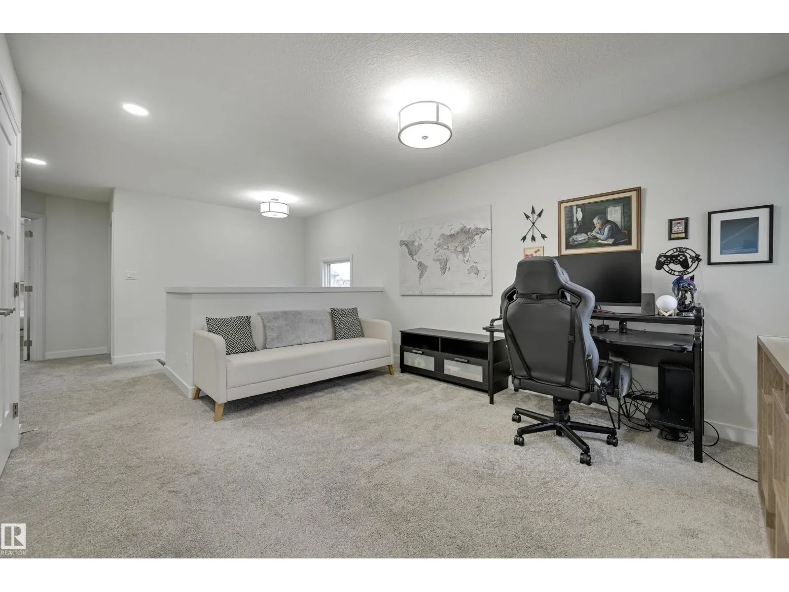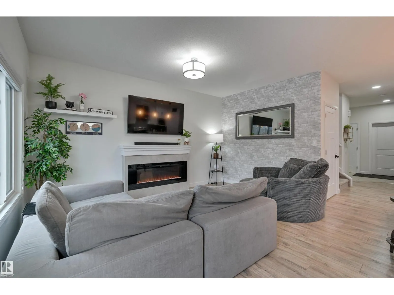 Welcome to this huge (1,830+ sqft) beautifully finished Half Duplex situated on a large lot in a quiet cul-de-sac. The main floor features a bright front den, half bath, and an impressive kitchen with quartz countertops, tile backsplash, pantry, and a large island with seatingâperfect for gatherings. The living room showcases a fireplace & a feature wall, flowing seamlessly into the spacious dining area. From here, step out onto the two-tier composite deck overlooking the fully fenced SW facing pie lot, complete with a grassed area ideal for outdoor enjoyment. Upstairs, the spacious primary bedroom includes a walk-in closet & spa like ensuite. A versatile bonus room, two additional bedrooms, a 4 pc bathroom, & laundry offer comfort & convenience for the whole family. The fully finished basement (with separate entrance) adds even more living space with a large family room, a fourth bedroom, and 3 pc bath. Attached garage with epoxy floor & AC included! Move in ready! (id:27476)