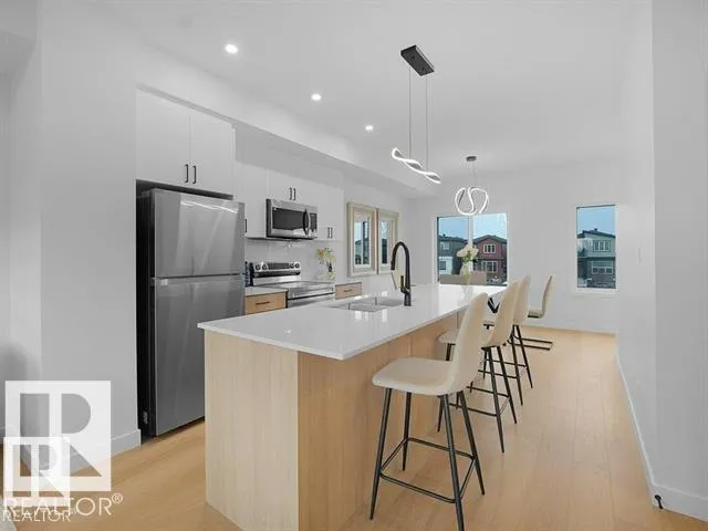 Modern multi-level townhome in Juniper at Arbours of Keswick! The entry level features a bright flex/den space with access to a private cement patio plus an attached double garage off the back lane. The main living floor offers an open-concept layout with a chef-inspired kitchen, spacious dining & living areas, powder room, and a balcony perfect for relaxing. Upstairs, enjoy a private primary bedroom with walk-in closet & ensuite, plus two additional bedrooms and a full bath. All landscaping is professionally completed, including walkways, driveways, lawns, and fencing. Located minutes from Movati, river valley trails, top schools, parks, and quick access to Anthony Henday. A stylish, low-maintenance home ideal for first-time buyers or investors seeking value, location, and convenience. (id:27476)