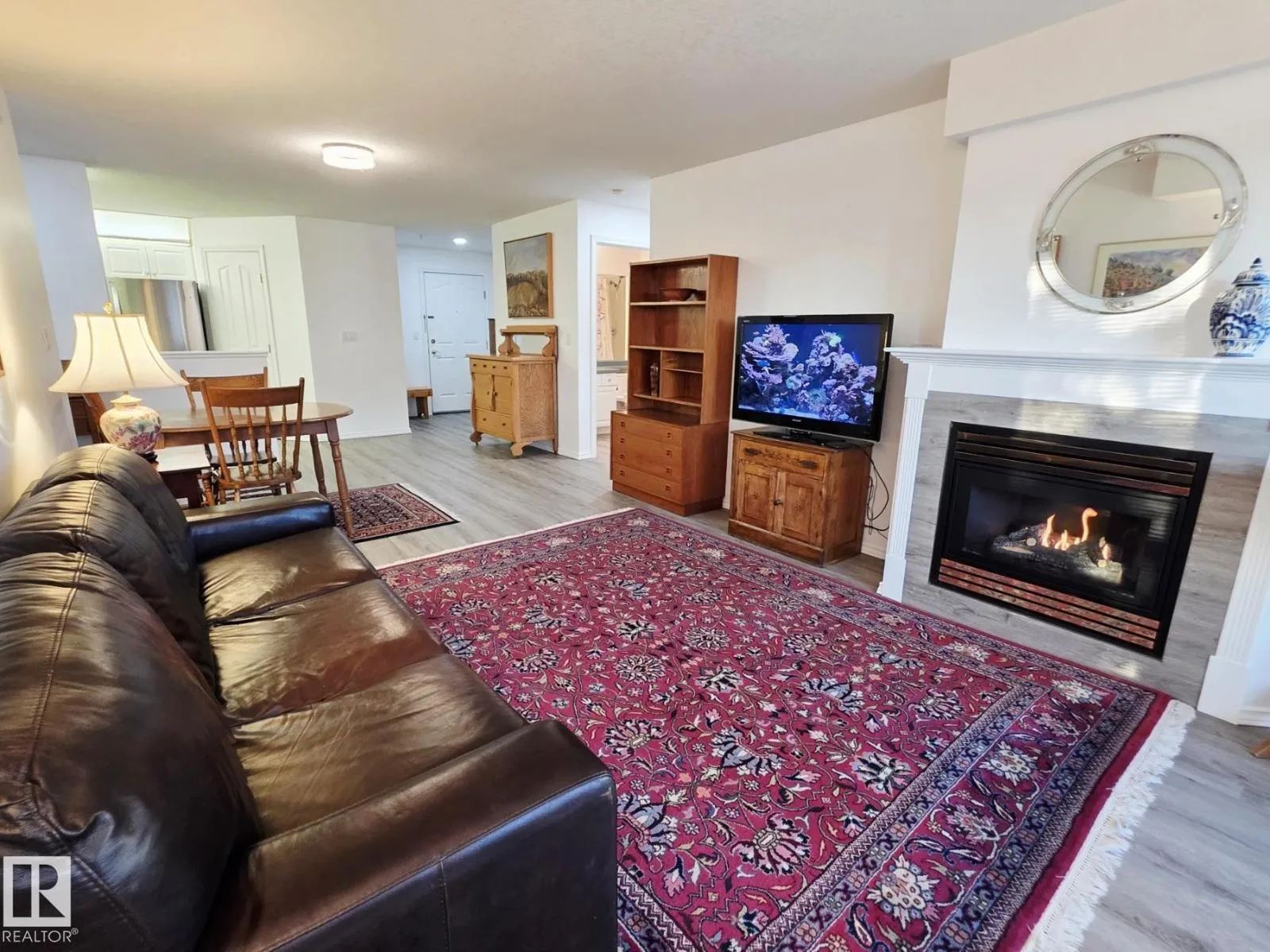 Welcome to Wolf Willow Manor! This inviting 2 bedroom, 2 bathroom condo in a sought-after 55+ community offers comfort, style, and convenience. Ideally situated on the 3rd floor with sunny south exposure, it features a refreshed kitchen with bright white cabinets, brand-new vinyl plank flooring, new high end fridge and an open-concept living and dining area with a cozy gas fireplace. The spacious primary suite includes his & hers closets and a private ensuite. Enjoy outdoor living on your large balcony with natural gas hookup for BBQs. Added perks include in-suite laundry and storage, plus a heated underground parking stall with storage cage, located just steps from the elevator. Residents enjoy a vibrant lifestyle with access to a social hall, fitness room, library, workshop, car wash, and pool tables. Perfectly located near shopping, medical offices, the Farmers Market, YMCA, and public transit â this is maintenance-free living at its best! (id:27476)