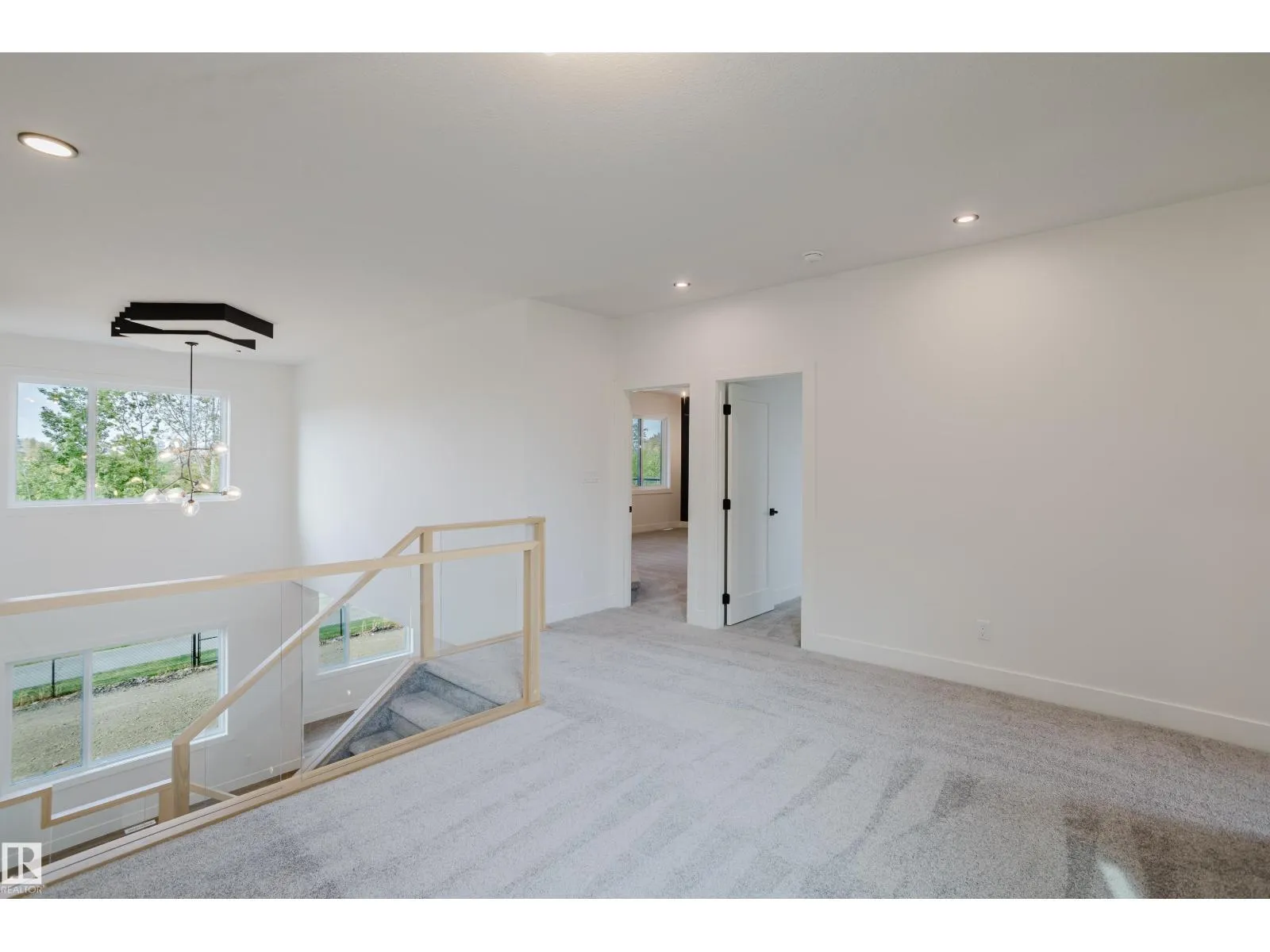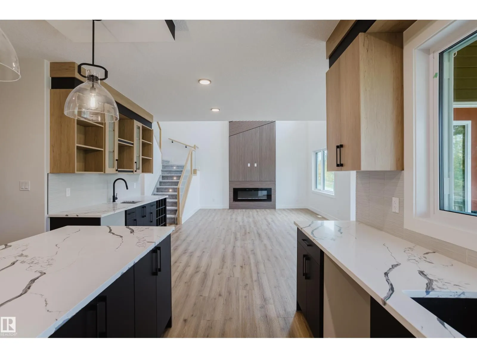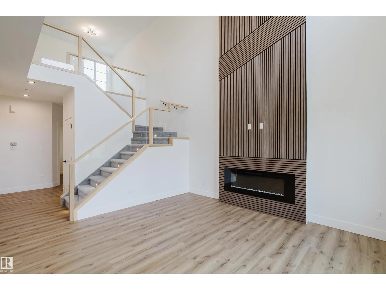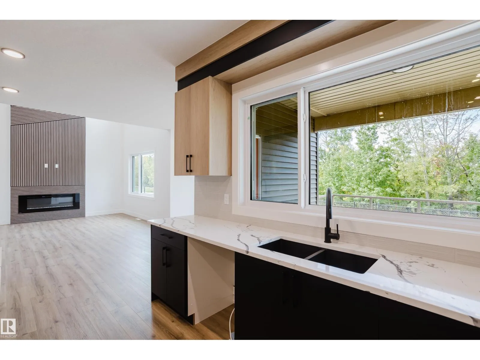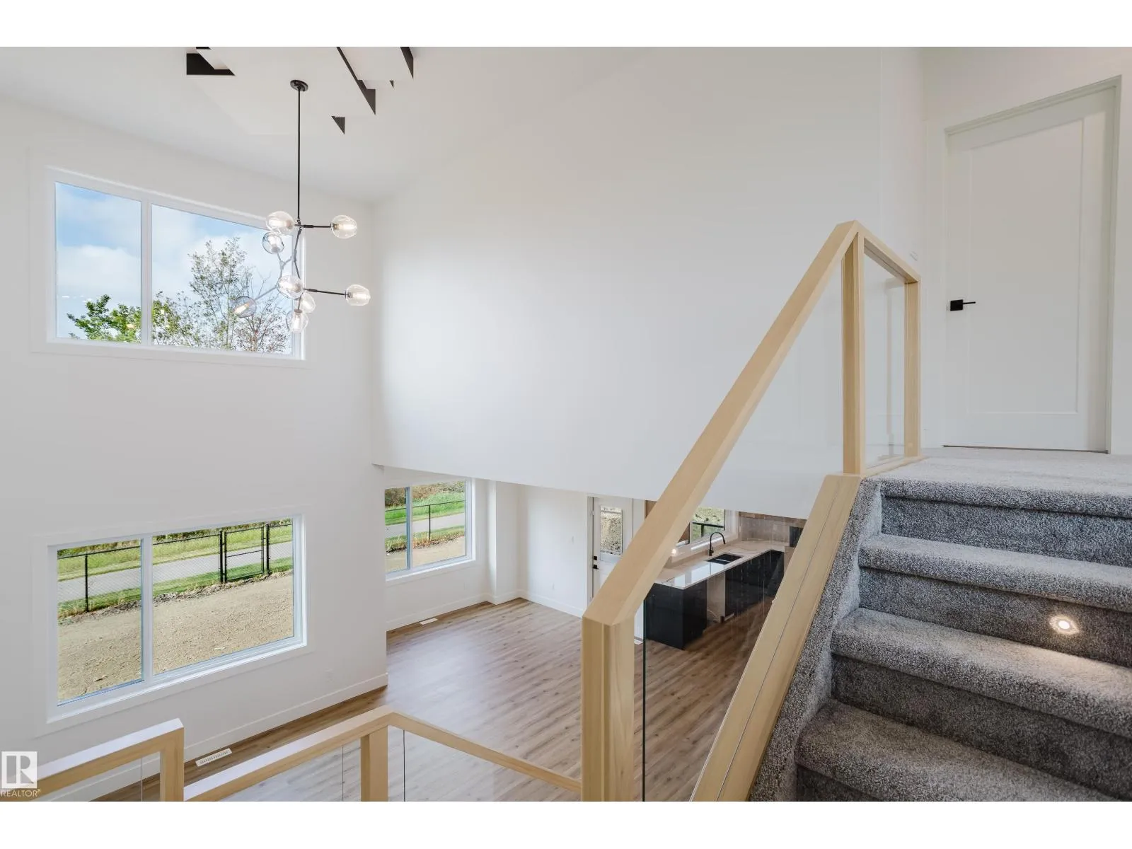 Step into exceptional living with this beautifully crafted triple car garage home in The Uplands, one of Edmontonâs most sought-after communities. Designed to impress with its modern elegance and thoughtful layout, this residence backs onto a lush ravine, offering peaceful views and a private outdoor escape with a covered deck and upper balconyâperfect for relaxing or entertaining. Inside, the open-to-below living room with a striking fireplace creates a dramatic focal point, while the wrap-around kitchen boasts premium finishes, ample cabinetry, and a layout ideal for hosting. A stylish wet bar adds a touch of luxury and convenience. A full bathroom on the main floor enhances functionality, and the upper level features a spacious bedroom retreat, a versatile bonus room, and a laundry room with built-in cabinets for added storage. Sleek glass railings and illuminated step lights elevate the contemporary feel throughout. With a side entrance to the basement, this home offers flexibility for future use. (id:27476)