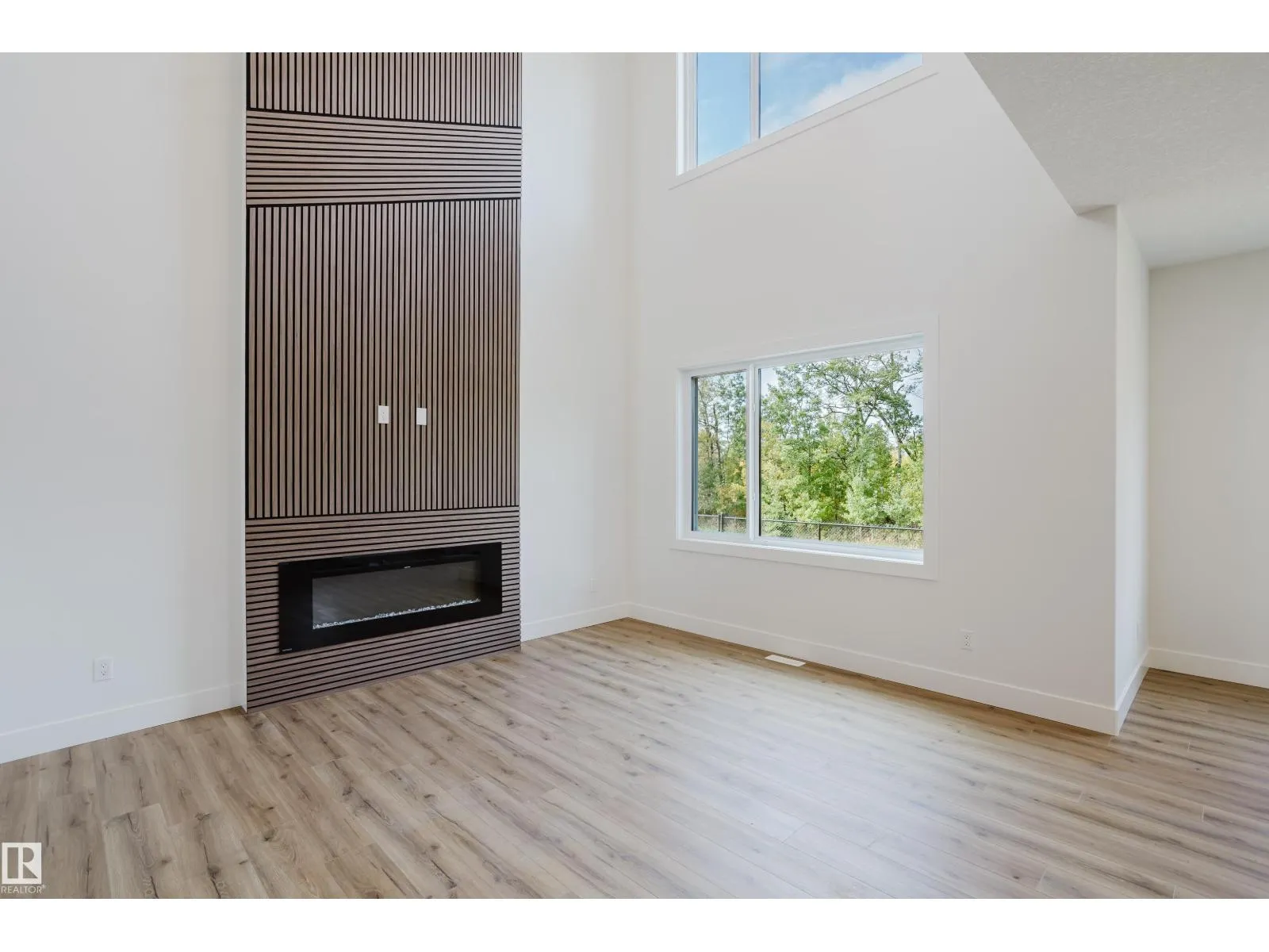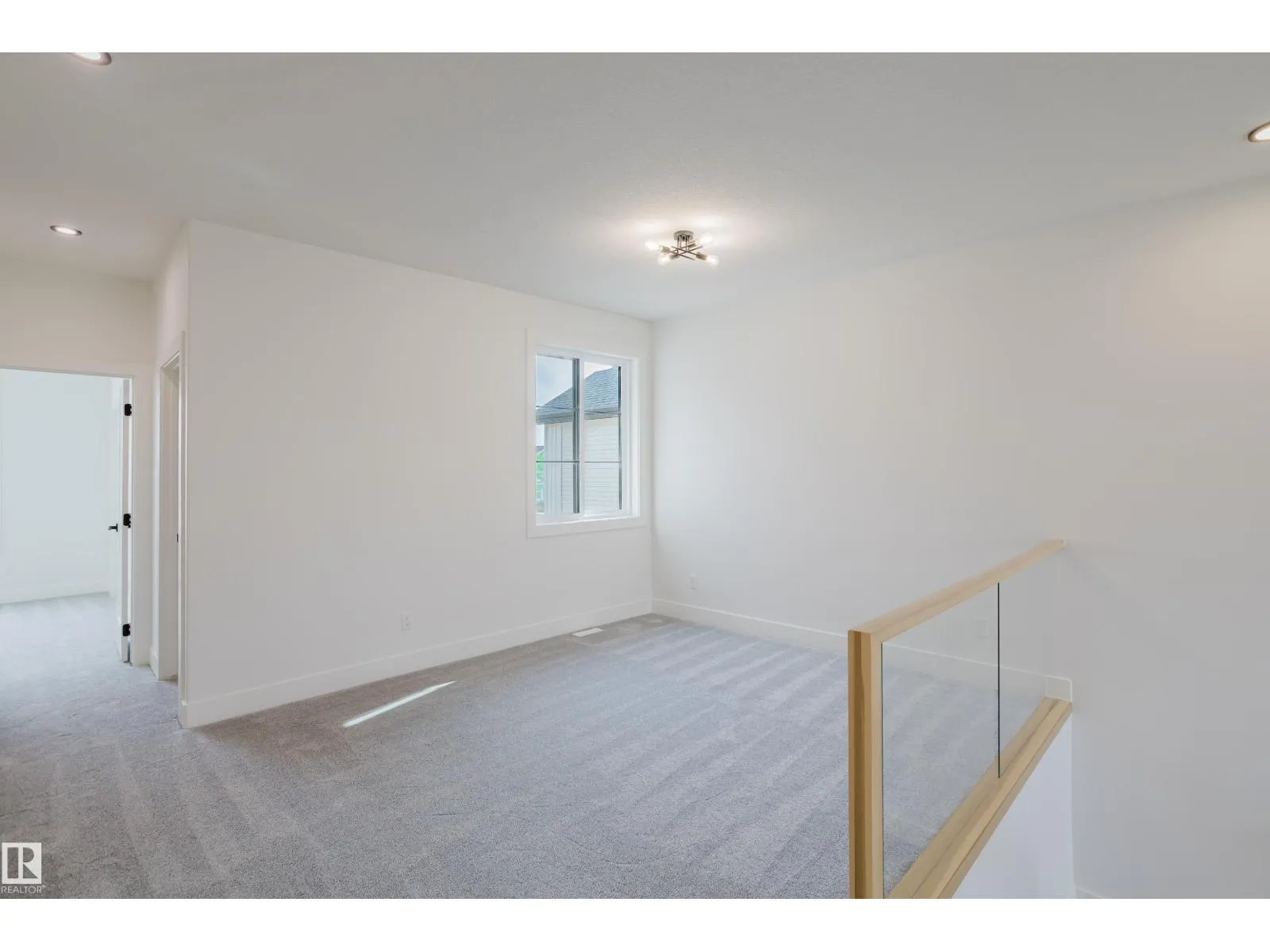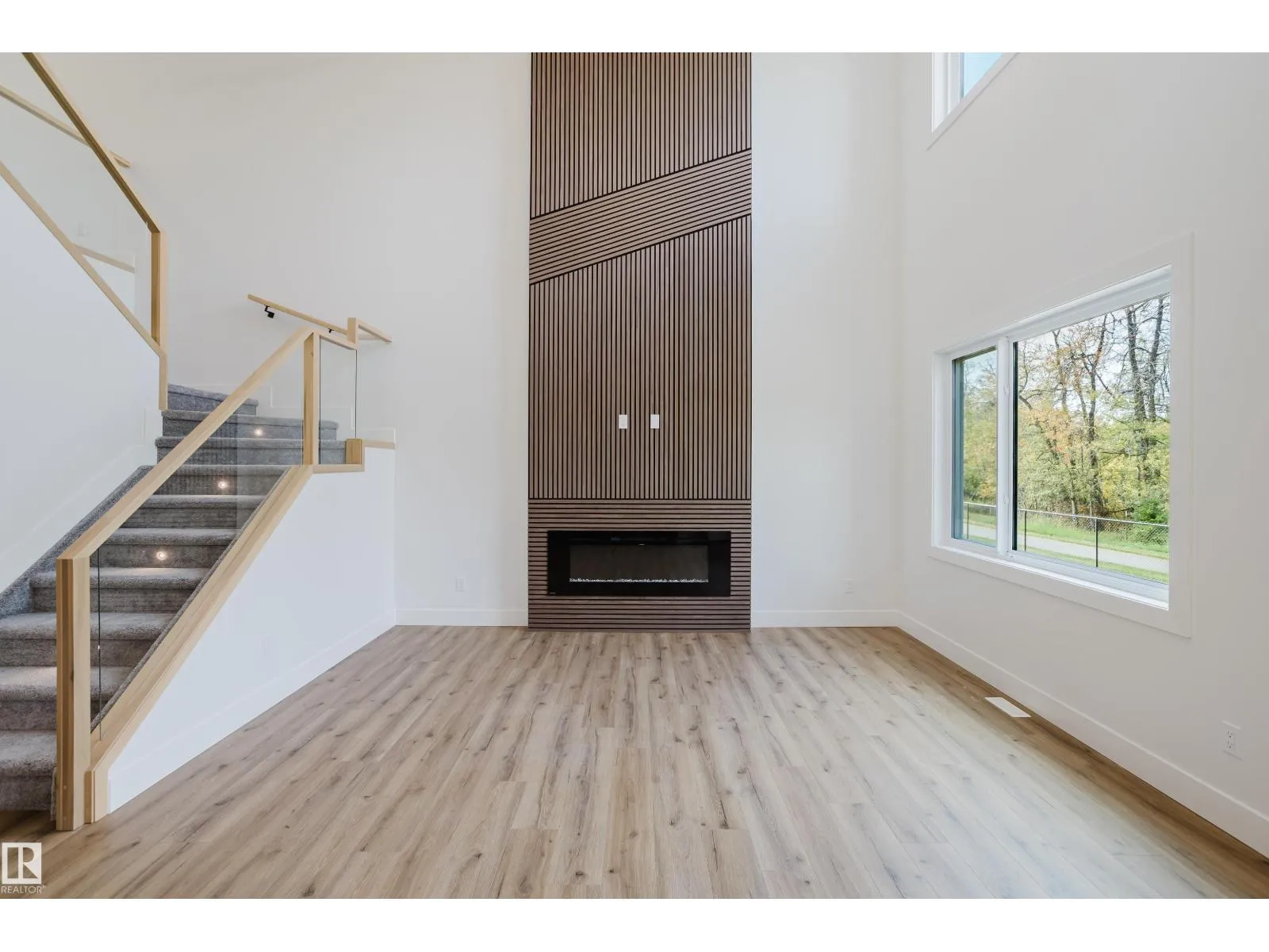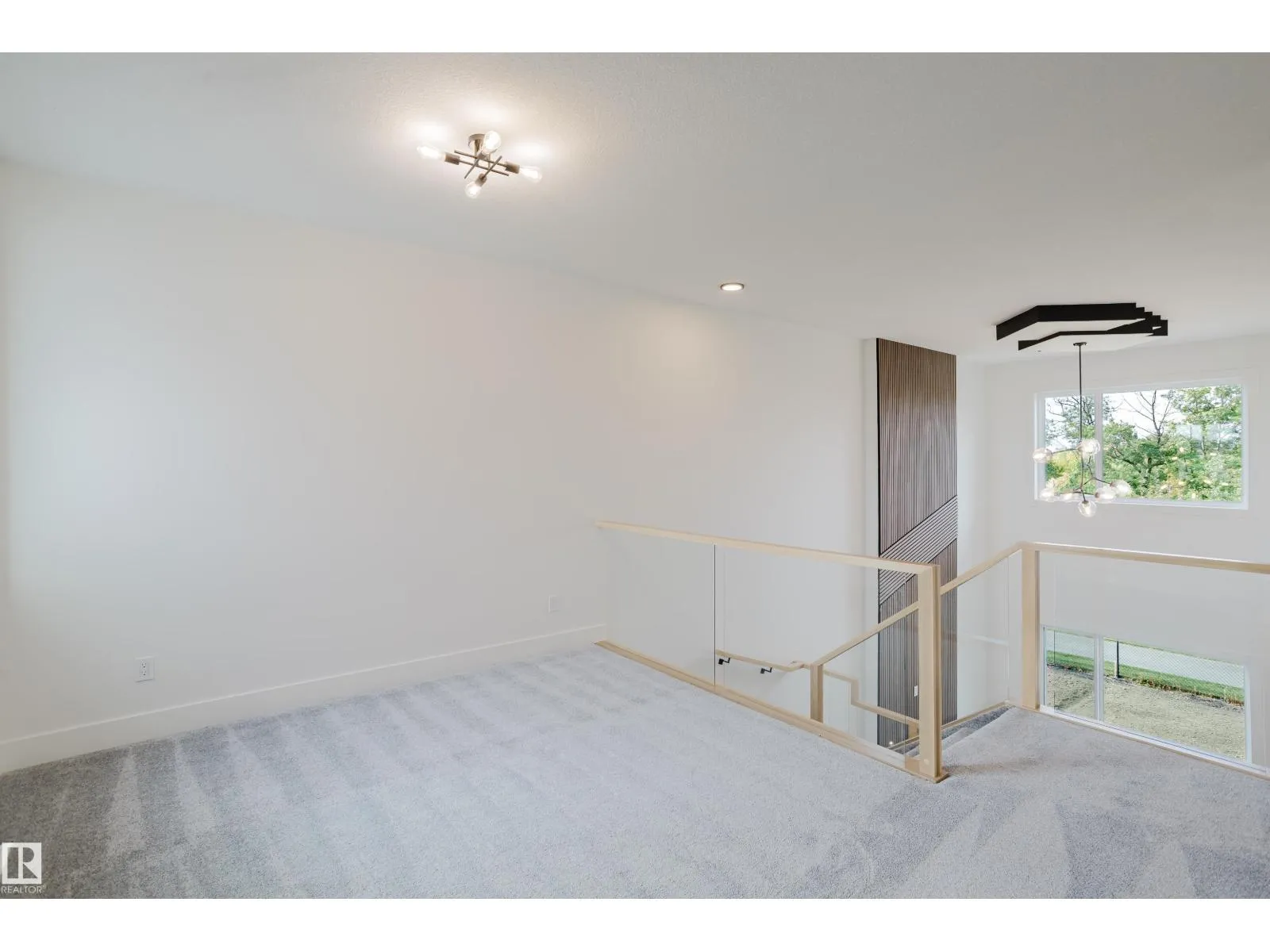 Step into exceptional living with this beautifully crafted triple car garage home in The Uplands, one of Edmontonâs most sought-after communities. Designed to impress with its modern elegance and thoughtful layout, this residence backs onto a lush ravine, offering peaceful views and a private outdoor escape with a covered deck and upper balconyâperfect for relaxing or entertaining. Inside, the open-to-below living room with a striking fireplace creates a dramatic focal point, while the wrap-around kitchen boasts premium finishes, ample cabinetry, and a layout ideal for hosting. A stylish wet bar adds a touch of luxury and convenience. A full bathroom on the main floor enhances functionality, and the upper level features a spacious bedroom retreat, a versatile bonus room, and a laundry room with built-in cabinets for added storage. Sleek glass railings and illuminated step lights elevate the contemporary feel throughout. With a side entrance to the basement, this home offers flexibility for future use. (id:27476)