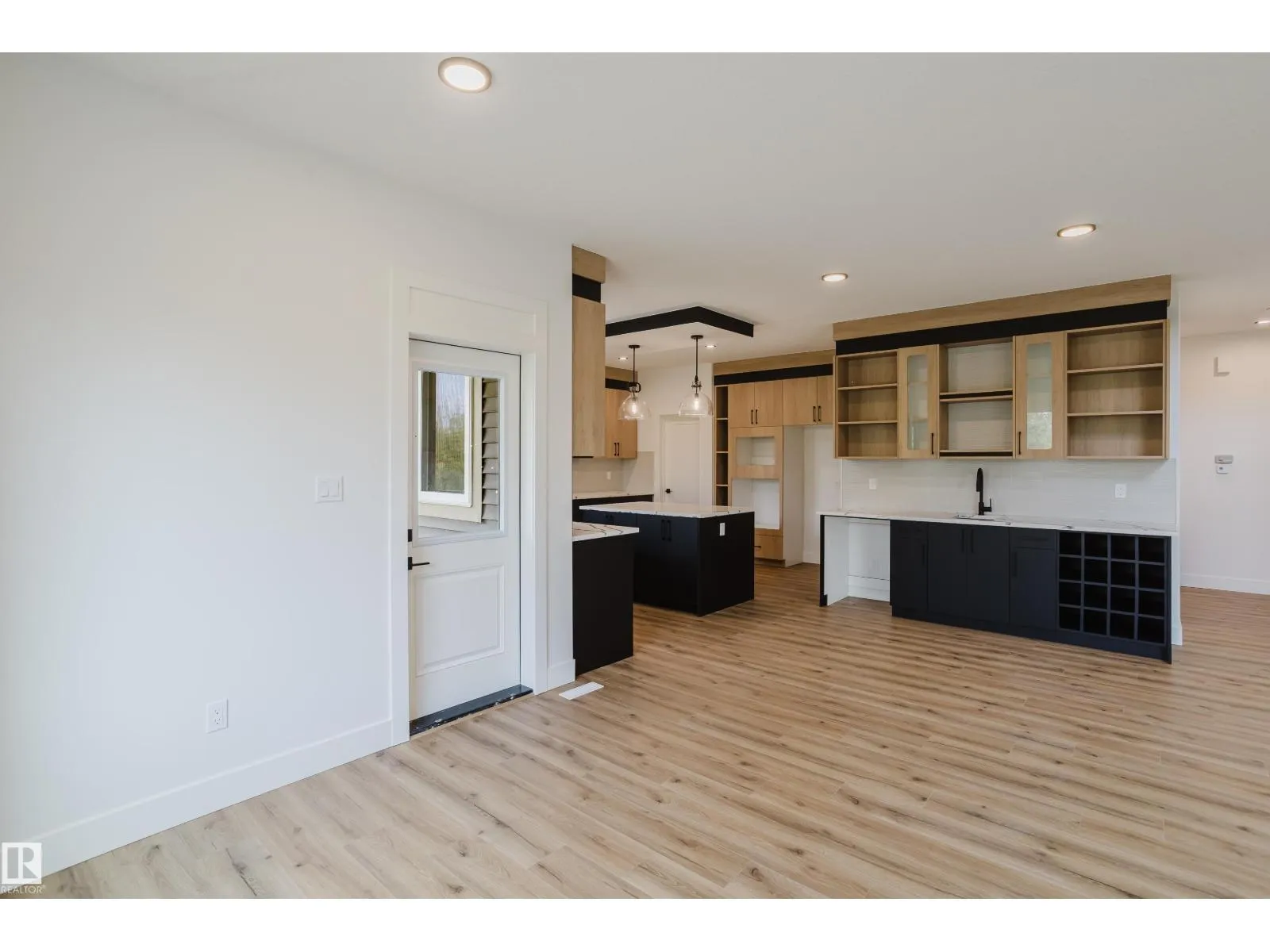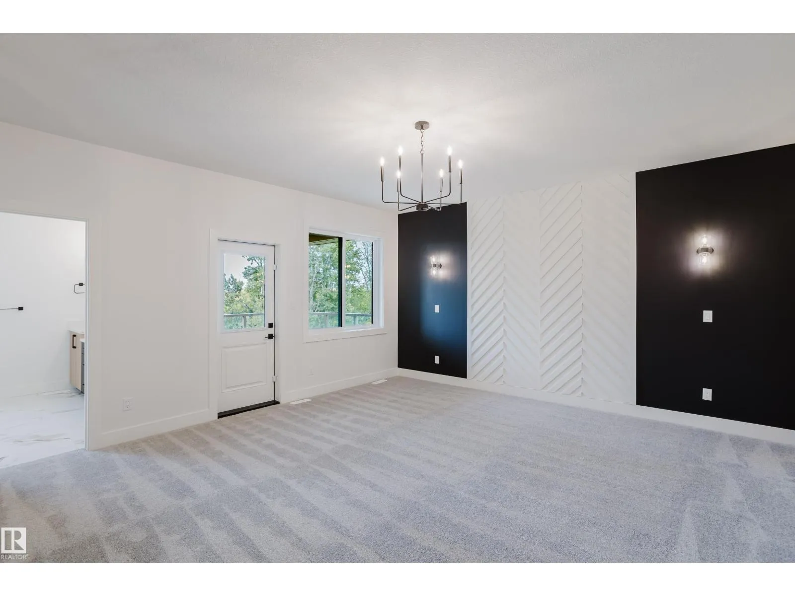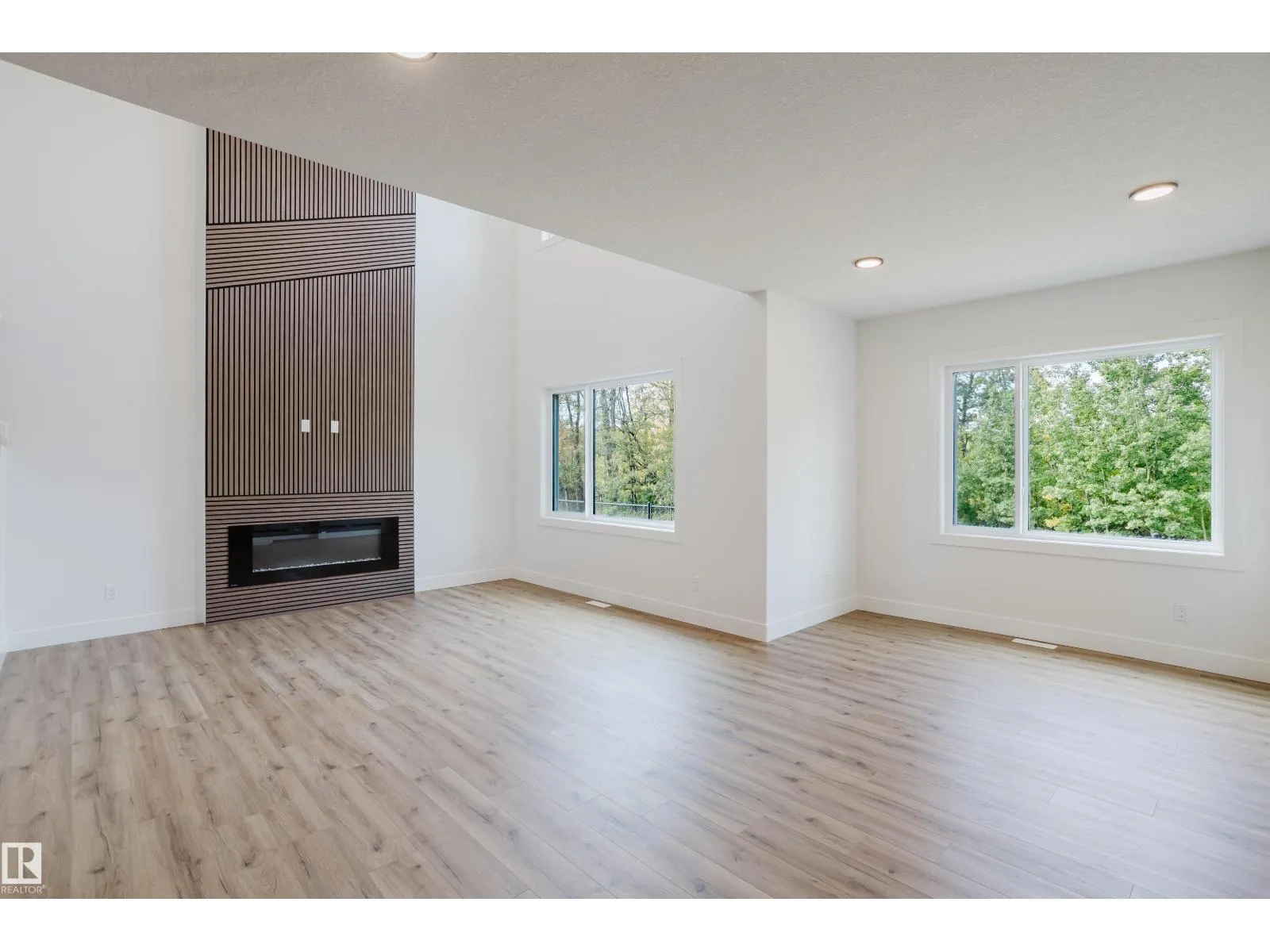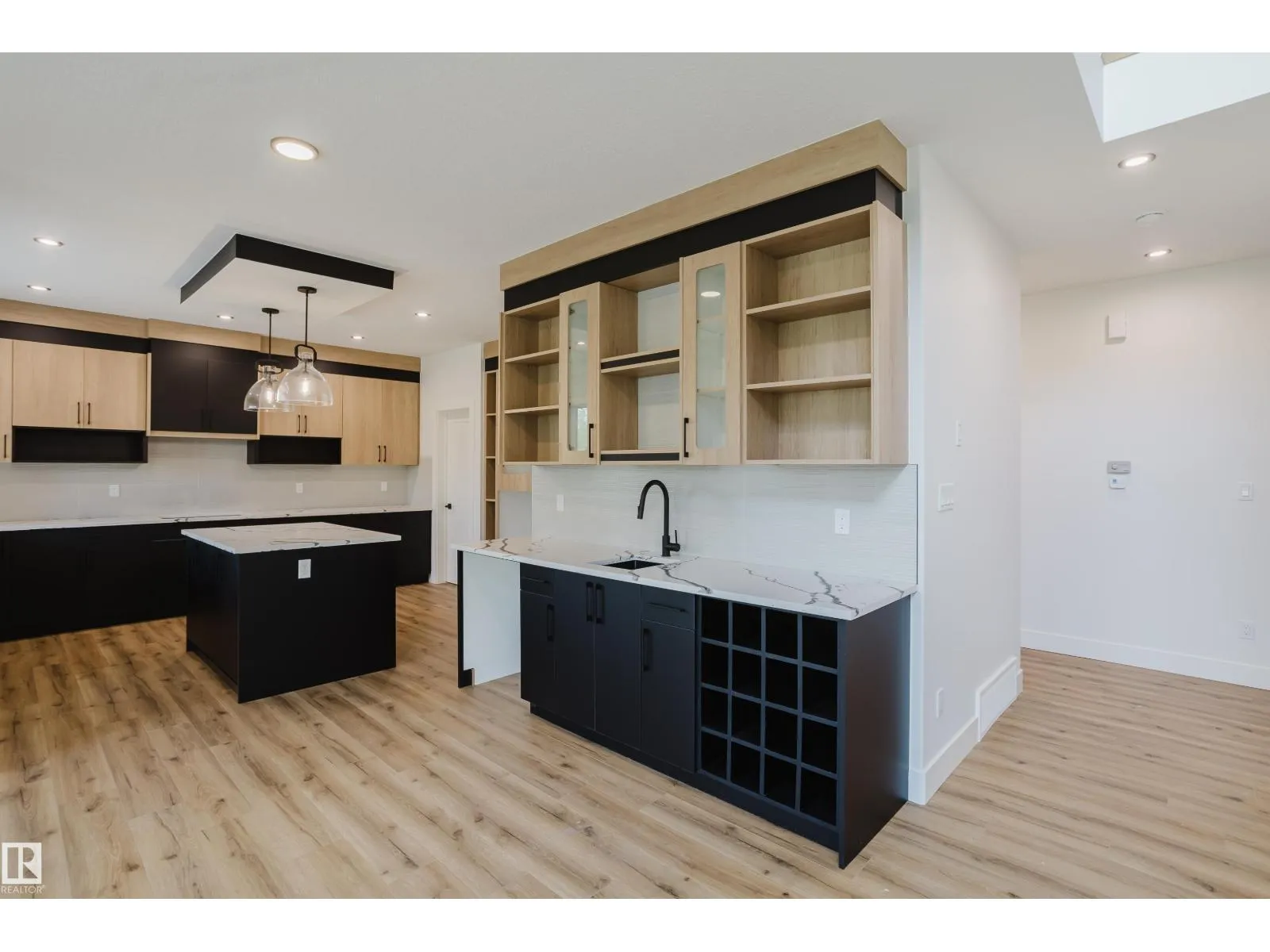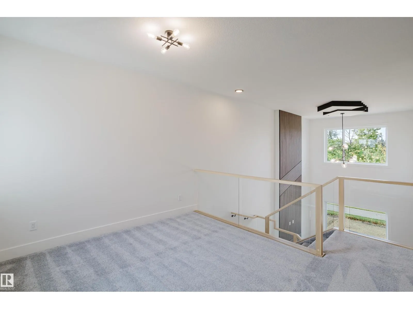 Step into exceptional living with this beautifully crafted triple car garage home in The Uplands, one of Edmontonâs most sought-after communities. Designed to impress with its modern elegance and thoughtful layout, this residence backs onto a lush ravine, offering peaceful views and a private outdoor escape with a covered deck and upper balconyâperfect for relaxing or entertaining. Inside, the open-to-below living room with a striking fireplace creates a dramatic focal point, while the wrap-around kitchen boasts premium finishes, ample cabinetry, and a layout ideal for hosting. A stylish wet bar adds a touch of luxury and convenience. A full bathroom on the main floor enhances functionality, and the upper level features a spacious bedroom retreat, a versatile bonus room, and a laundry room with built-in cabinets for added storage. Sleek glass railings and illuminated step lights elevate the contemporary feel throughout. With a side entrance to the basement, this home offers flexibility for future use. (id:27476)