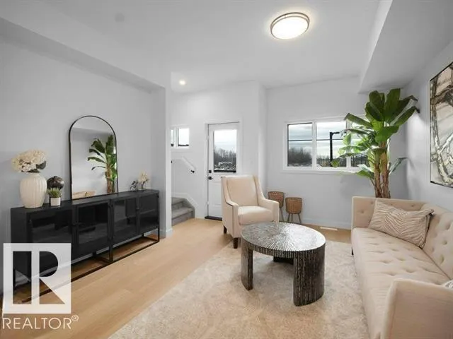 Modern multi-level townhome in Juniper at Arbours of Keswick! The entry level features a bright flex/den space with access to a private cement patio plus an attached double garage off the back lane. The main living floor offers an open-concept layout with a chef-inspired kitchen, spacious dining & living areas, powder room, and a balcony perfect for relaxing. Upstairs, enjoy a private primary bedroom with walk-in closet & ensuite, plus two additional bedrooms and a full bath. All landscaping is professionally completed, including walkways, driveways, lawns, and fencing. Located minutes from Movati, river valley trails, top schools, parks, and quick access to Anthony Henday. A stylish, low-maintenance home ideal for first-time buyers or investors seeking value, location, and convenience. (id:27476)