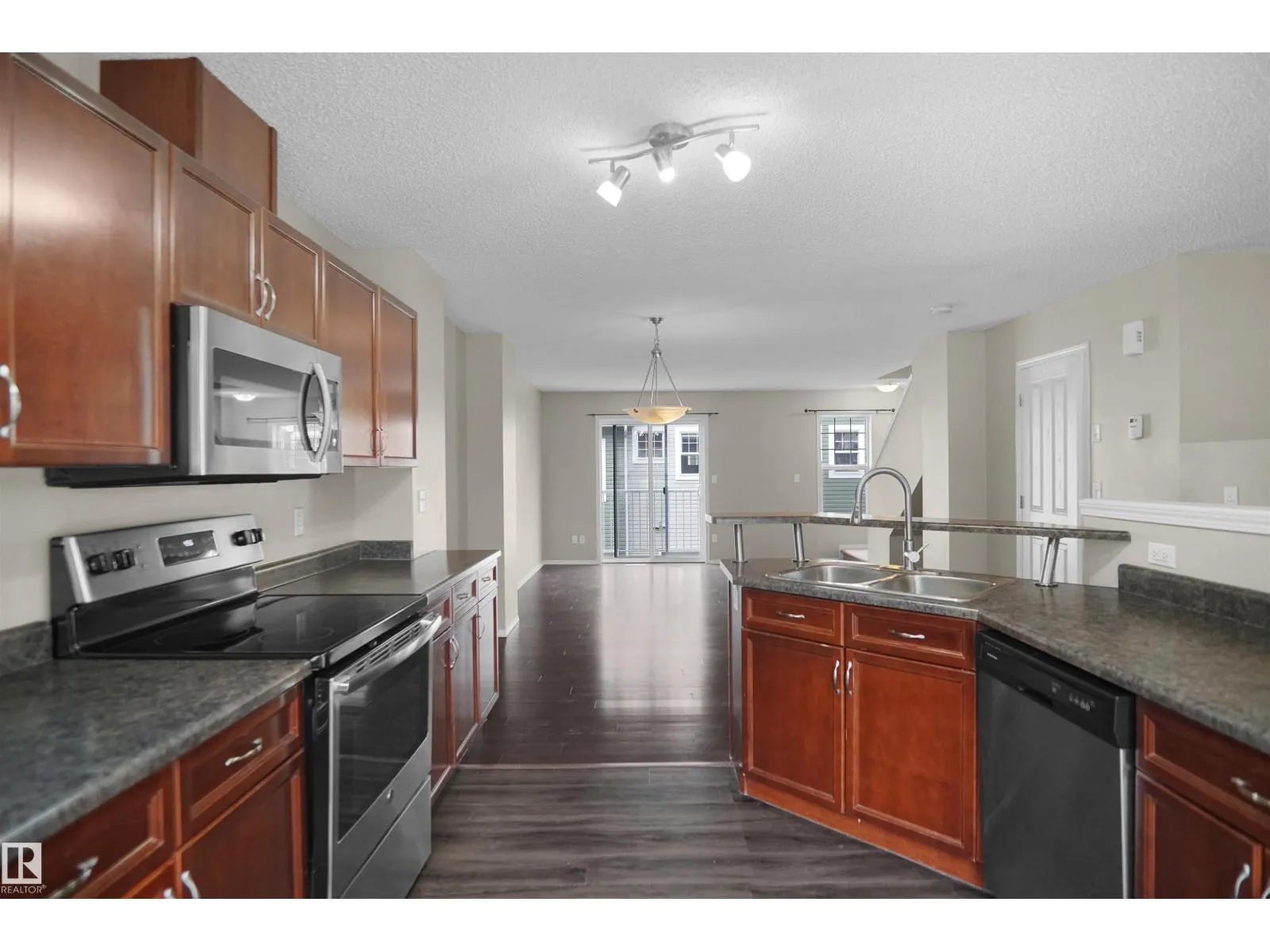 Welcome to this beautiful 2-storey condo in Mosaic Parkland, located in the desirable Hamptonsâclose to the West Edmonton Mall! This move-in ready home features an open-concept layout, dark laminate flooring, a modern kitchen with stainless steel appliances, and a raised eating bar. Enjoy a spacious living/dining area with balcony access, plus a main floor powder room. Upstairs youâll find 2 large primary bedrooms, each with walk-in closets and full ensuites, plus a cozy den/office spaceâideal for working from home or guests. Other perks include: double attached garage (insulated & drywalled), private yard for summer BBQs, central A/C, and steps to visitor parking. Walk to grocery stores, banks, restaurants & more. Easy access to Anthony Henday. A smart buy for living or renting! (id:27476)