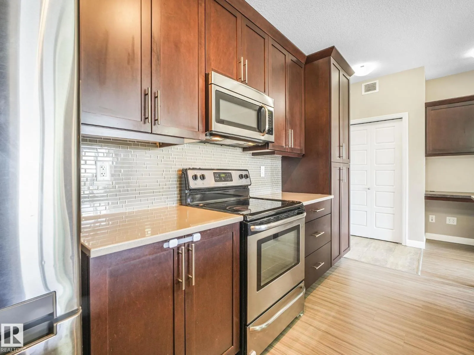 INVESTOR ALERT! Incredible top floor opportunity, ideally located in one of the city's most desirable communities of Ambleside. *NEW CARPET AND PAINT** This 811 sqft top floor unit features 2 BEDROOMS, 2 FULL BATHROOMS, 2 TITLED parking stalls, in-suite laundry & balcony! Step inside to an open-concept floor plan that features a bright and spacious living area, perfect for entertaining or relaxing. The modern kitchen comes equipped with stainless steel appliances, ample cabinetry, and a breakfast bar that flows seamlessly into the dining and living space. The primary bedroom boasts a large closet and a private 4-piece ensuite. A generously sized second bedroom is positioned on the opposite side of the unit for added privacy, along with an additional full bathroomâideal for guests or roommates. Amenities include a gym, party room, BBQ area and guest suite. Just steps away restaurants, shopping, movie theatre, medical centers, schools & public transportation. *Some photos have been virtually staged. (id:27476)