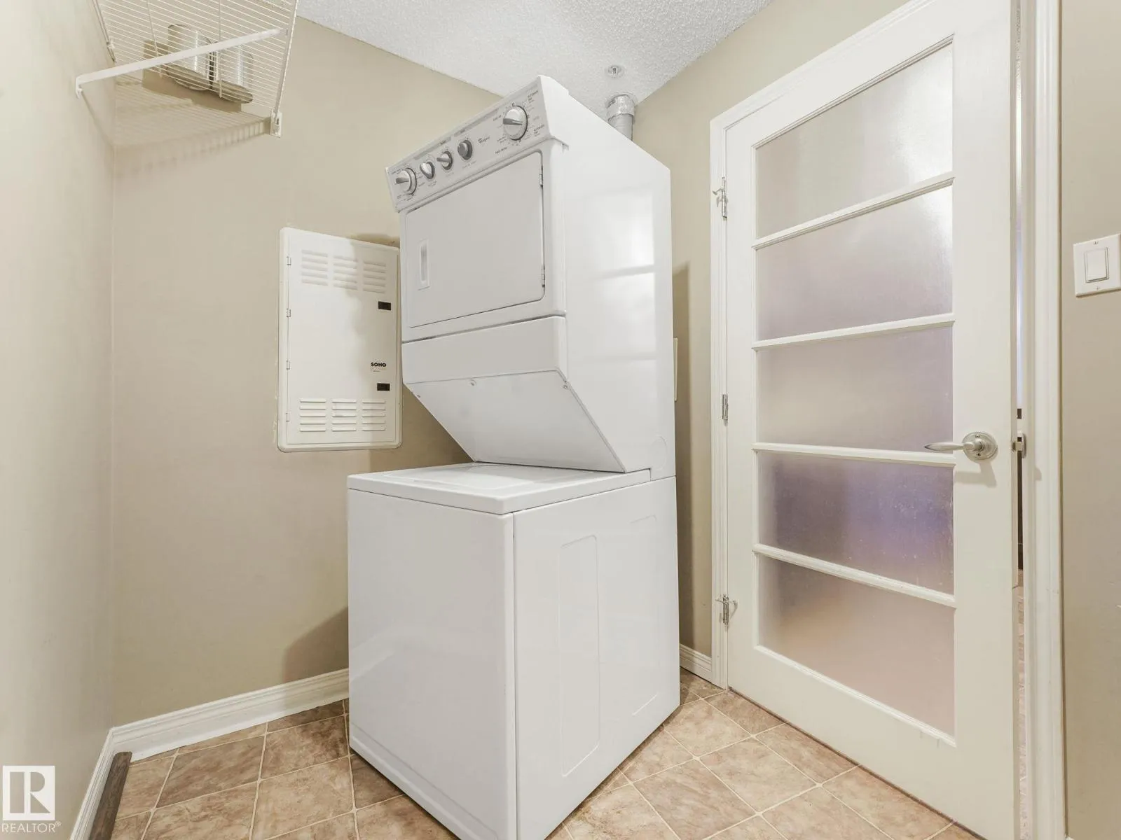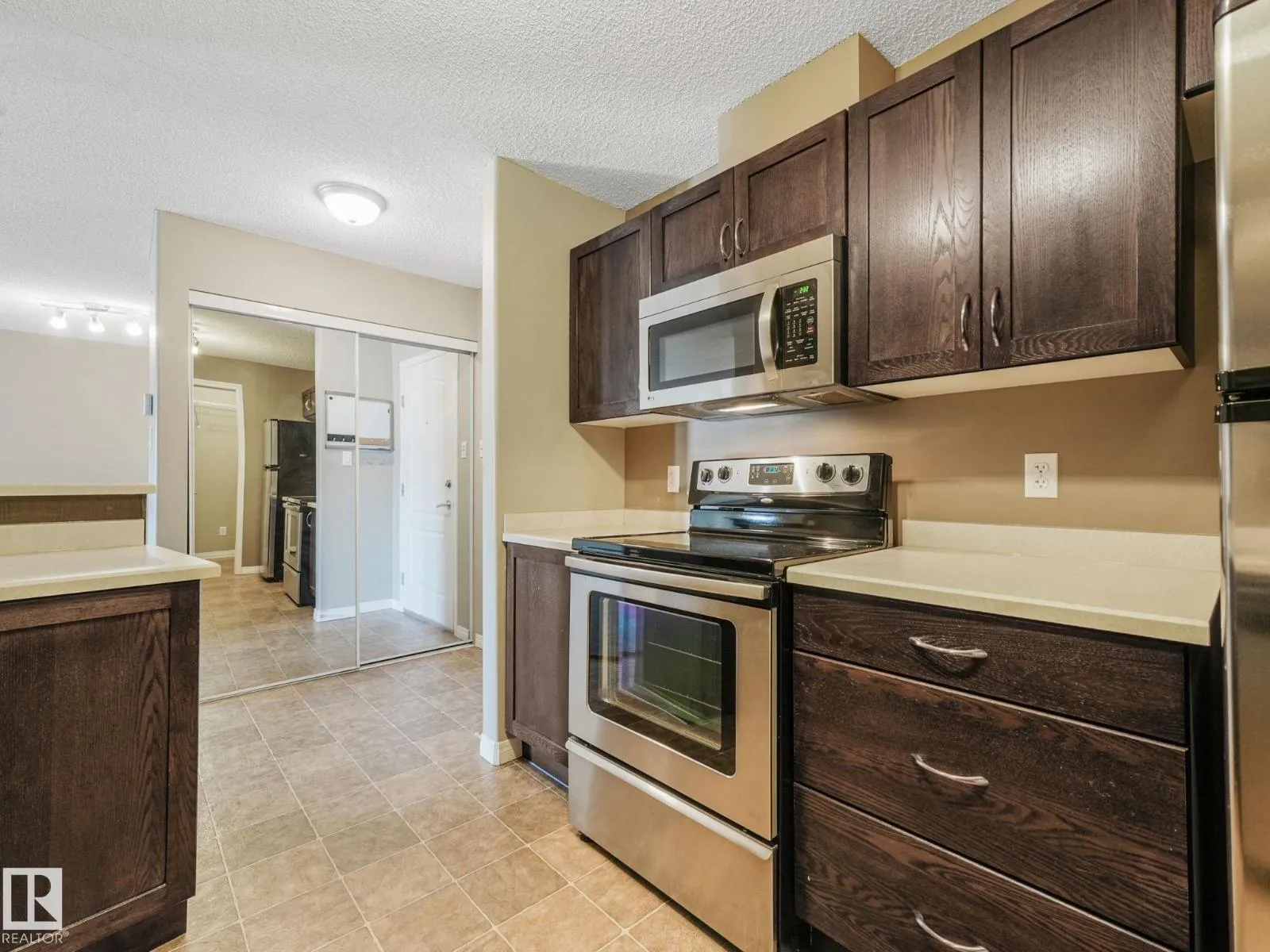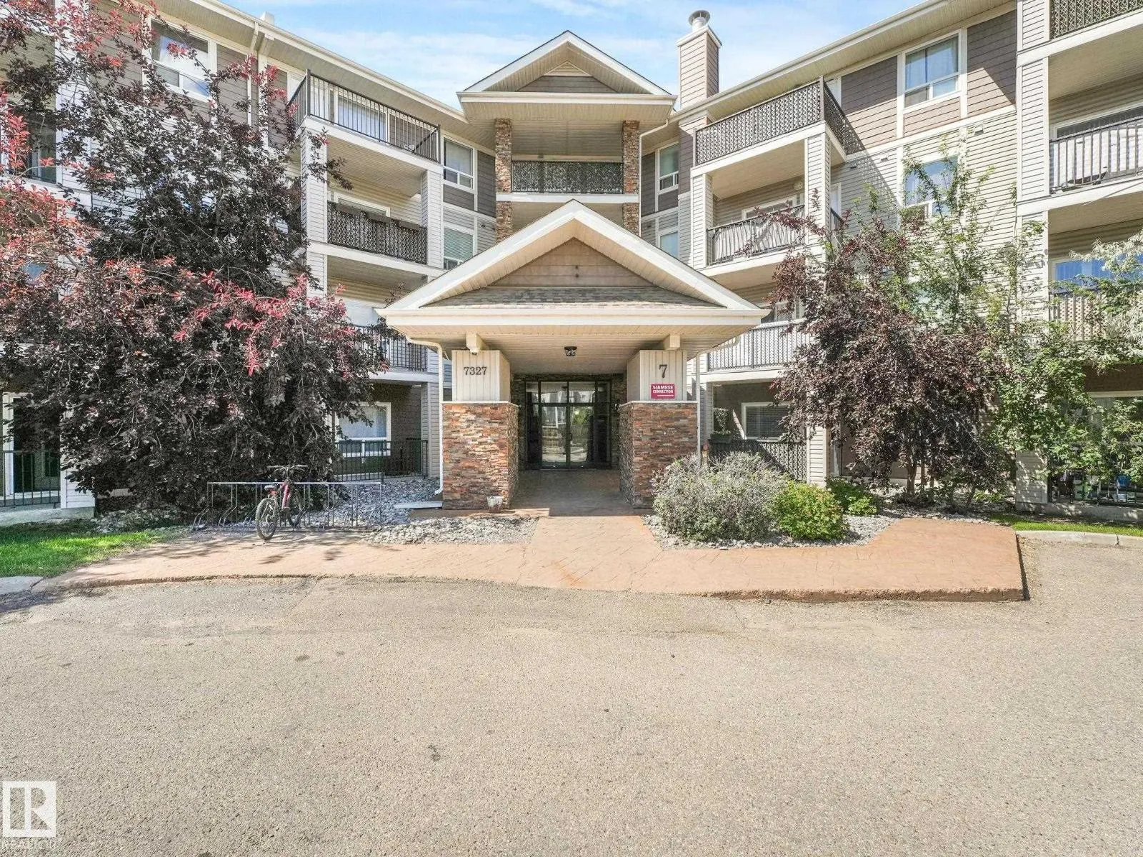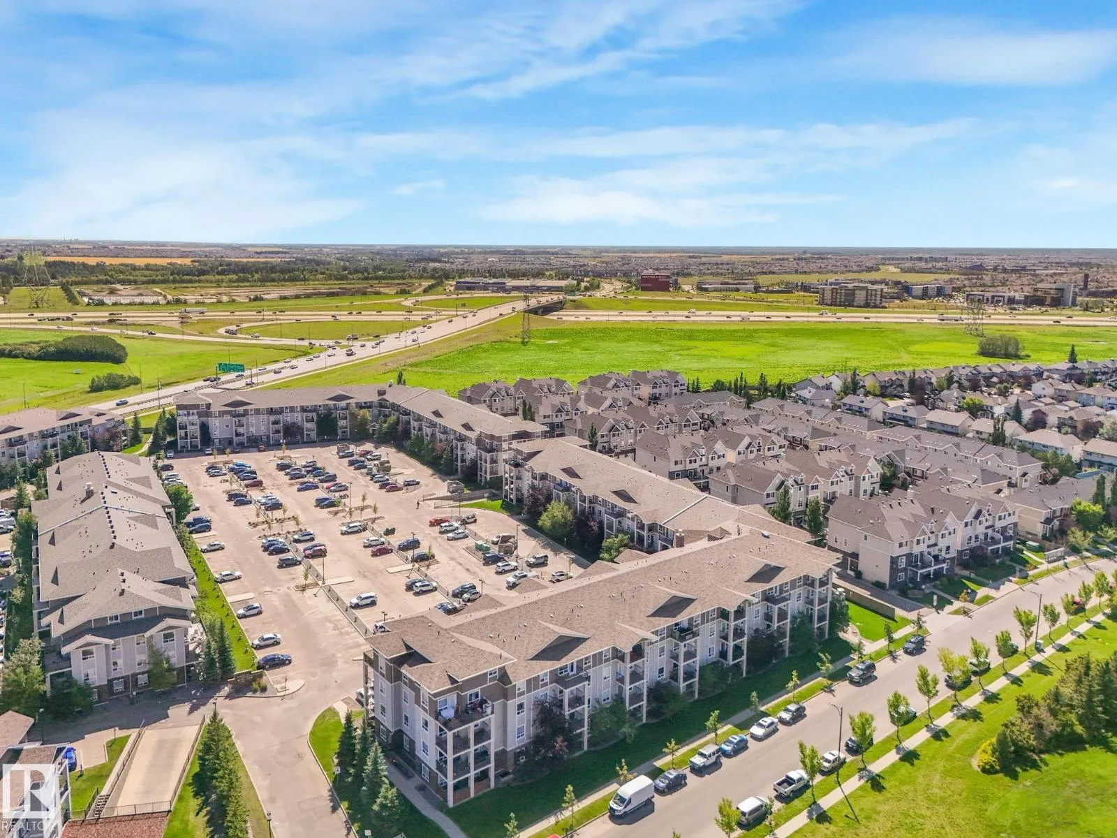 Welcome to this stunning condo in South Terwillegar!This spacious unit is larger then some two bedroom condos with only one neighbor! & has loads of upgrades.The designer kitchen has upgraded dark espresso cabinets,cream counters & stainless steel appliances.The dining room is big enough for a six person table & has an open concept into the living room.The large living area is bright with plenty of natural light & has a patio door that leads to the over sized corner balcony.The master bedroom is a great size with wall to wall closets.This home also features a 4pc bath,storage area with in suite laundry & TWO PARKING STALLS(one underground right beside elevator and no one next to you!,one surface stall).This unit is close to shopping,public transportation, Anthony Henday & the new recreation center.It shows a 10 out of 10--A must see! (id:27476)