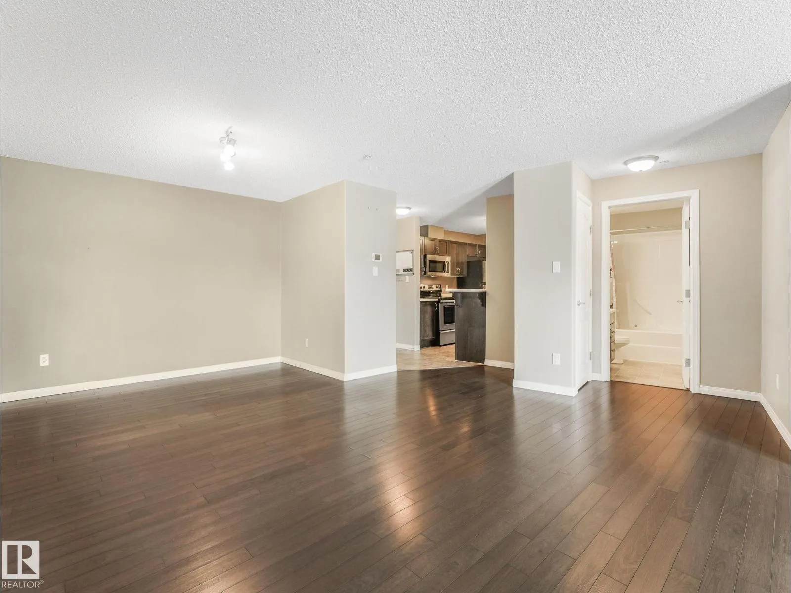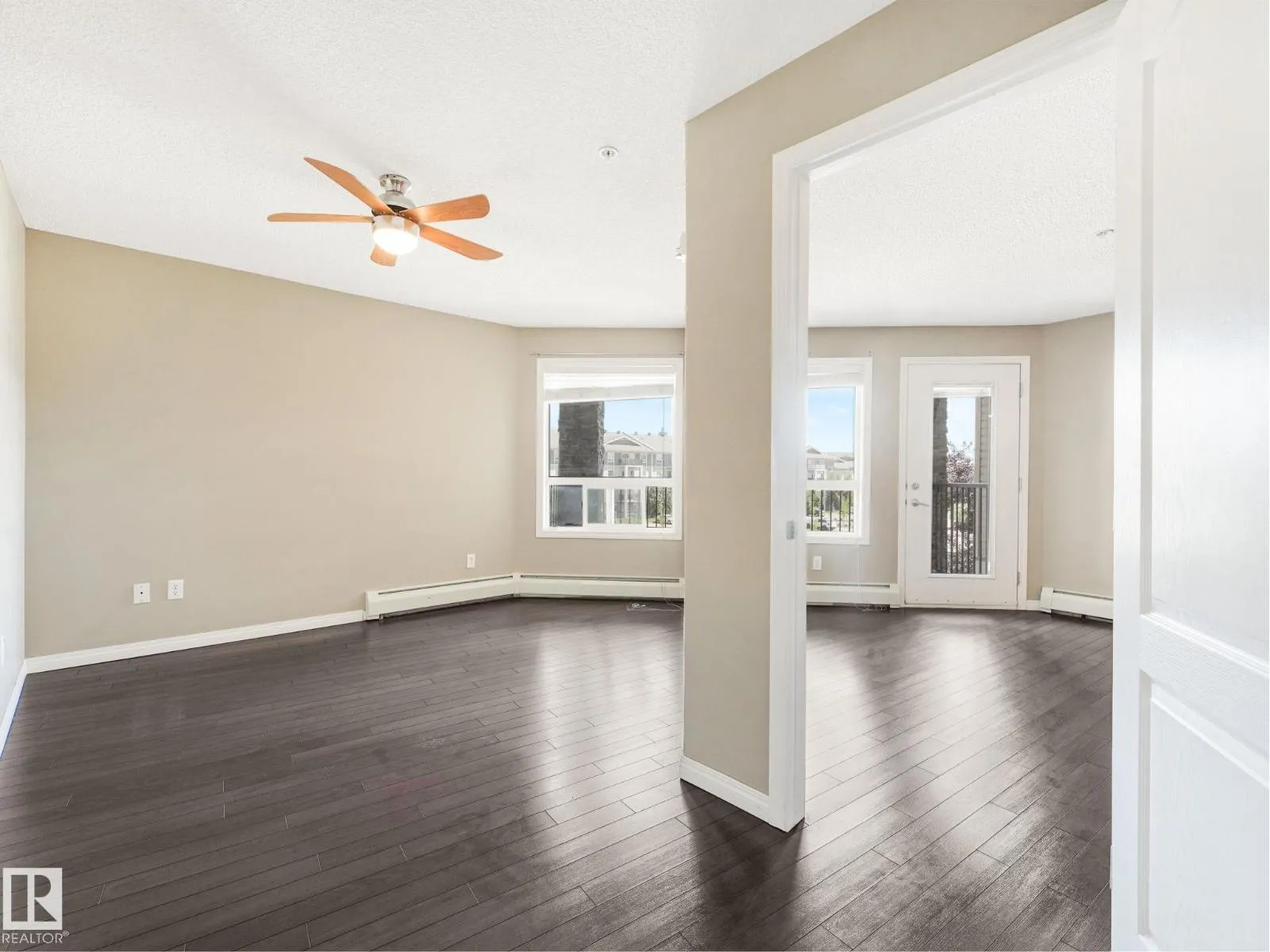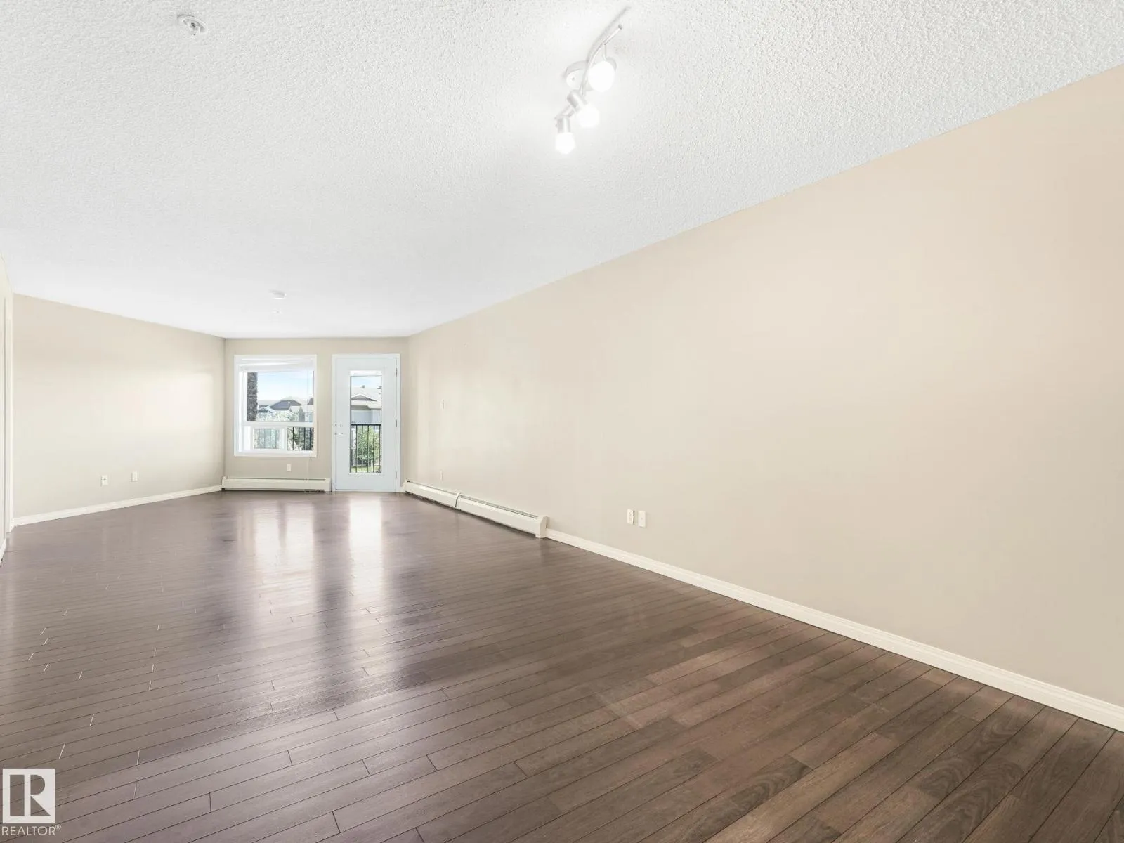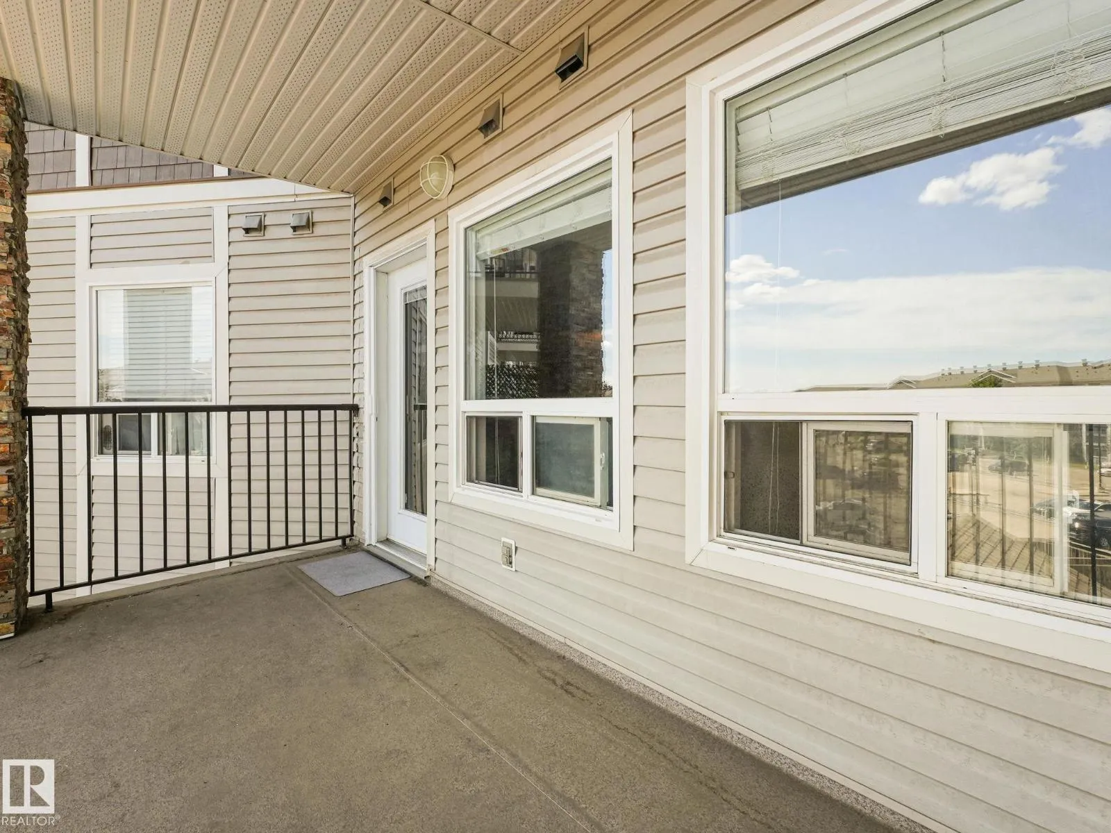 Welcome to this stunning condo in South Terwillegar!This spacious unit is larger then some two bedroom condos with only one neighbor! & has loads of upgrades.The designer kitchen has upgraded dark espresso cabinets,cream counters & stainless steel appliances.The dining room is big enough for a six person table & has an open concept into the living room.The large living area is bright with plenty of natural light & has a patio door that leads to the over sized corner balcony.The master bedroom is a great size with wall to wall closets.This home also features a 4pc bath,storage area with in suite laundry & TWO PARKING STALLS(one underground right beside elevator and no one next to you!,one surface stall).This unit is close to shopping,public transportation, Anthony Henday & the new recreation center.It shows a 10 out of 10--A must see! (id:27476)