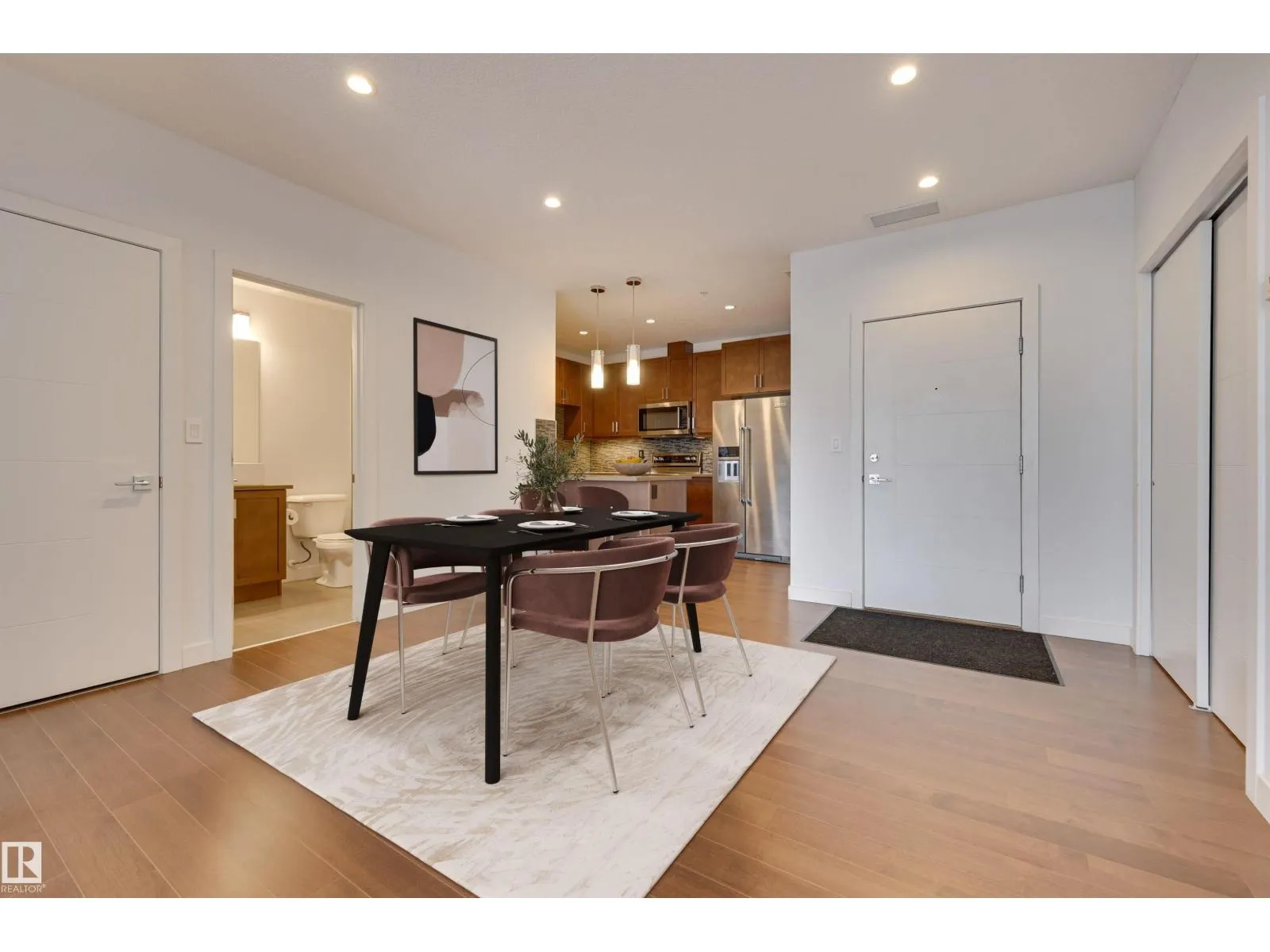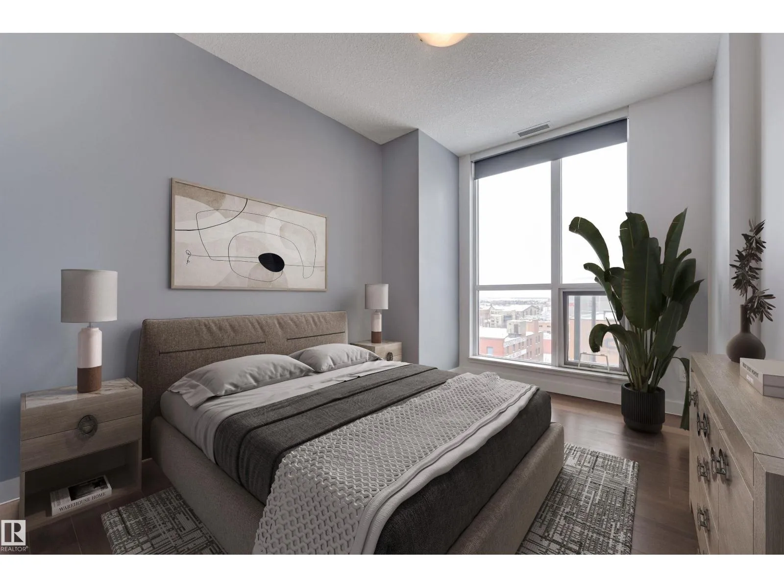 Live above it all in this stunning high-rise condo offering breathtaking city and downtown views from nearly every room. This beautifully designed 2 bedroom, 2 bathroom, 2 titled, side-by-side heated underground parking stall unit features a bright, open-concept layout with floor-to-ceiling windows that flood the space with natural light. The modern kitchen is finished with quartz counters, contemporary cabinetry, & stainless steel appliances, flowing seamlessly into the generous living and dining areas finished with hardwood. The spacious primary suite includes a walk-through closet & a private 3pc ensuite, while the second bedroom is perfect for guests or a home office. Enjoy your morning coffee from the private balcony with panoramic views. Additional comforts include in-suite laundry & A/C. Enjoy luxury building amenities including a concierge, fitness centre, hot tub, rooftop patio, kitchen, social rooms & more. Steps to dining, shops, cafes, & transit. Some photos are virtually staged. (id:27476)