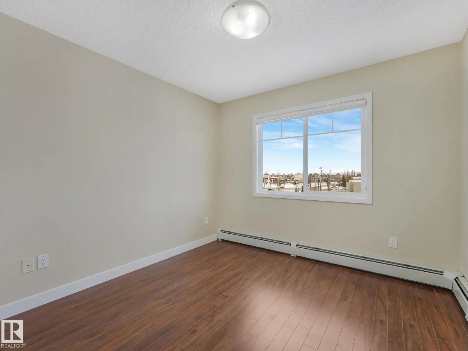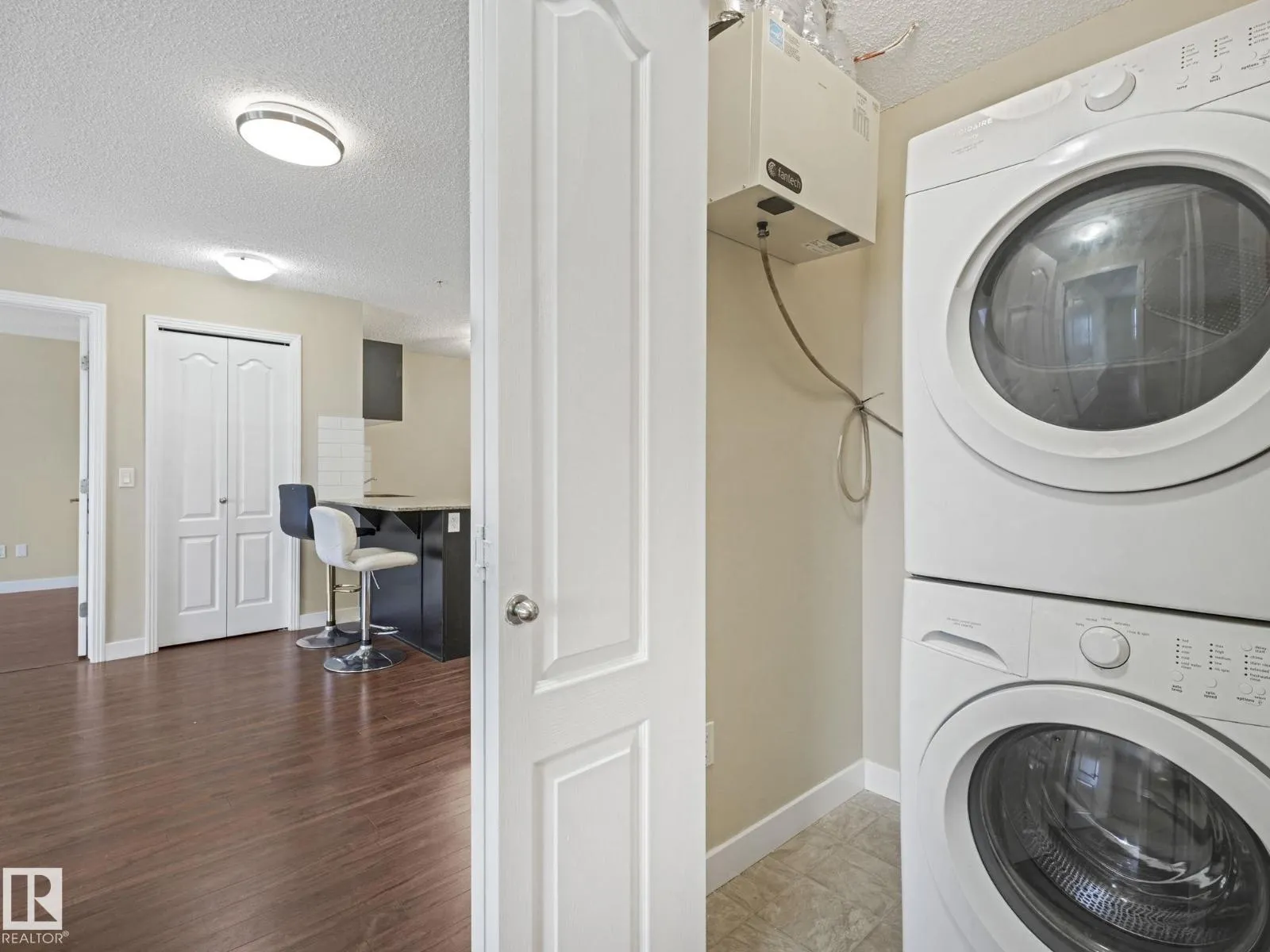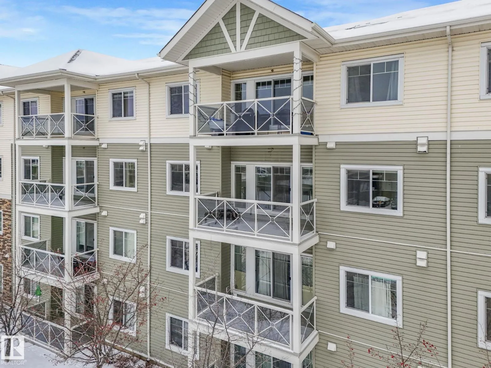 Pride of ownership with this immaculate 2014 built 2-bedroom, 2-bathroom plus Den, 3rd floor condo in Edmonton's North West Community of Baranow. Steps to everything you need such as shopping, transit and amenities. The entryway is welcoming, with a large closet and open layout which showcases the west facing windows full of natural light. The bedrooms are on opposite sides for privacy. The master suite has a walk-in closet and a 3-piece ensuite with a large glass door shower. The second bedroom has a 4-piece bath next to it. The kitchen is upgraded with granite counter-tops, a full-height tile backsplash, and quality cabinets. Thereâs also in-suite laundry. Large west facing balcony is an ideal spot for relaxing in the evenings. Solara provides an onsite gym. Titled energized parking stall is included with this property. This condo is designed for comfort and style. Donât miss your chance to own a home in the Solara At Skyview! Low condo fee $410.36 which includes all utilities except for electricity. (id:27476)