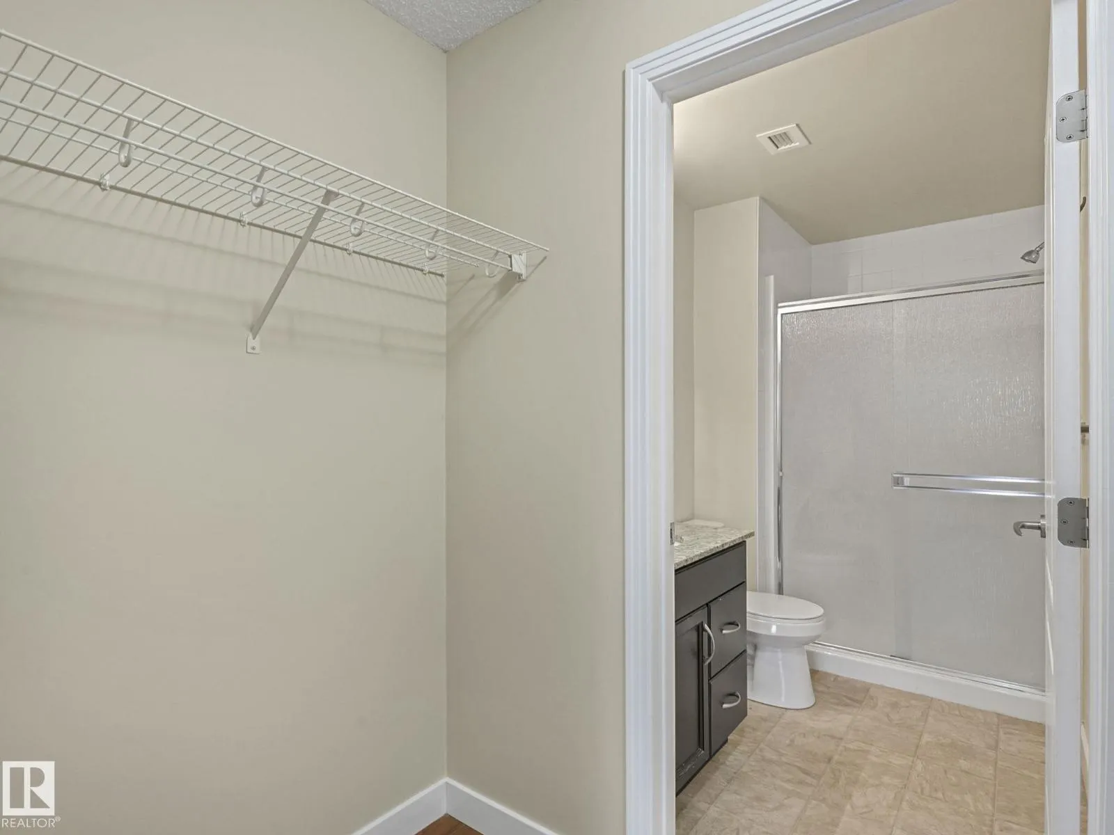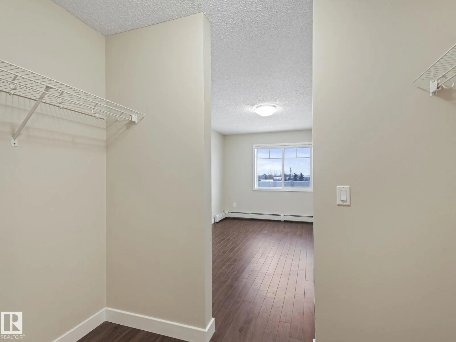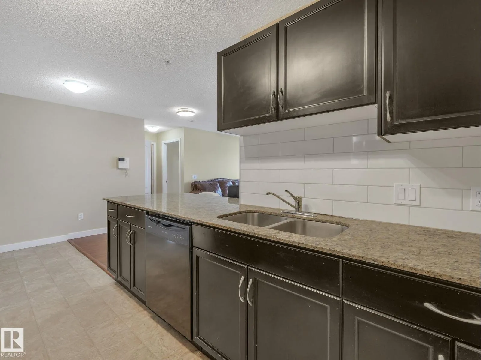 Pride of ownership with this immaculate 2014 built 2-bedroom, 2-bathroom plus Den, 3rd floor condo in Edmonton's North West Community of Baranow. Steps to everything you need such as shopping, transit and amenities. The entryway is welcoming, with a large closet and open layout which showcases the west facing windows full of natural light. The bedrooms are on opposite sides for privacy. The master suite has a walk-in closet and a 3-piece ensuite with a large glass door shower. The second bedroom has a 4-piece bath next to it. The kitchen is upgraded with granite counter-tops, a full-height tile backsplash, and quality cabinets. Thereâs also in-suite laundry. Large west facing balcony is an ideal spot for relaxing in the evenings. Solara provides an onsite gym. Titled energized parking stall is included with this property. This condo is designed for comfort and style. Donât miss your chance to own a home in the Solara At Skyview! Low condo fee $410.36 which includes all utilities except for electricity. (id:27476)