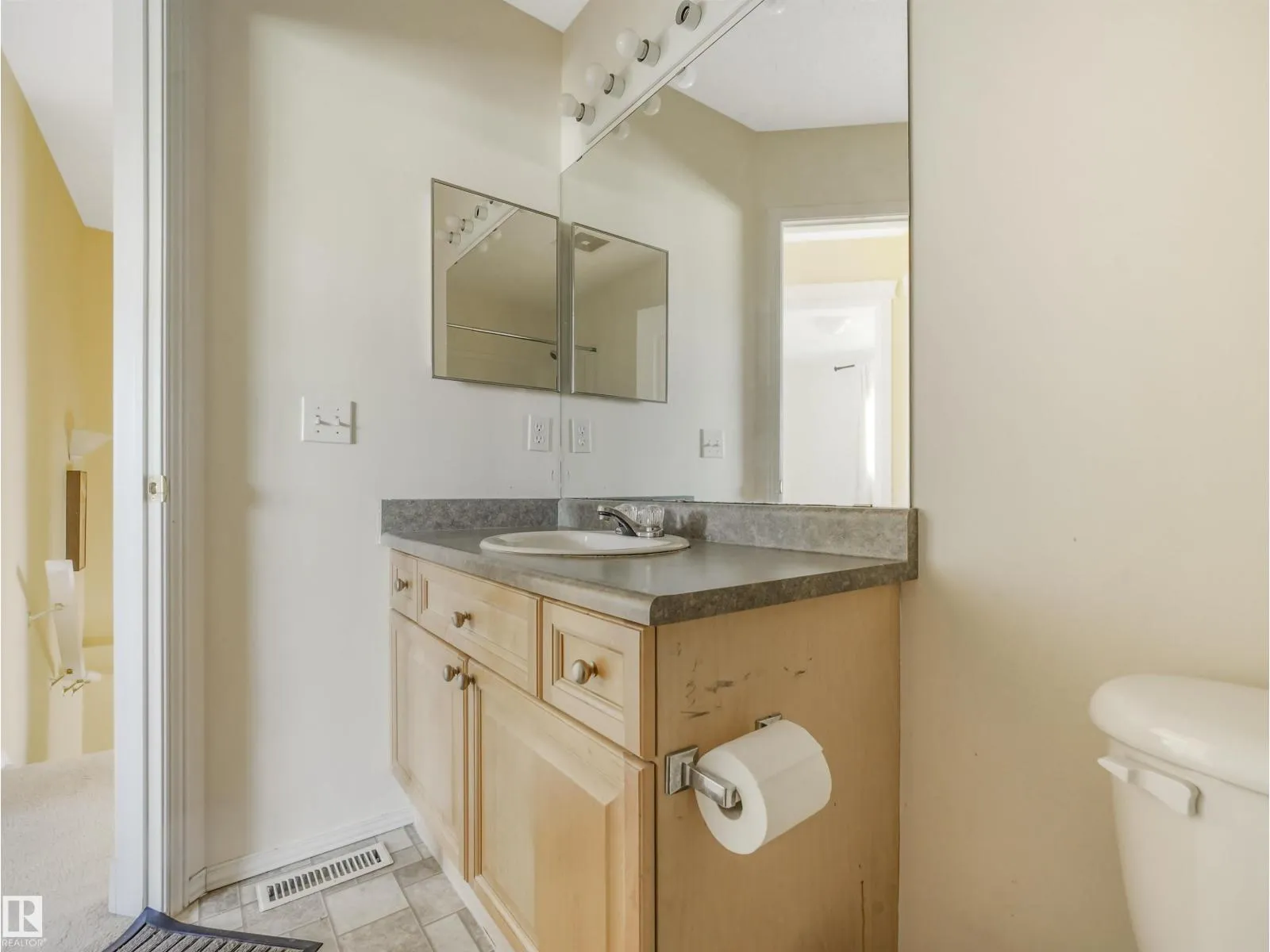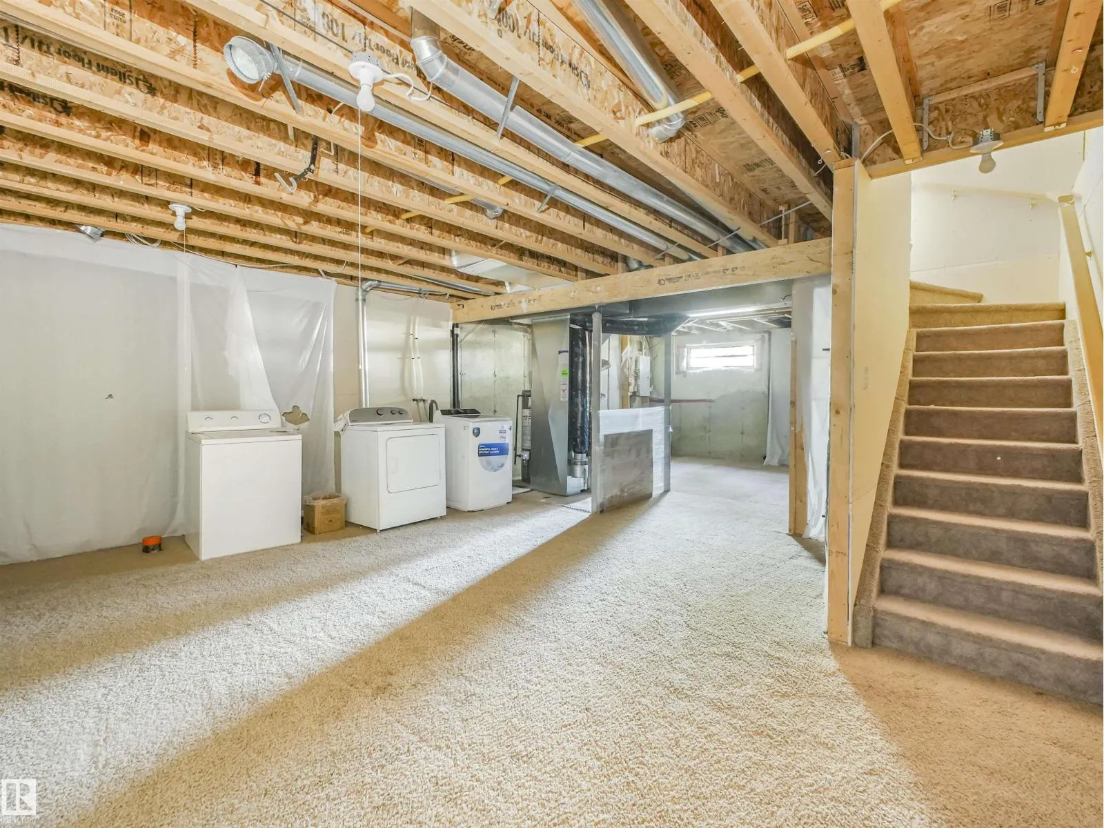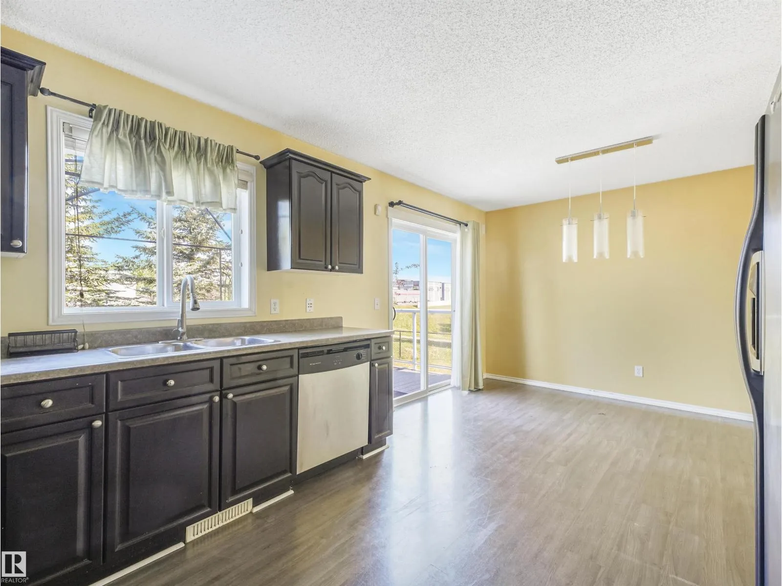 Welcome to this spacious and well-maintained 3-bedroom, 2.5-bathroom townhouse, perfectly situated in a desirable South East Edmonton community. Spanning 1,400 sqft, this home offers the ideal balance of low-maintenance living and comfortable space. Step inside to a bright and open living area with large, south-facing windows that fill the home with natural light year-round. The modern kitchen is a true highlight with dark cabinetry, stainless steel appliances, and a spacious layout. Upstairs, the cozy bedrooms feature plush carpeting and ample natural light, with the master bedroom offering an ensuite bathroom and a walk-in closet. The home also features an unfinished basement with endless potential, ideal for adding another living room, bedroom, and bathroom to suit your family's needs. Enjoy your morning coffee or evening barbecue on the private deck, which overlooks a tranquil green space. The unit includes two dedicated parking stalls conveniently located directly in front of the townhouse. (id:27476)