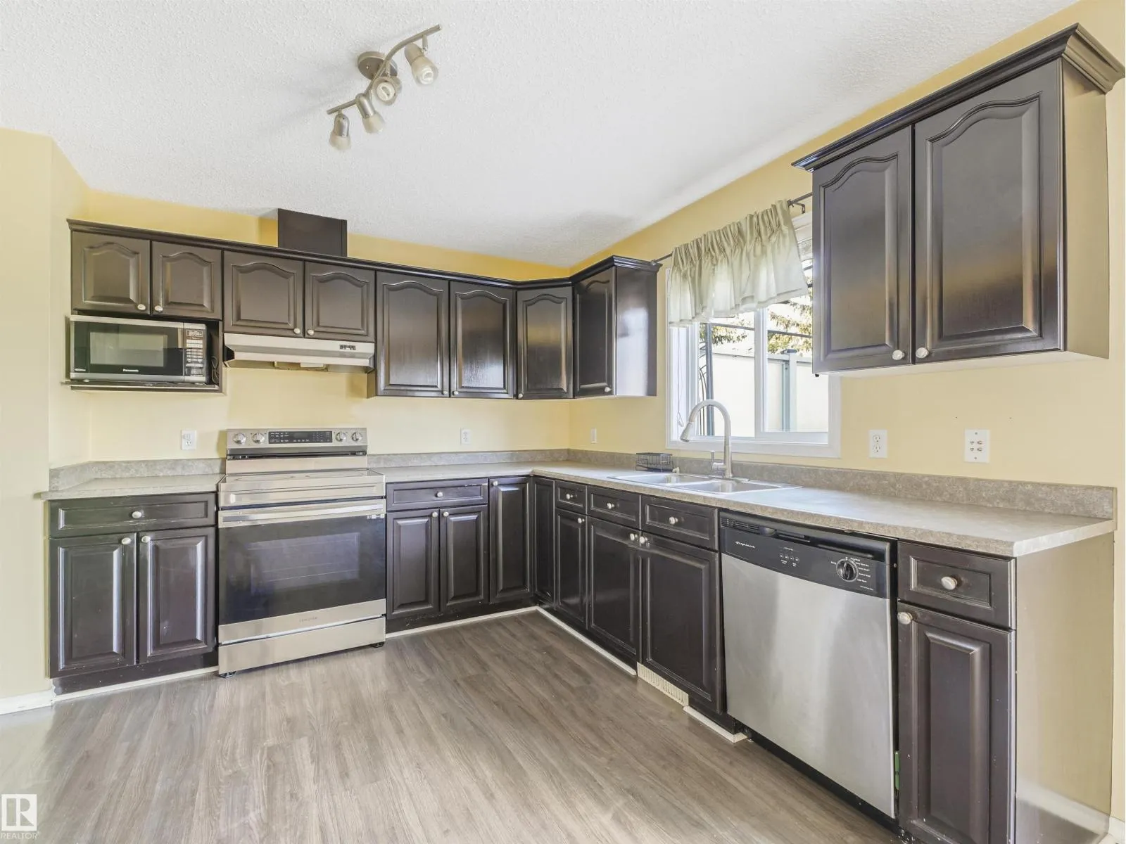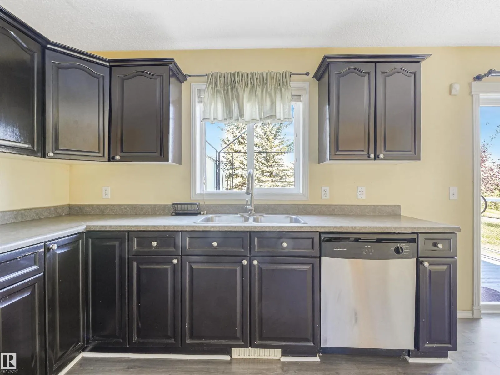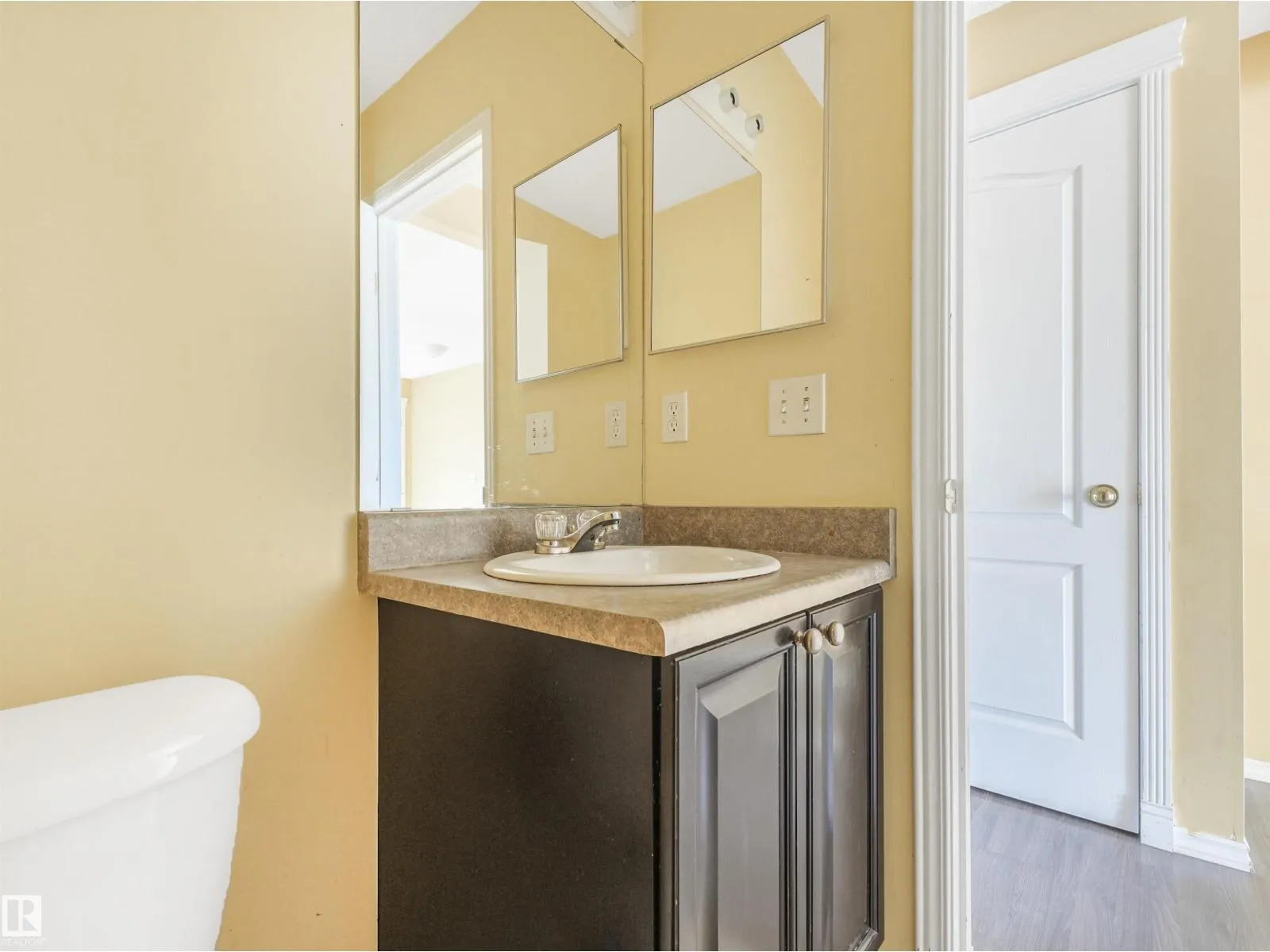 Welcome to this spacious and well-maintained 3-bedroom, 2.5-bathroom townhouse, perfectly situated in a desirable South East Edmonton community. Spanning 1,400 sqft, this home offers the ideal balance of low-maintenance living and comfortable space. Step inside to a bright and open living area with large, south-facing windows that fill the home with natural light year-round. The modern kitchen is a true highlight with dark cabinetry, stainless steel appliances, and a spacious layout. Upstairs, the cozy bedrooms feature plush carpeting and ample natural light, with the master bedroom offering an ensuite bathroom and a walk-in closet. The home also features an unfinished basement with endless potential, ideal for adding another living room, bedroom, and bathroom to suit your family's needs. Enjoy your morning coffee or evening barbecue on the private deck, which overlooks a tranquil green space. The unit includes two dedicated parking stalls conveniently located directly in front of the townhouse. (id:27476)