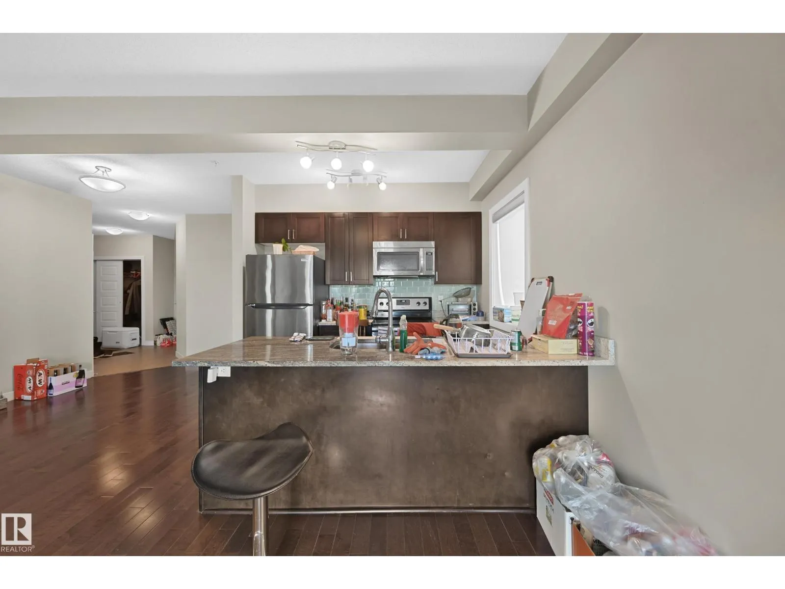This Well Kept CORNER unit located in the heart of Windermere area--WINDERMERE WATERS. Features 9' ceilings throughout the unit. Open concept kitchen with modern design and looking over the LIVING and DINING room. Nice sized master bedroom has walk through closet and 3 piece en-suite with titled shower. Second bedroom has POND view and other 4 piece full bath as well. The complex is built with STEEL FRAME, provides superior soundproof. In-floor heating system. From the balcony, you can enjoy the POND & PARK view. It comes with one UNDERGROUND parking. Unit has FRESH paint throughout and new FLOORING in both bedrooms. Walking distance to SHOPPING, SCHOOLS, PARK and POND. Closing to PUBLIC TRANSIT and all amenities. Easy access to ANTHONY HENDAY and WHITEMUD freeway. (id:27476)