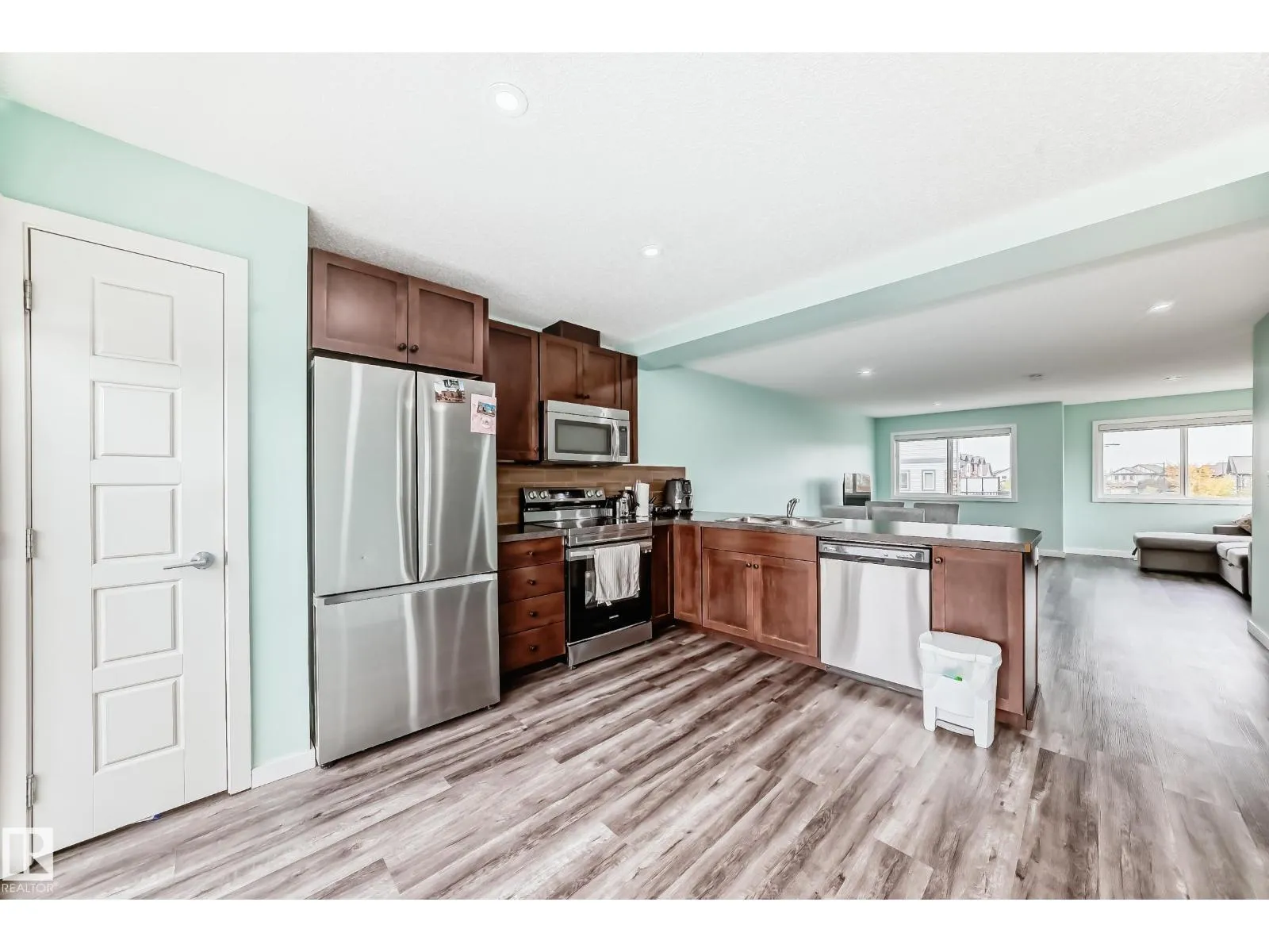LOCATION ,LOCATION,LOCATION ! Newly renovated townhome features vinyl and carpet flooring throughout,along with fresh interior paint,creating a bright and modren look. This CORNER unit features PLENTY OF LARGE WINDOWS that fill the home with natural SUNLIGHT. The entry level features a versatile den/home office with access to a covered patio, along with an attached double garage for secure parking and storage. Upstairs, an open-concept main floor includes a bright living room, dining area, and a generous kitchen with direct access to a sunny balconyâperfect for spring and summer entertaining. A convenient 2-piece bathroom is also located on this level. The top floor offers a primary retreat with 4-piece ensuite, plus two additional bedrooms that share another full bathroom. Laundry is also located upstairs for added convenience. Located close to shopping, schools, public transit, and major commuting routes, this property offers a comfortable ,updated and practical lifestyle in desireable location. (id:27476)