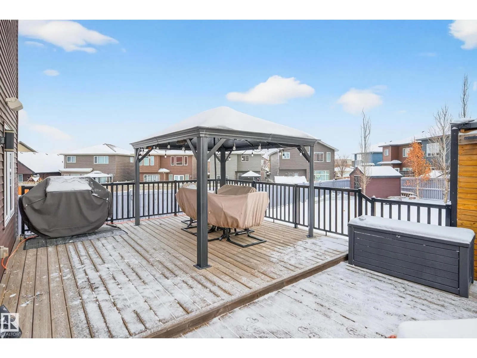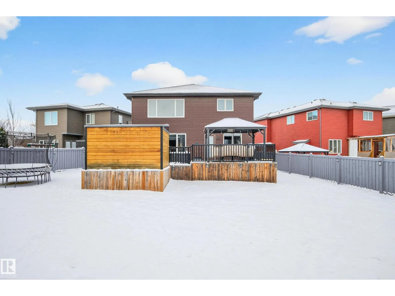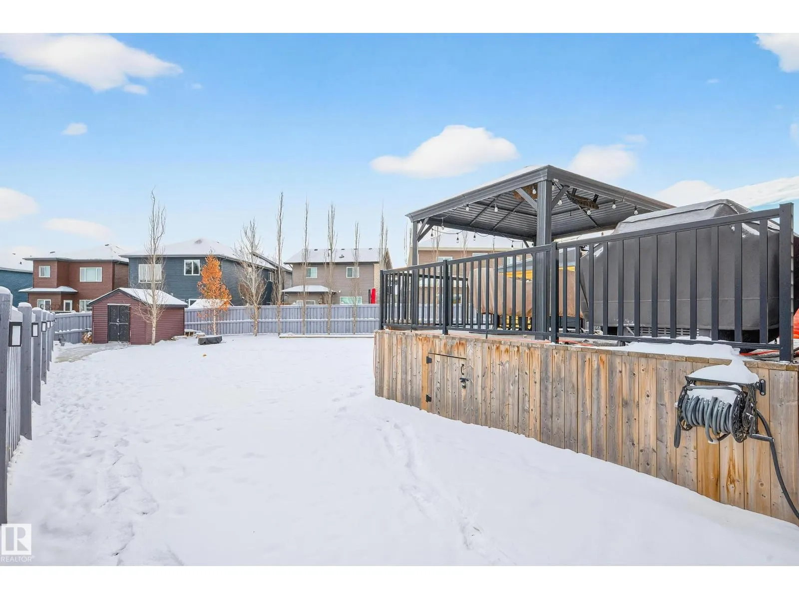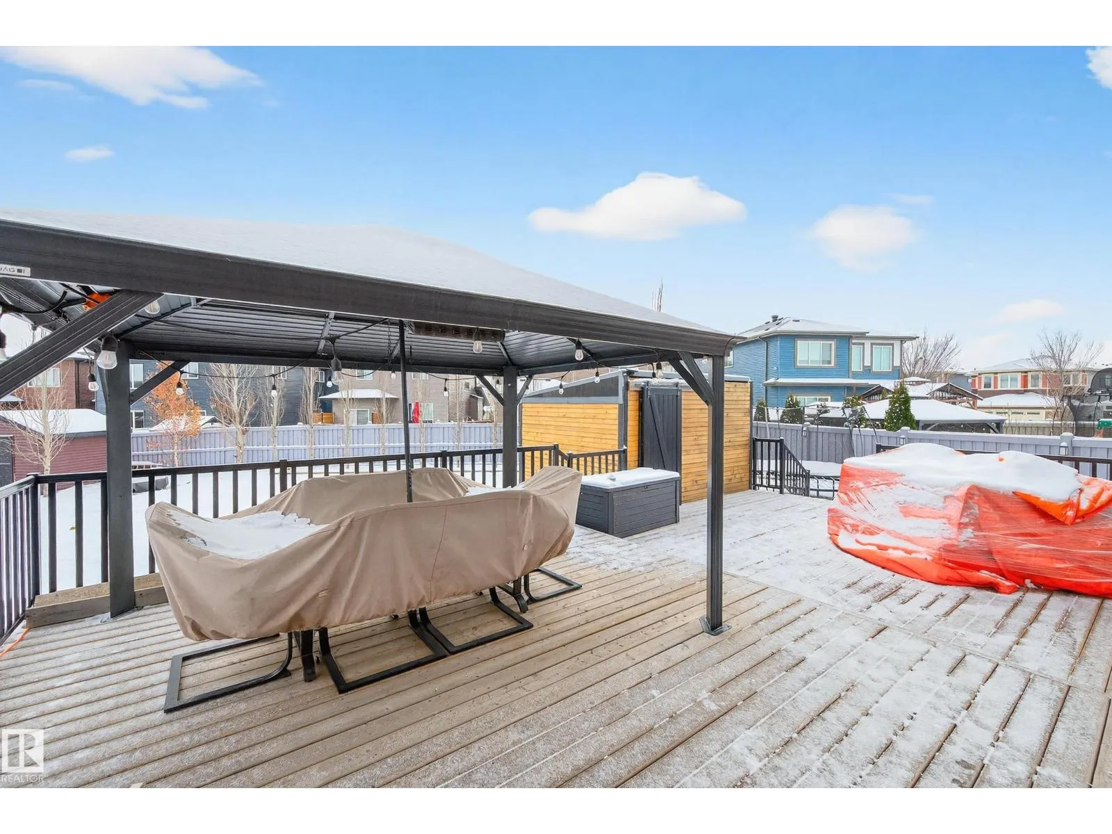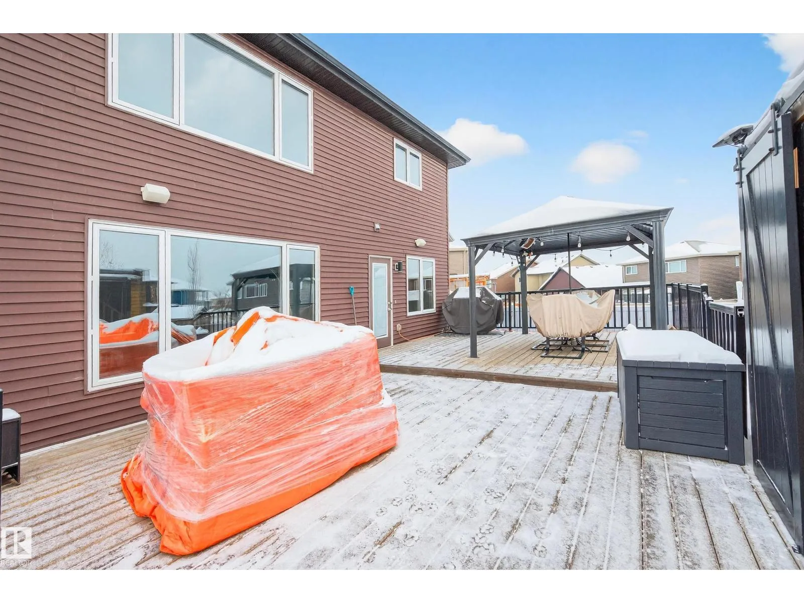 Your family will LOVE the 2453 sqft of livable space in this 2-storey home situated on a massive 828m2 SOUTH BACKING PIE LOT in a CUL-DE-SAC, nestled in the vibrant community of Rosenthal. Amazing location with parks, trails & access to Anthony Henday just a hop away. Features 2.5 bathrooms & 4 upper-level bedrooms with large WIC & luxurious ensuite with jetted soaker tub in king-sized primary suite. Spacious bonus room is a great space to retreat with the family & has fabulous views of âfully decked outâ back yard. Front office with French doors & welcoming foyer that transitions to impressive Great Room, PLUS oversized windows, gas fireplace with mantle & espresso hardwood floors. Chefâs kitchen is anchored by eat-on centre island, granite countertops, upscale SS appliances, maple cabinetry to ceiling & walk-thru pantry to mudroom with built-in cabinetry. The basement is framed and offers 2 windows. Central A/C, permanent exterior xmas lights, fully landscaped, fenced & oversized 24x26 HEATED GARAGE. (id:27476)