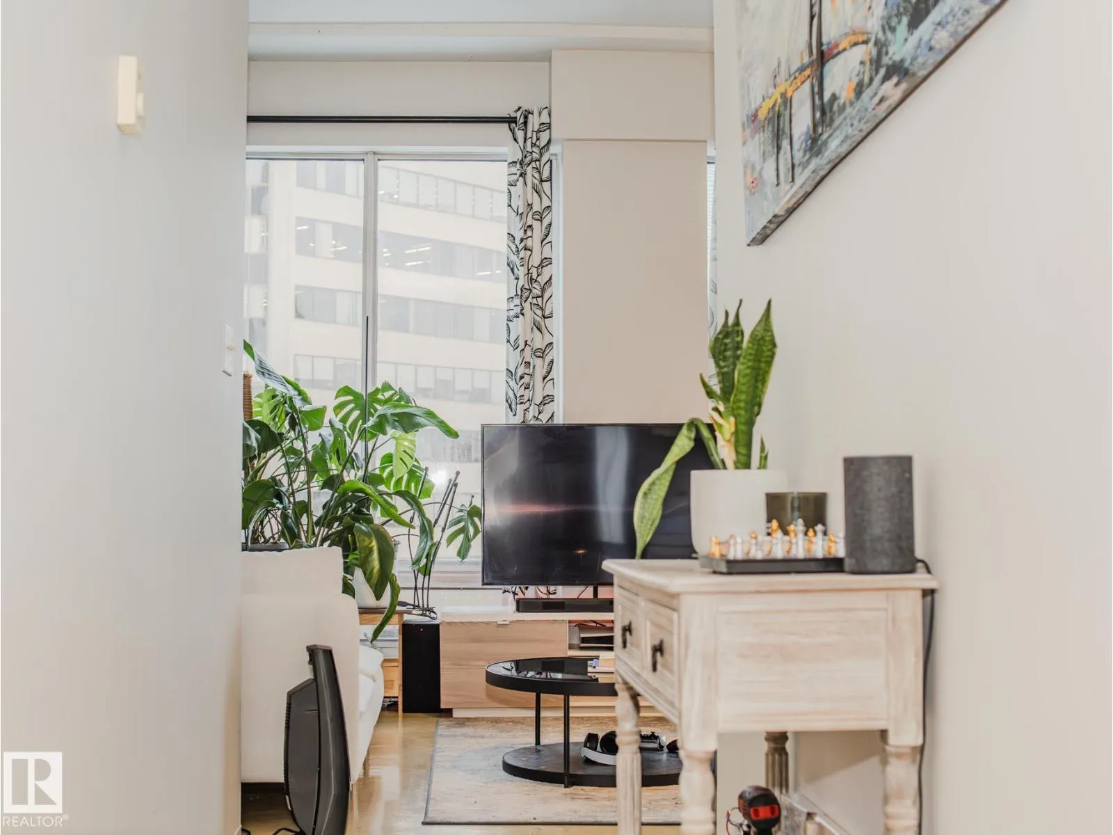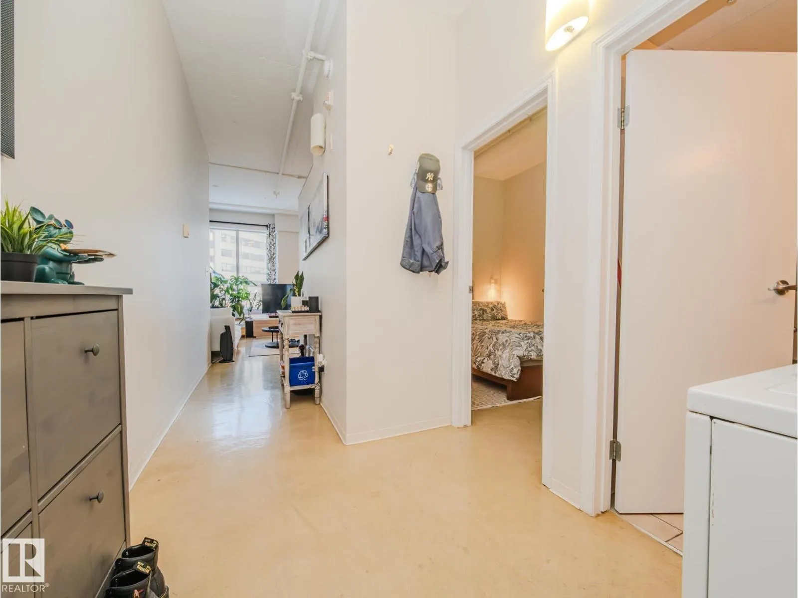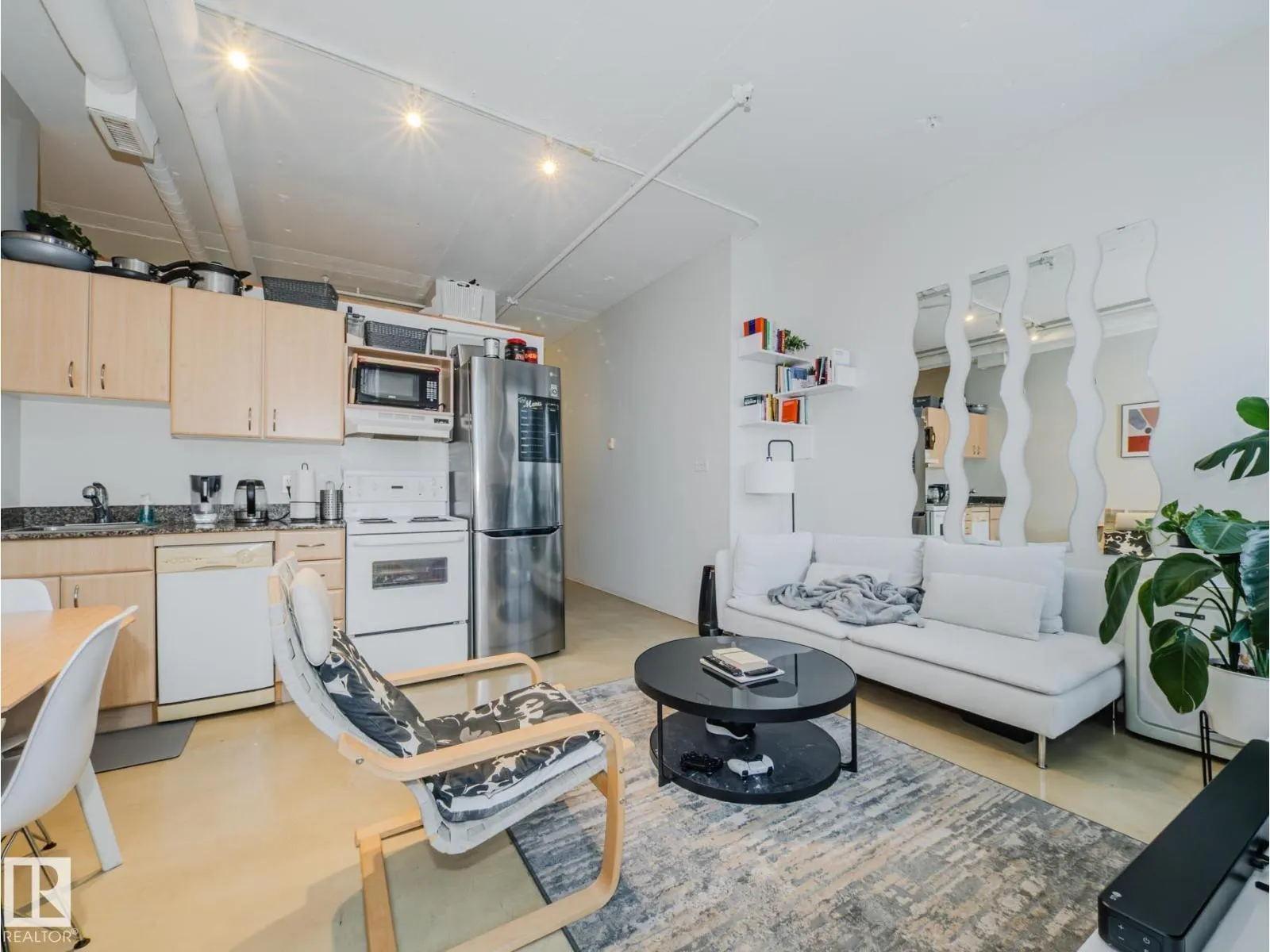 Discover modern urban living in this stylish loft-style condo located in the heart of downtown Edmonton. Designed with soaring ceilings and expansive windows, this open-concept space blends industrial charm with contemporary comfort. Exposed concrete accents, warm natural light, and a flexible floor plan create a bright and inviting atmosphere perfect for both relaxing and entertaining. The sleek kitchen features stainless steel appliances and ample counter space, flowing seamlessly into the spacious living area. A lofted bedroom provides privacy while maintaining the homeâs airy appeal, and in-suite laundry adds everyday convenience. Step outside and enjoy immediate access to Edmontonâs top restaurants, cafés, the Ice District, transit, and the scenic river valley. With secure building access and an unbeatable central location, this condo offers the ideal blend of style, function, and urban convenienceâperfect for professionals, first-time buyers, or anyone seeking vibrant downtown living. (id:27476)
