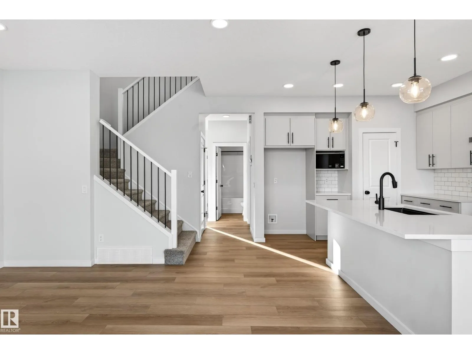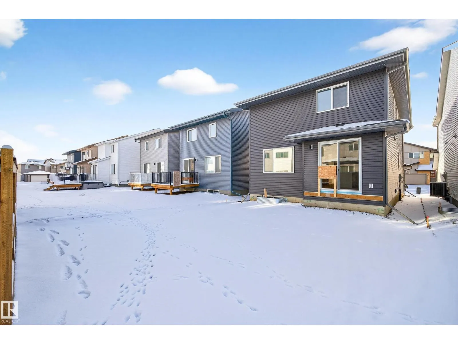 MOVE IN READY | LUXURY FINISHINGS | SUPERIOR QUALITY| SEPARATE SIDE ENTRANCE to 9â foundation unfinished basement that is ready for future legal suite. HOMES BY AVI welcomes you to picturesque River's Edge, a community filled with hiking trails, beautiful natural scenery & nearby North Saskatchewan River. This exceptional 2 storey home displays stunning details throughout with 4 spacious bedrooms & 3 FULL bathrooms (one bed/bath on main level). Upper level showcases 1190 SQ FT with a desired living ensemble that includes a loft- style family room, quaint office & full-sized laundry room with storage. King-sized primary retreat offers a 5-piece ensuite with dual sinks, glass shower, soaker tub, private stall & WIC. Gorgeous detail throughout home with luxury vinyl plank flooring, plush carpet, stunning electric fireplace, railing with iron spindles & quartz countertops. Upgraded kitchen with chimney hood fan, microwave shelf, pot & pan drawers, cabinets to upper bulkhead & robust appliance allowance. A++ (id:27476)