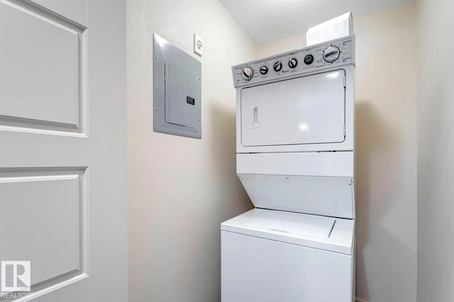 Immaculate 2 bed/2 bath condo available in Rutherford Gate! This bright and spacious 943 sqft, corner unit has been meticulously cared for by the original owner. The open concept floor plan features a large living area, spacious kitchen w/large island and raised eating bar, and dining area. The primary bedroom is home to a walk-through closet and 3-pc ensuite, the 2nd bedroom is also quite spacious and is located right beside the additional 4-pc bath. Other features include: In-suite laundry/storage area, covered patio, gleaming laminate floors, s.s. appliances, and titled/underground parking. Very well managed complex w/exercise room, guest suite, and games room. Located steps from shopping, schools, and other amenities. This is a great opportunity in a great south Edmonton location! (id:27476)