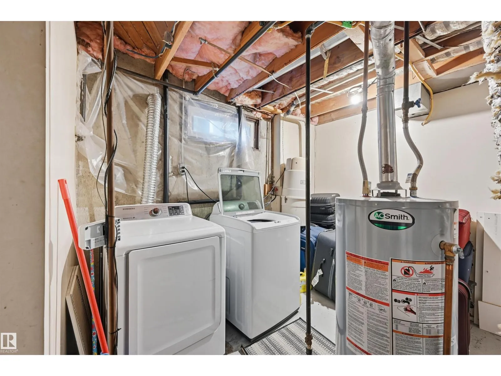 Great location and opportunity in Pollard Meadows with TWO KITCHENS and a SEPARATE ENTRANCE! Upstairs find a sunken living room with soaring windows, sizeable dining room and kitchen with ample space. 3 bedrooms upstairs with 4pc washroom & 2pc ensuite. Downstairs (side entrance) find a second kitchen, large living area with fireplace/feature wall, 2 bedrooms, den & full bathroom. Extra storage in utility room with washer and dryer. Updates include newer shingles (late 2022), most windows updated & new springs on garage door. Spacious backyard with mature trees, patio and garden bed to enjoy the warmer months. Plus massive garage offers plenty of extra storage and workspace. Oversized driveway for additional parking (or RV). Central vac roughed in too. Quick access to Anthony Henday, Millwoods Towne Center/transit, Gray Nuns Hospital, Millwoods Recreation Center, parks, schools and more. (id:27476)