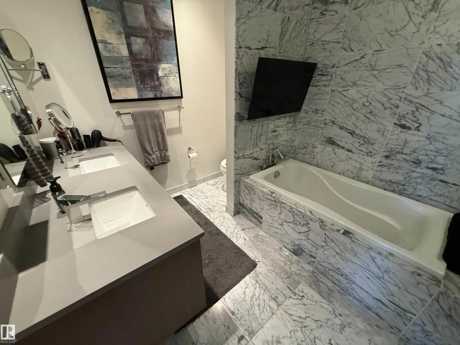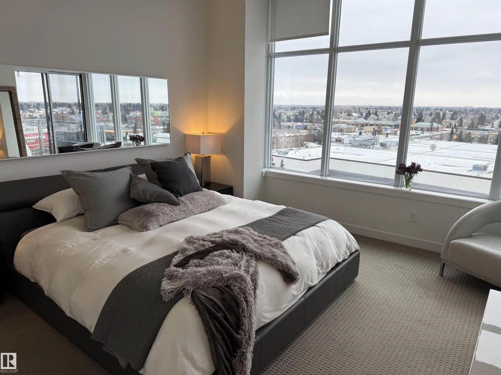 PENTHOUSE SUITE! END UNIT! This one is truly the unicorn of One Centruy Park! This one also boasts 3 TITLED UNDERGROUND PARKING STALLS, TITLED STORAGE, LARGEST UNIT IN THE COMPLEX, DUAL CLIMATE ZONES, UNOBSTRUCTED PANORAMIC VIEWS, AND IF THAT'S NOT ENOUGH, THIS ONE ALSO FEATURES IT'S OWN IN HOUSE GOLF SIMULATOR! Until you see it, you won't believe it! This one is not only upgraded to the 9's but is also in one of the most desirable locations in the city when it comes to amenities! Other amazing features of this spectacular unit include such things as gleaming hardwood flooring, upgraded counter-tops, walk-in closets, LED accent lighting throughout, newer washer, dryer and dishwasher, standup hallway desk/work space, 2 upgraded electric fireplaces, a stunning primary 5 pce ensuite, and soaring windows everywhere you look! Enjoy your morning coffee off of either the main walk-out patio from the living room, or the one from your own private primary bedroom.Truly one for the discriminating buyer! (id:27476)